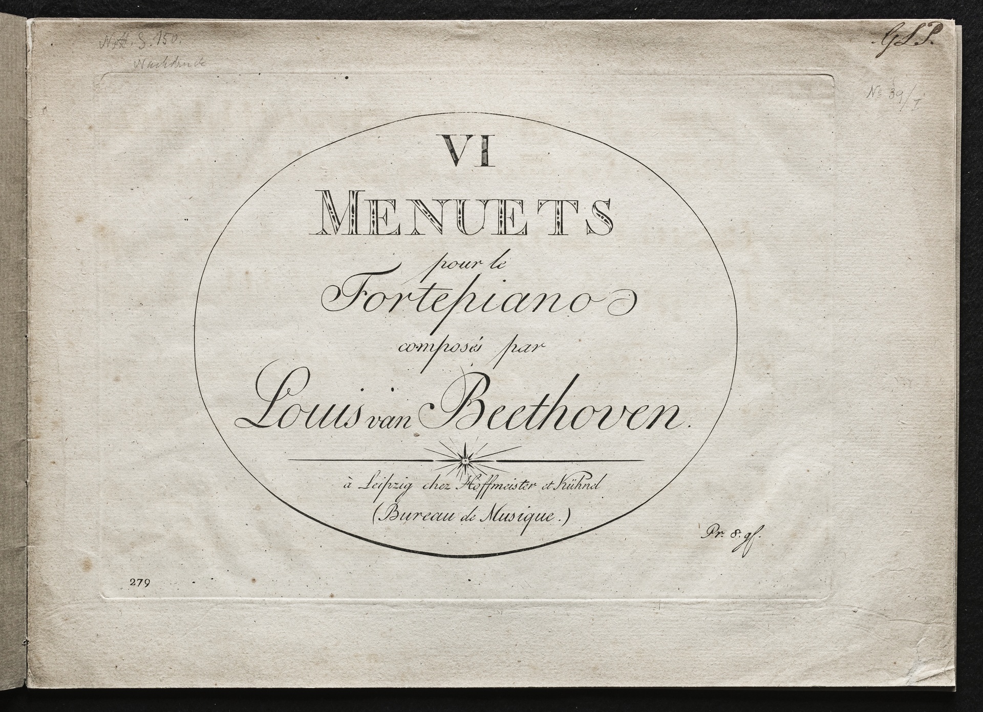 Ludwig van Beethoven, Menuette für Orchester (C-Dur, G-Dur, Es-Dur, B-Dur, D-Dur, C-Dur) WoO 10, 1-6, Fassung für Klavier, Hoffmeister und Kühnel, 279