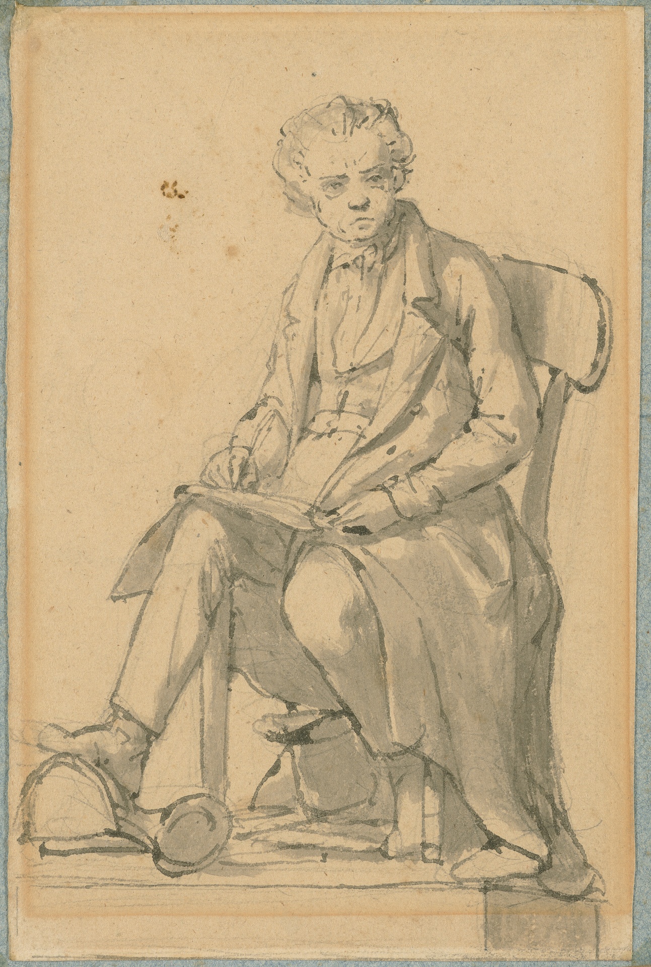 Ludwig van Beethoven sitzend oder Entwurf für ein Beethoven-Denkmal - Lavierte Federzeichnung von Friedrich Ritter von Amerling
