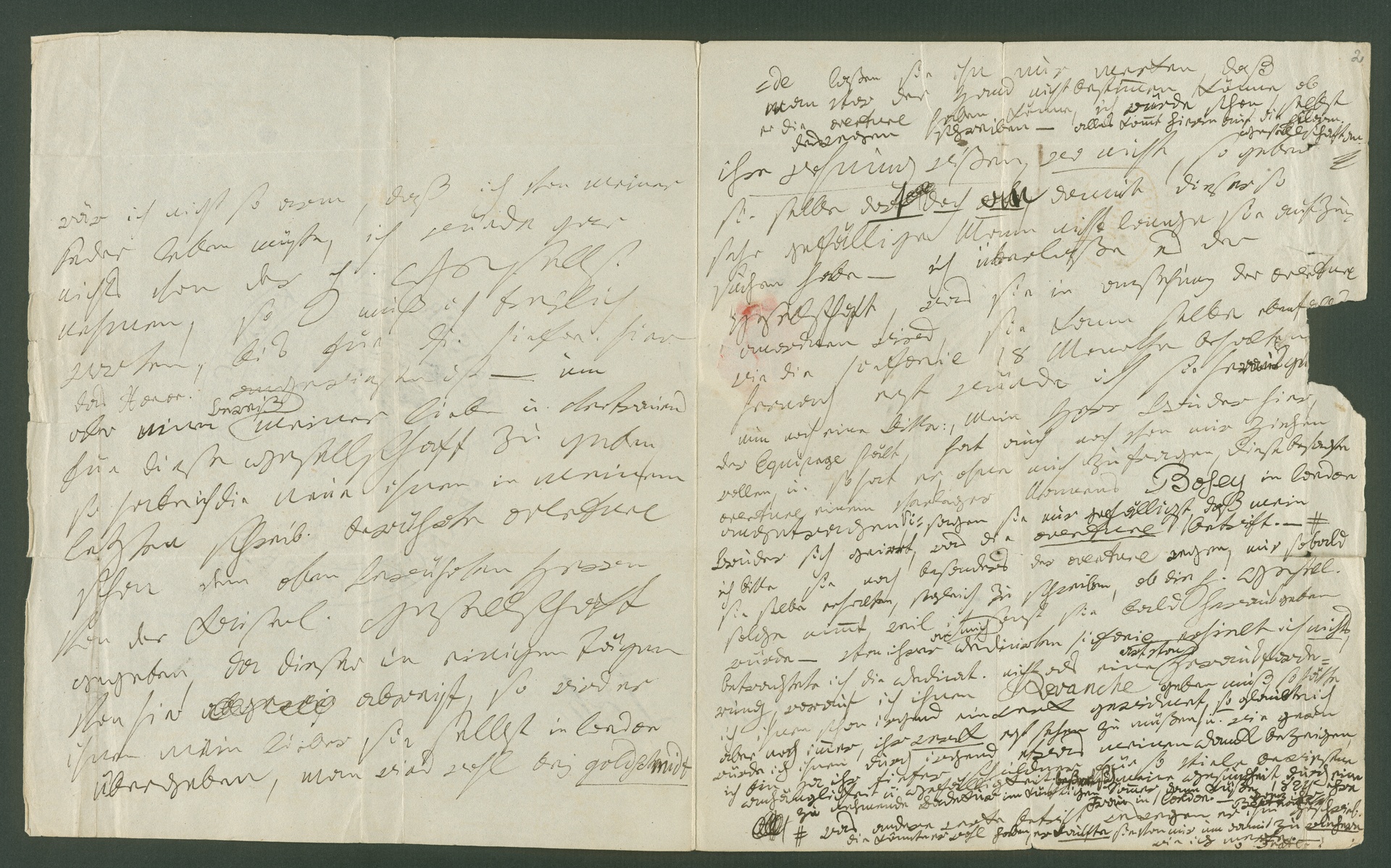 Beethoven bedauert, Ries' zweite Sinfonie op. 80, die ihm gewidmet ist, immer noch nicht erhalten zu haben. Er selbst könne Ries erst dann ein Werk widmen, wenn er die ihm gewidmete Komposition kenne. Obwohl Beethoven in der folgenden Korrespondenz häufig das Thema einer Widmung an Ries anspricht, kam es letztlich jedoch nicht dazu. Beethoven hofft, bei besserer Gesundheit im Folgejahr nach London reisen zu können. (J.R.)