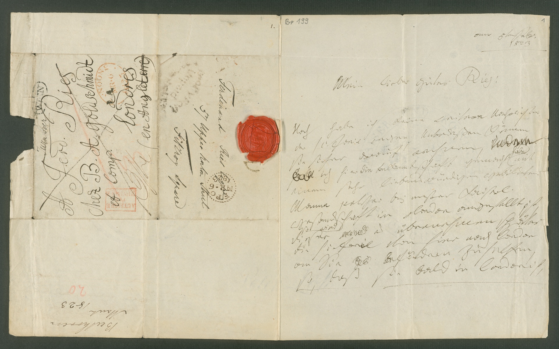 Ludwig van Beethoven, Brief an Ferdinand Ries in London, Wien, 5. Februar 1823, Autograph