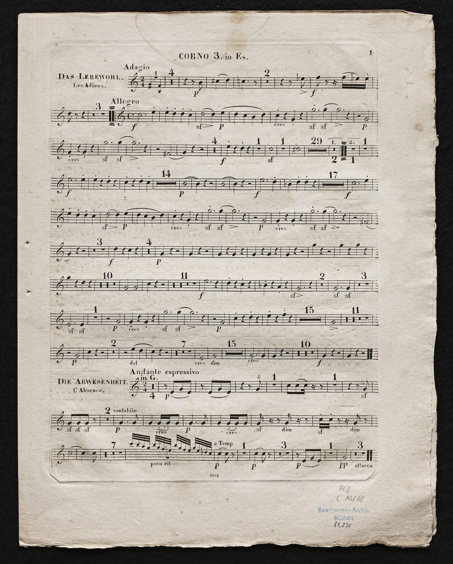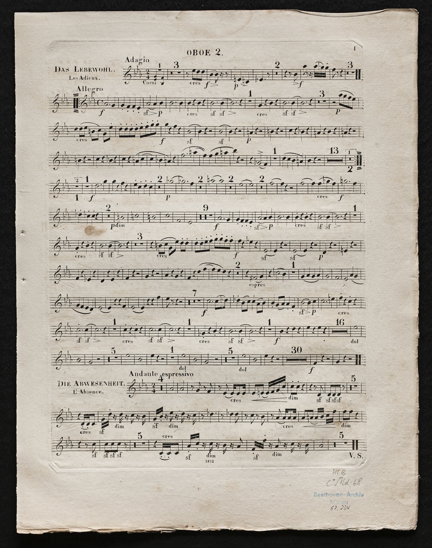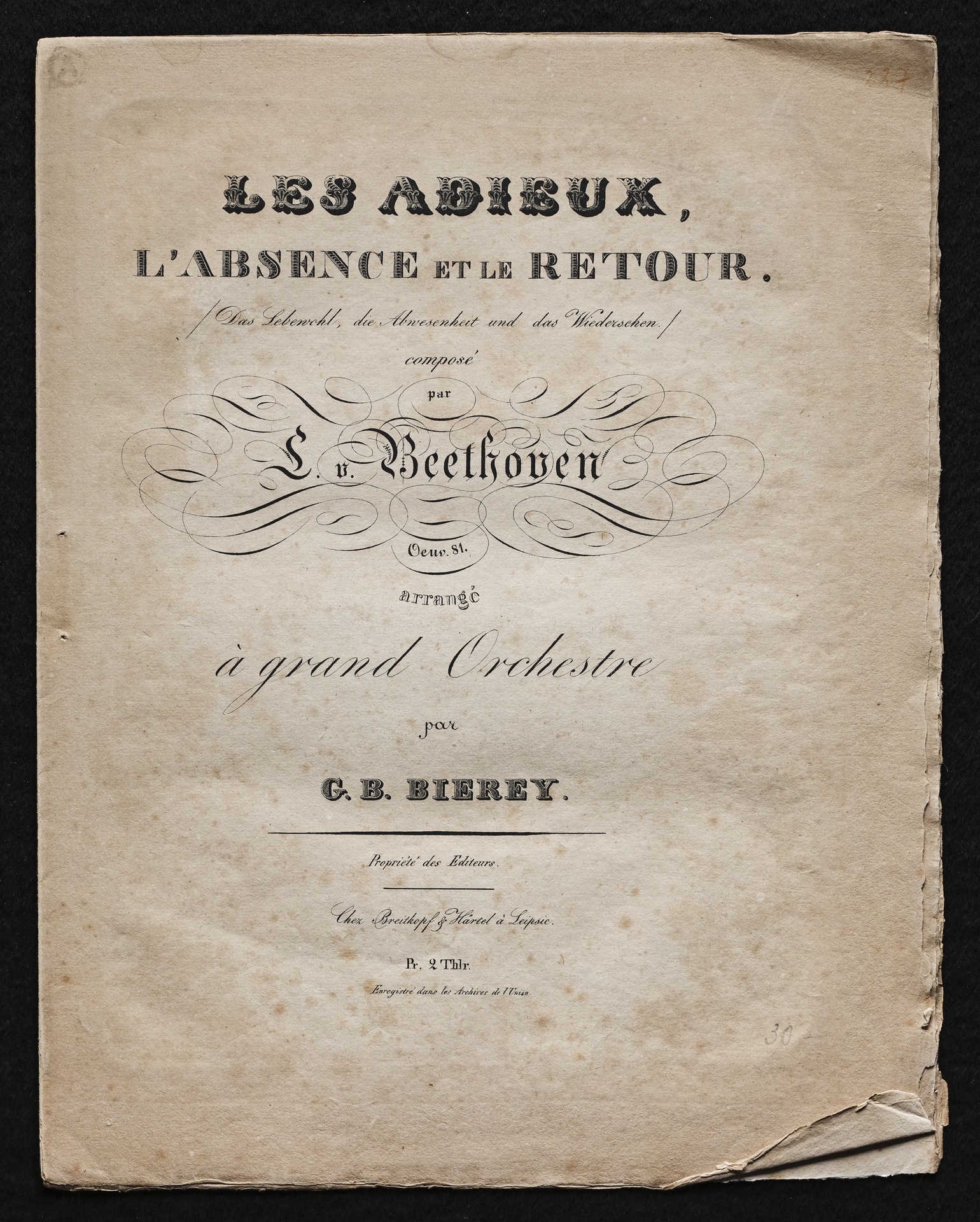 Ludwig van Beethoven, Sonate für Klavier (Es-Dur) op. 81a, Bearbeitung für Orchester von Gottlob Benedikt Bierey, Stimmen, Breitkopf und Härtel, 5152