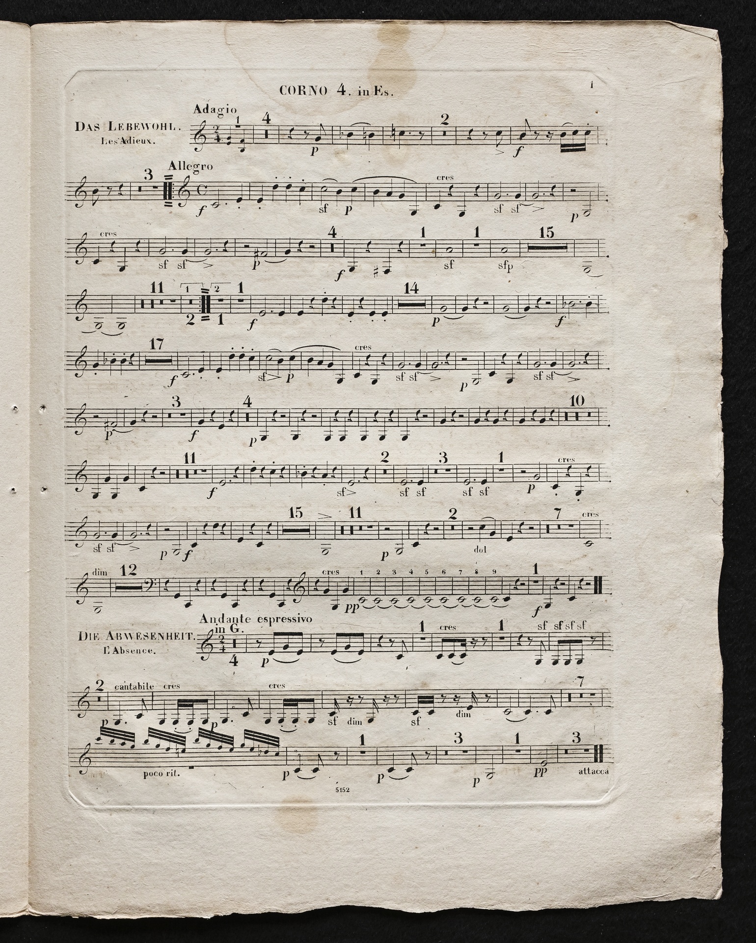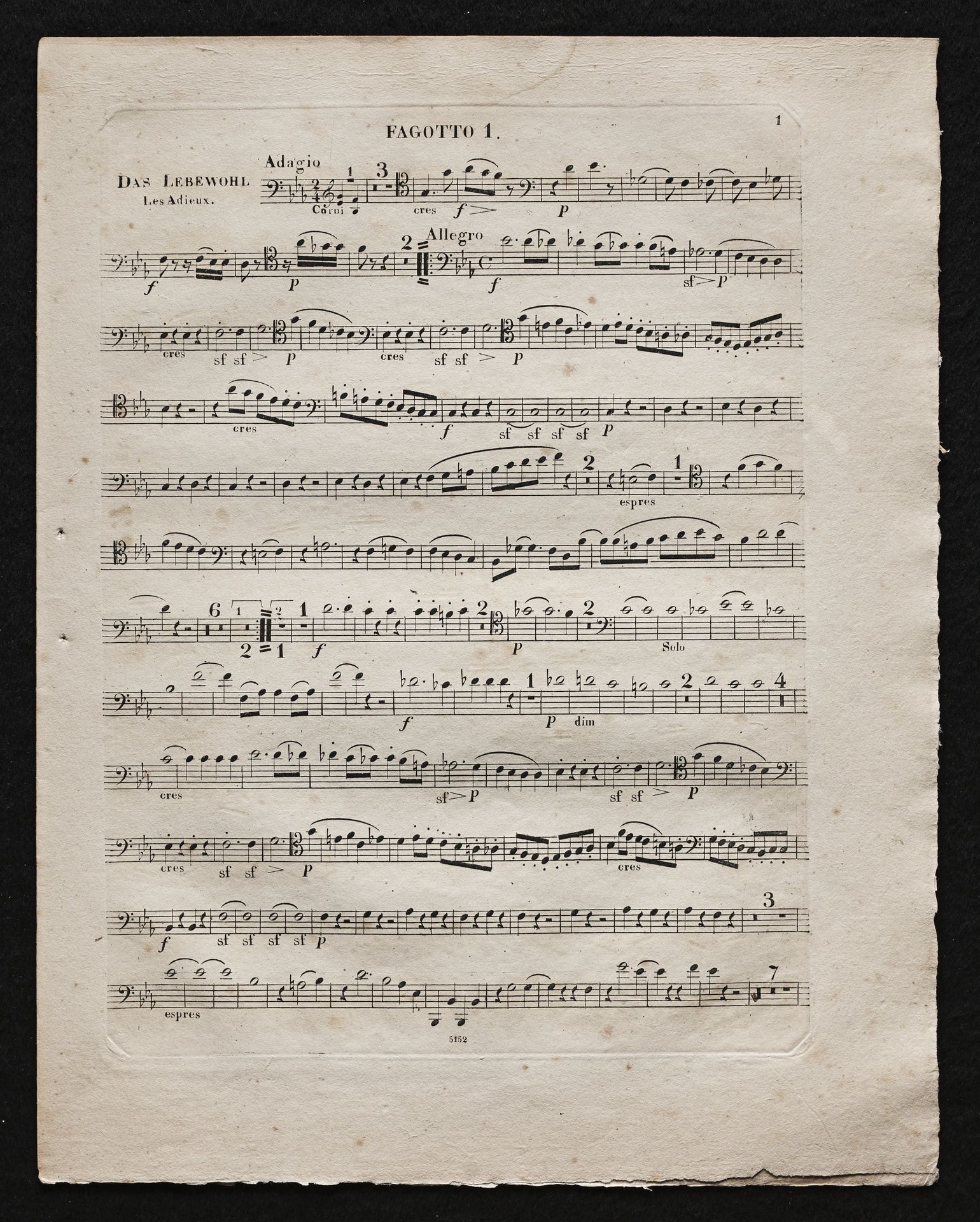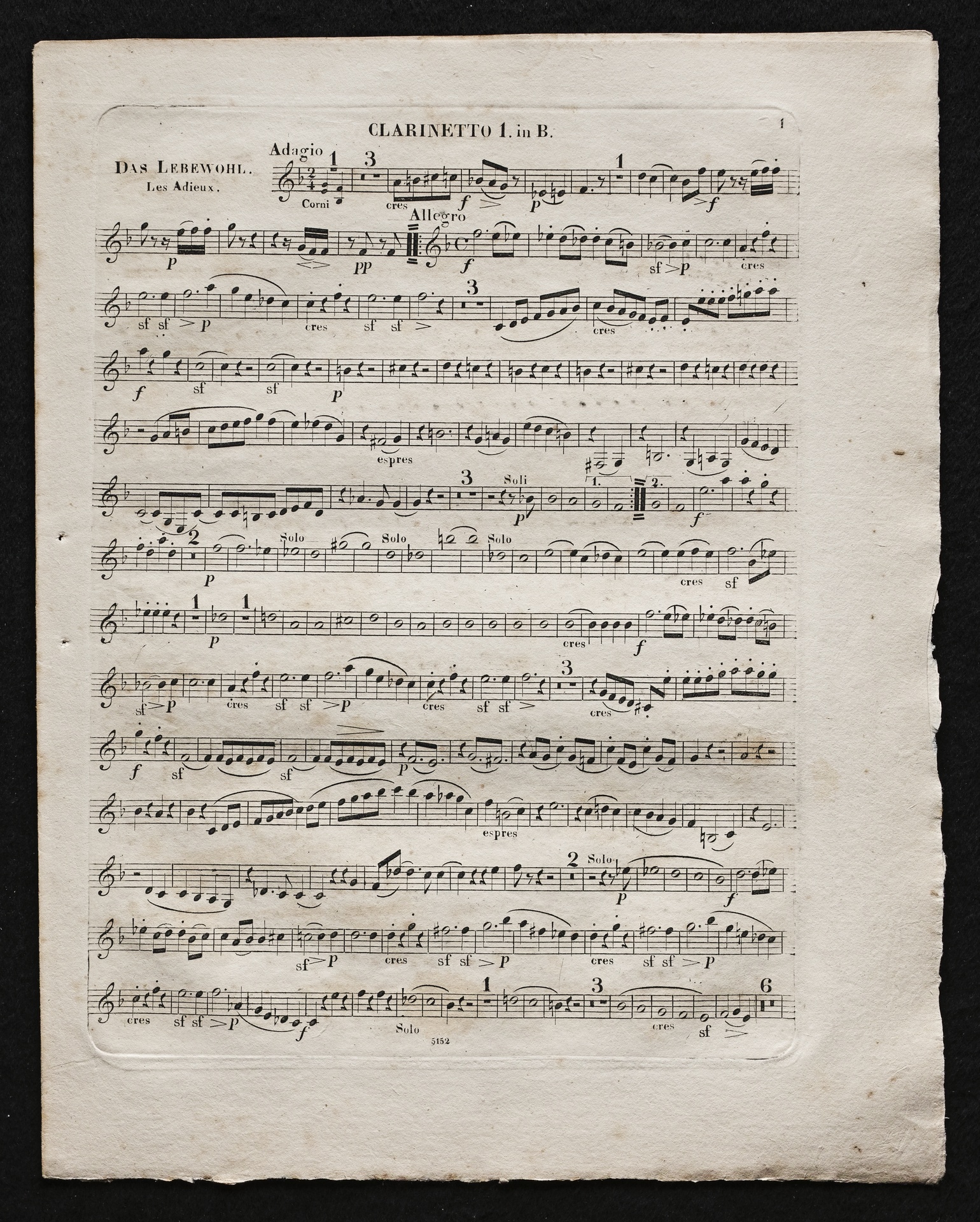 Ludwig van Beethoven, Sonate für Klavier (Es-Dur) op. 81a, Bearbeitung für Orchester von Gottlob Benedikt Bierey, Stimmen, Breitkopf und Härtel, 5152