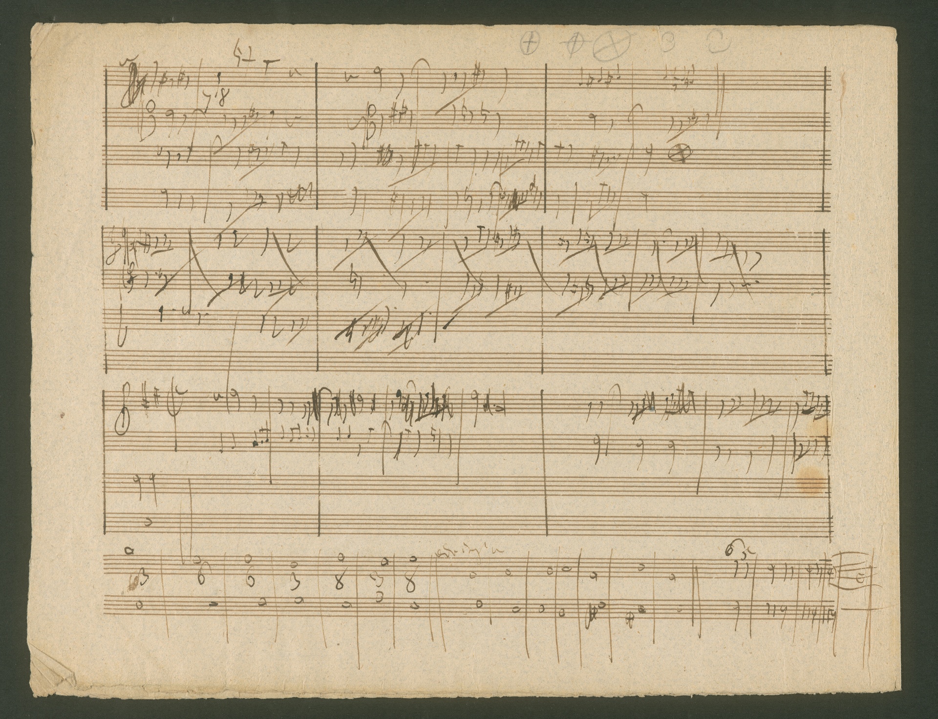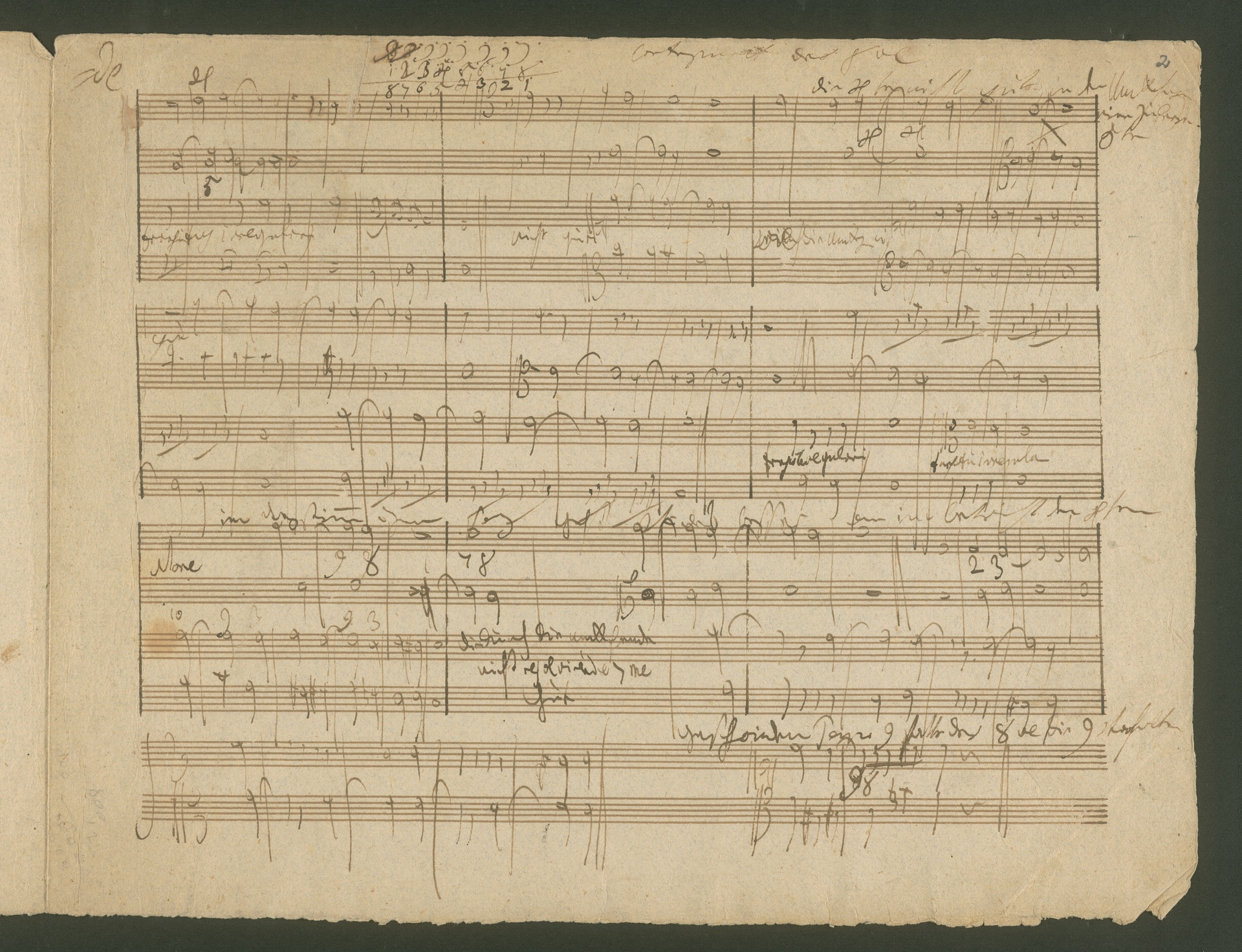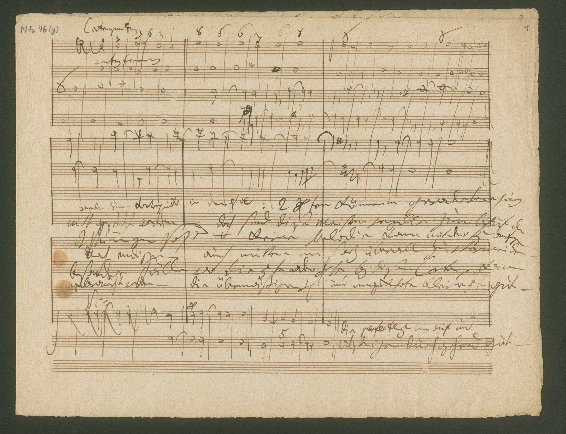 "Auch bitte ich mir den Kirnberger gefälligst zu schicken, um den meinigen zu ergänzen. Ich unterrichte Jemanden eben im Contrapunkt, und mein eigenes Manuscript hierüber habe ich unter meinem Wust von Papieren noch nicht herausfinden können." 1817 äußerte Beethoven diese Bitte um eines der Standardwerke der Musiktheorie an seinen Freund, Verleger und Musikalienhändler Tobias Haslinger in Wien (BGA 1102, Beethoven an Tobias Haslinger, Wien, möglicherweise März 1817). Der "Jemand", den Beethoven nicht nennen will, ist ohne Zweifel Erzherzog Rudolph - er war der Einzige, den Beethoven je im Kontrapunkt bzw. Musiktheorie und Komposition unterrichtete. Dieser Unterricht begann bereits 1809. Beethoven kompilierte zu diesem Zweck aus den wichtigsten zeitgenössischen Musiklehren Ausschnitte, hauptsächlich zum Kontrapunkt und zur Fugentheorie. Nach seinem Tod wurden einige Pakete solcher Exzerpte verkauft. Die neun Handschriften, die unter der Signatur HCB Mh 46 im Beethoven-Haus beheimatet sind, gehören ebenfalls zu den Abschriften, die Beethoven für seinen Schüler anfertigte. (J.R.)