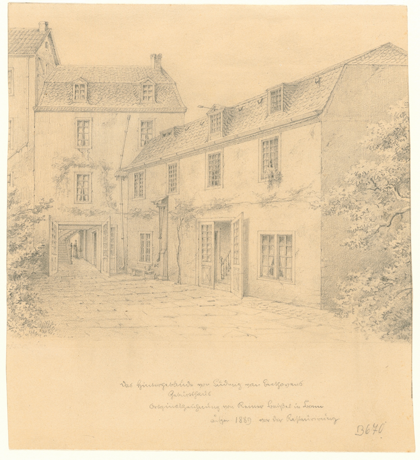 Im Jahr 1889 wurde das Haus, in dem Ludwig Beethoven am 16. oder 17.12.1770 geboren worden ist, vom neu gegründeten Verein Beethoven-Haus erworben. Man beabsichtige, in dem Gebäude ein Museum zum Gedenken an den Komponisten einzurichten, und nahm zu diesem Zweck eine Reihe von Umbaumaßnahmen im Vorder- und Hinterhaus