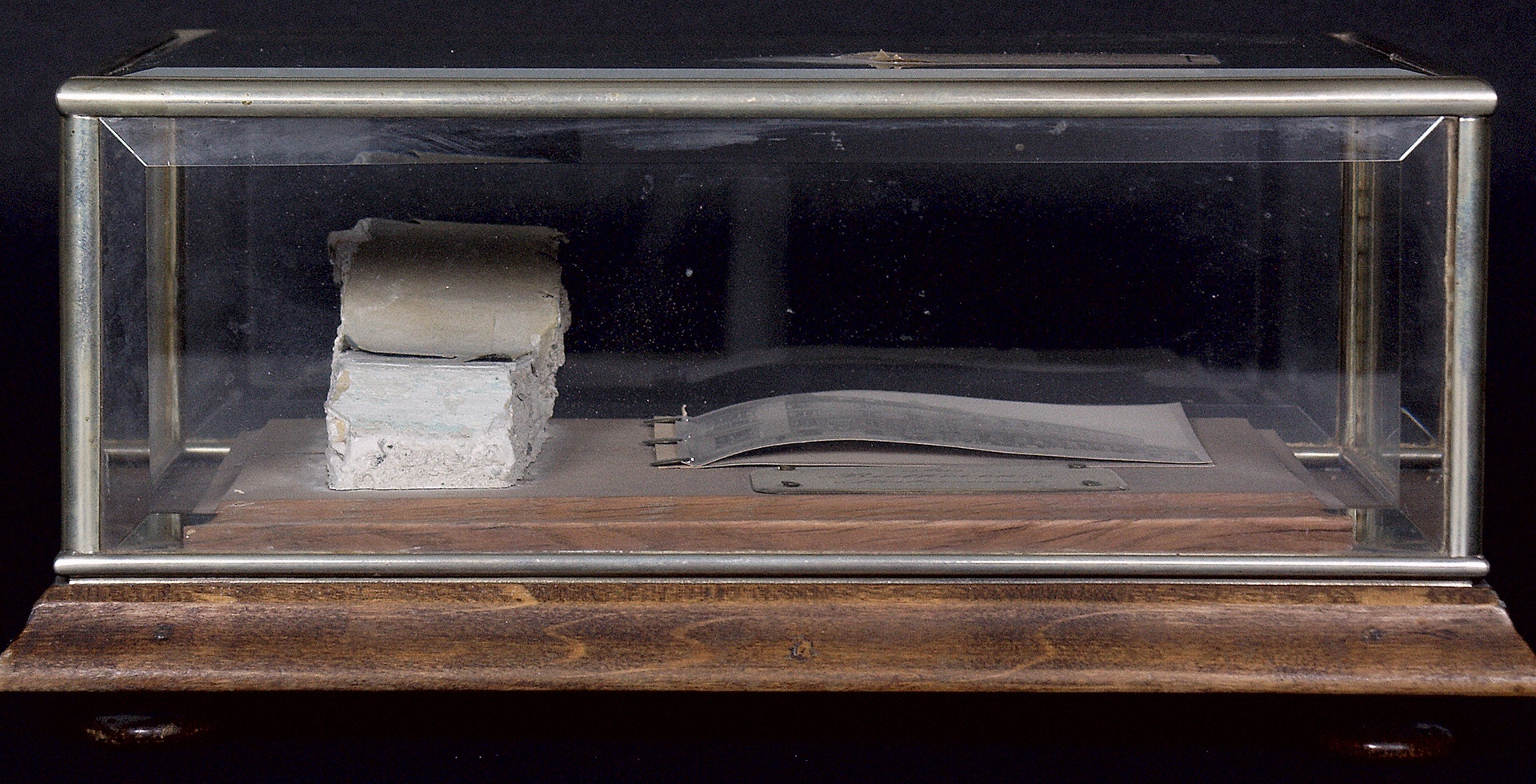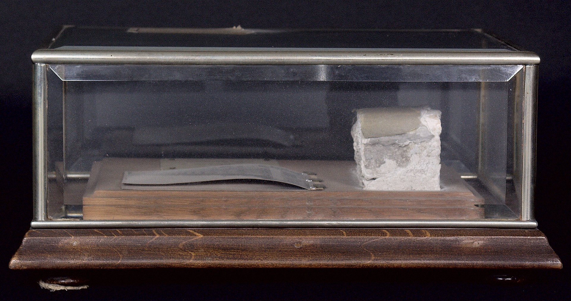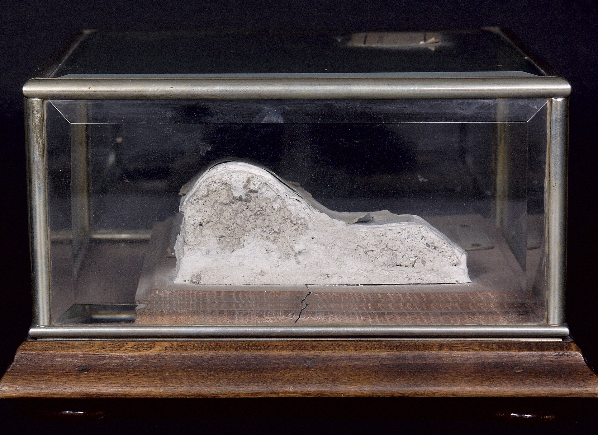 In der Mitte der 20. Jahrhunderts erhielt das Beethoven-Haus als Geschenk aus spanischem Privatbesitz eine Glasschatulle, die ein Foto des letzten Wohnhauses Beethovens enthielt sowie ein etwa 3,5 cm breites Stuckfragment, das nach Angaben der Geberin aus der Wand in Beethovens Sterbezimmer entnommen worden ist. Das Stück stammt wohl aus dem profilierten Randabschluß der Wand in Beethovens Sterbezimmer zur Decke hin und dürfte im Herbst 1903, als die Pläne zum Abriß des Schwarzspanierhauses bekannt wurden, aus dem Raum entnommen worden sein. Deutlich sind noch die verschiedenen Farbfassungen der Wand aus dem 18. und 19. Jahrhundert zu erkennen. (S.B.)