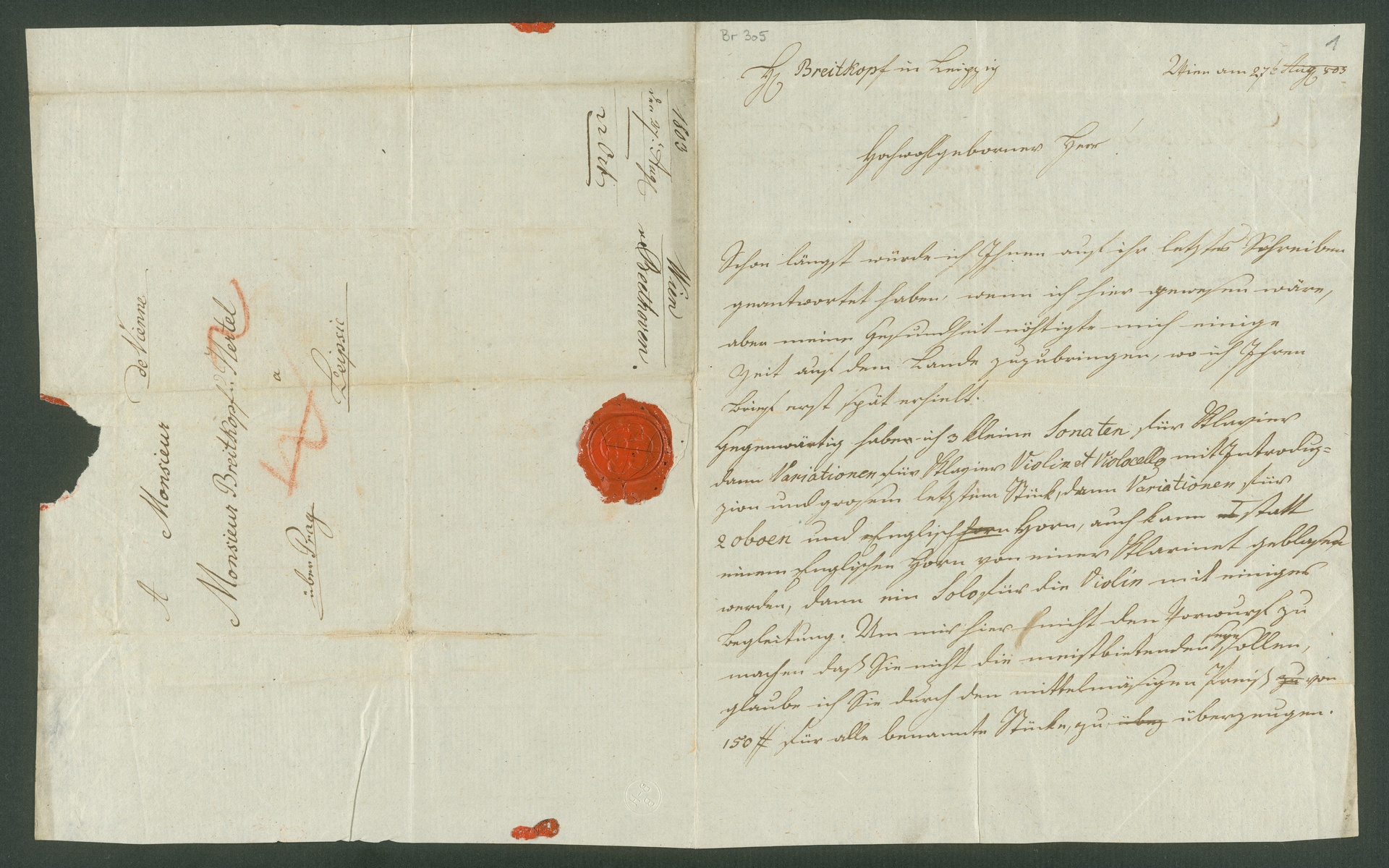 Kaspar Karl van Beethoven, Brief an Breitkopf & Härtel in Leipzig, Wien, 27. August 1803, Autograph