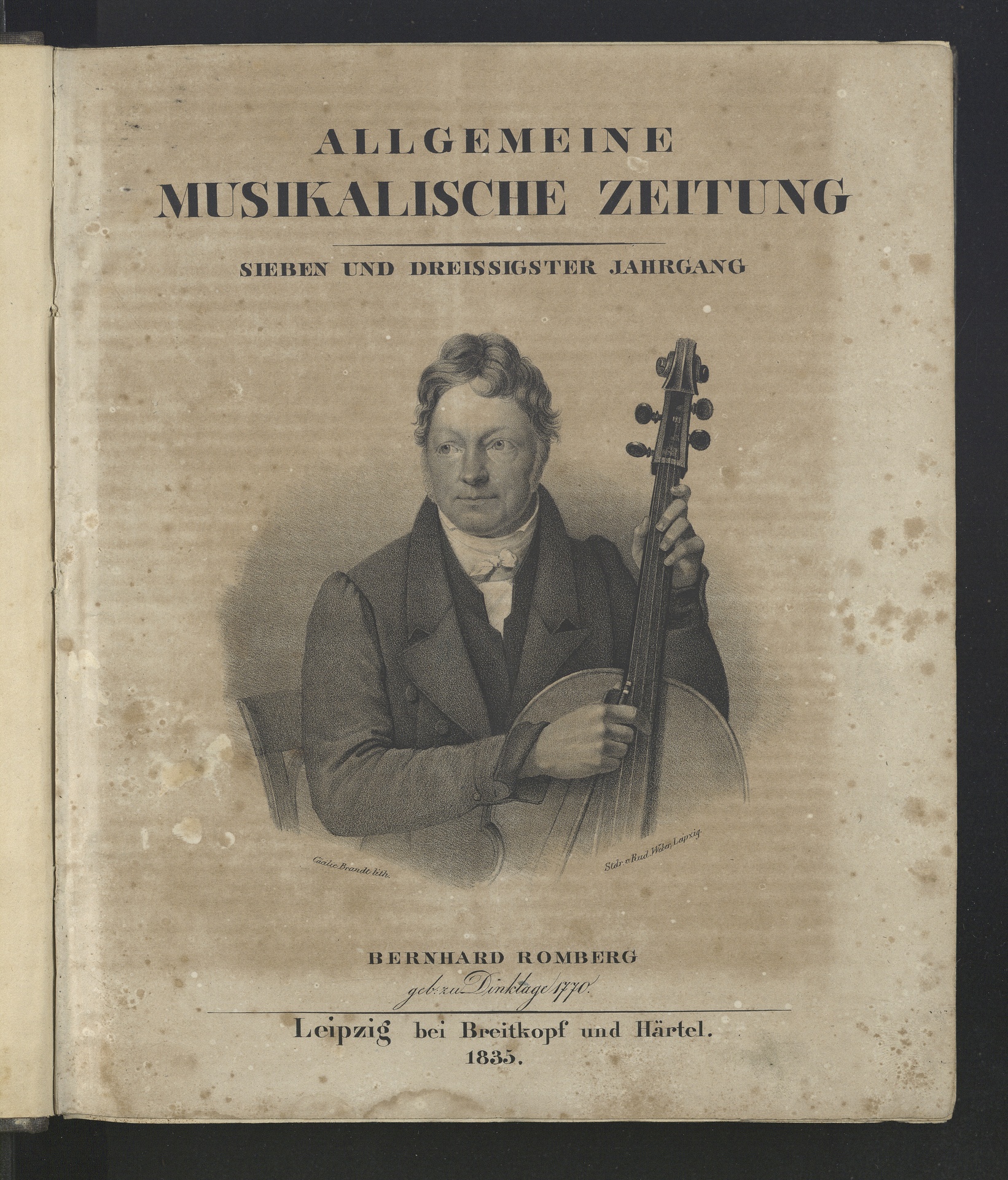 Bernhard Romberg (1767-1841) - Lithographie von Cäcilie Brand, gedruckt von Rudolf Weber, erschienen bei Breitkopf & Härtel, Leipzig, 1835