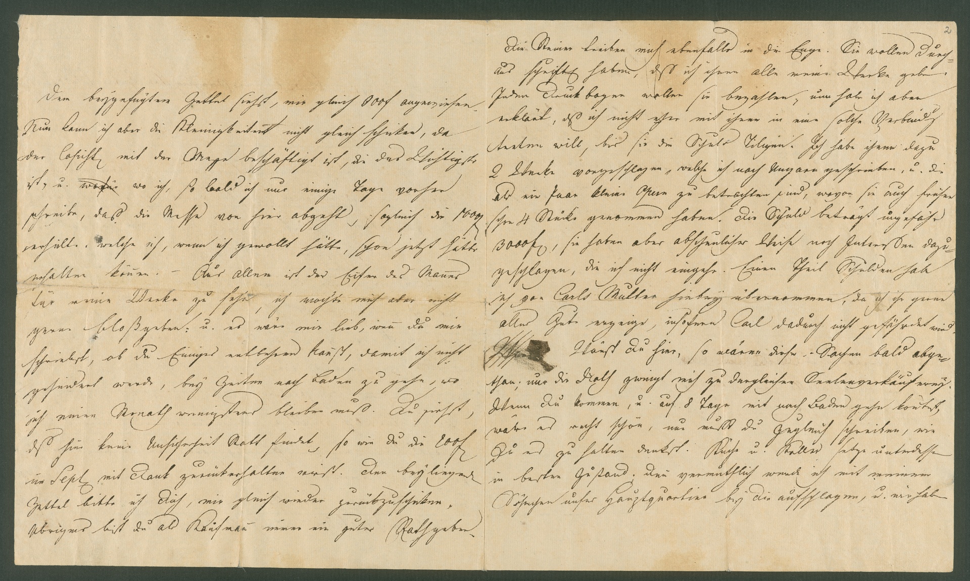 Zuletzt bittet er seinen Bruder nochmals um einen Besuch, um ihn ausführlich beraten zu können. Dann kündigt er an, er plane voraussichtlich im September zusammen mit dem Neffen Karl für einige Wochen auf das Gut des Bruders zu kommen. Im Anschluss setzt der Neffe Karl auch persönliche Grüße hinzu. (J.R.)
