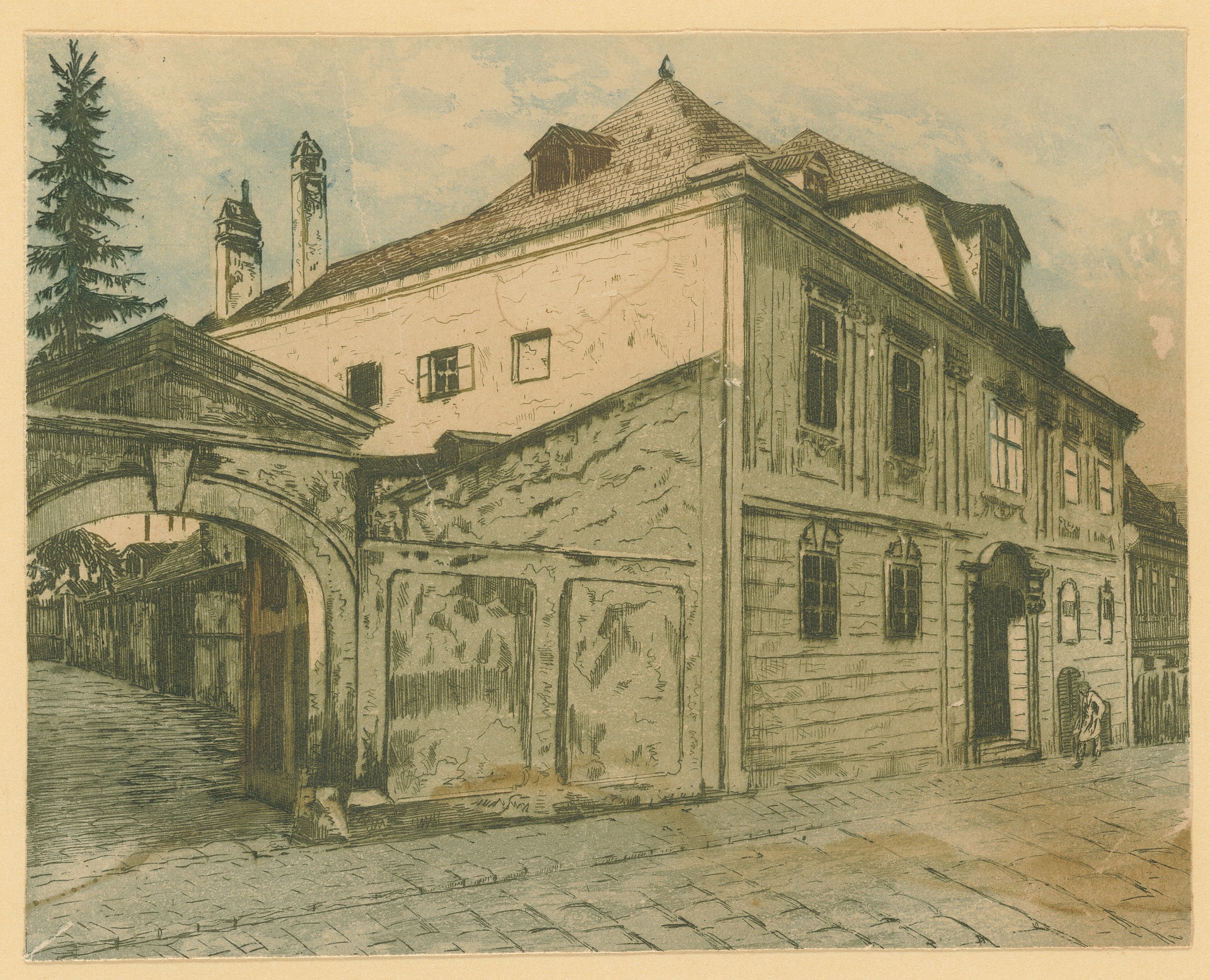 Wien, Nußdorf, Kahlenberger Straße 26, Wohnung von Ludwig van Beethoven, (Greinersches Haus), Straßenansicht - Radierung von Schall nach einer eigenen Zeichnung, Wien, um 1928