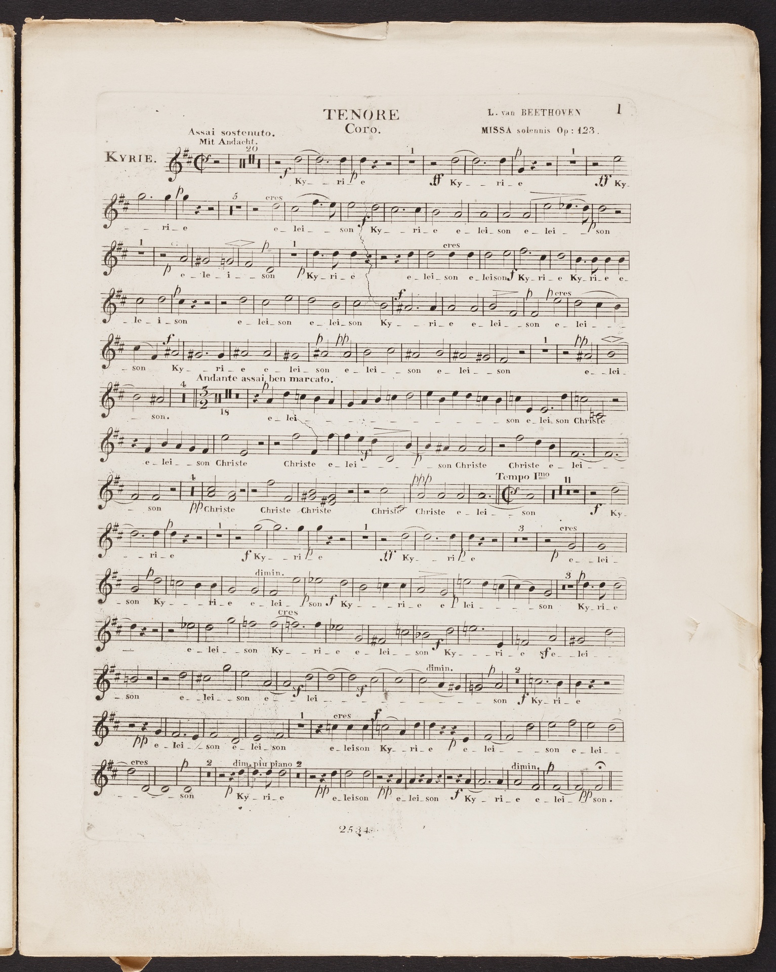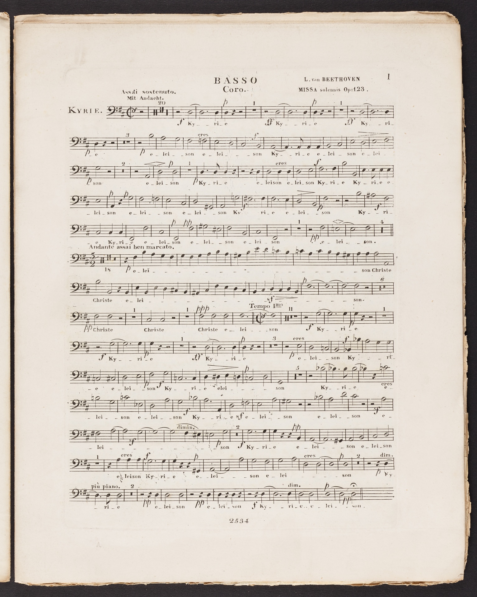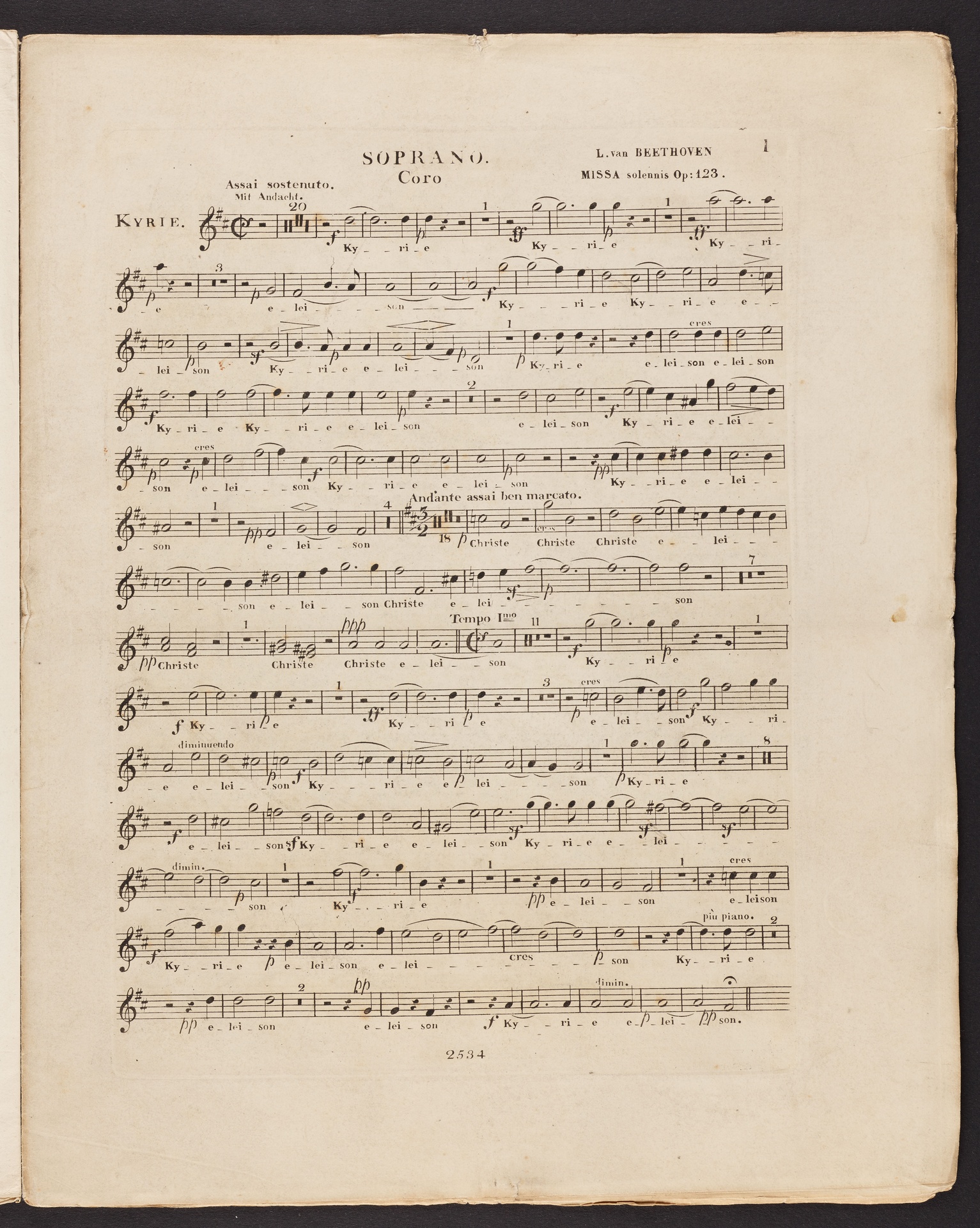 Ludwig van Beethoven, Messe für vier Solostimmen, Chor, Orchester und Orgel (D-Dur) op. 123 (Missa solemnis), Stimmen, Schott, 2534