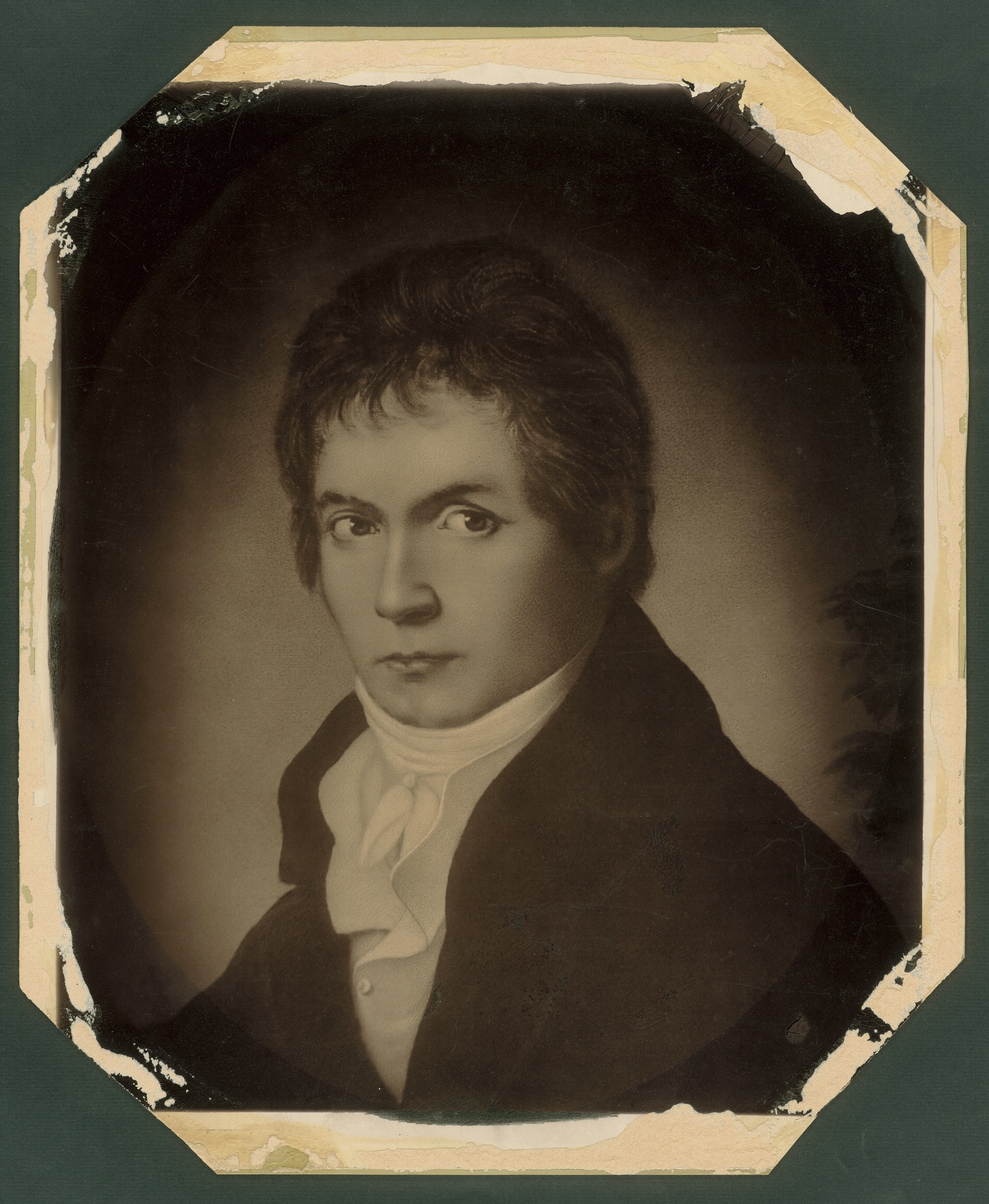Um das Jahr 1815 schuf Mähler eine Serie von Bildnissen zeitgenössischer Wiener Komponisten, "welche sich sämtlich durch einen kräftigen Pinsel, sprechende Ähnlichkeit und unverkennbaren Seelenausdruck rühmlichst auszeichnen", wie es in der "Allgemeinen Musikzeitung" vom August 1815 heißt. Zu dieser Serie gehört auch ein Brustbild Beethovens, von dem der Maler mehrere Versionen schuf. Mähler scheint dieses Portrait besonders geschätzt zu haben, denn er behielt eine Fassung des Bildes bis zu seinem Tod in seinem Besitz. (S.B.)