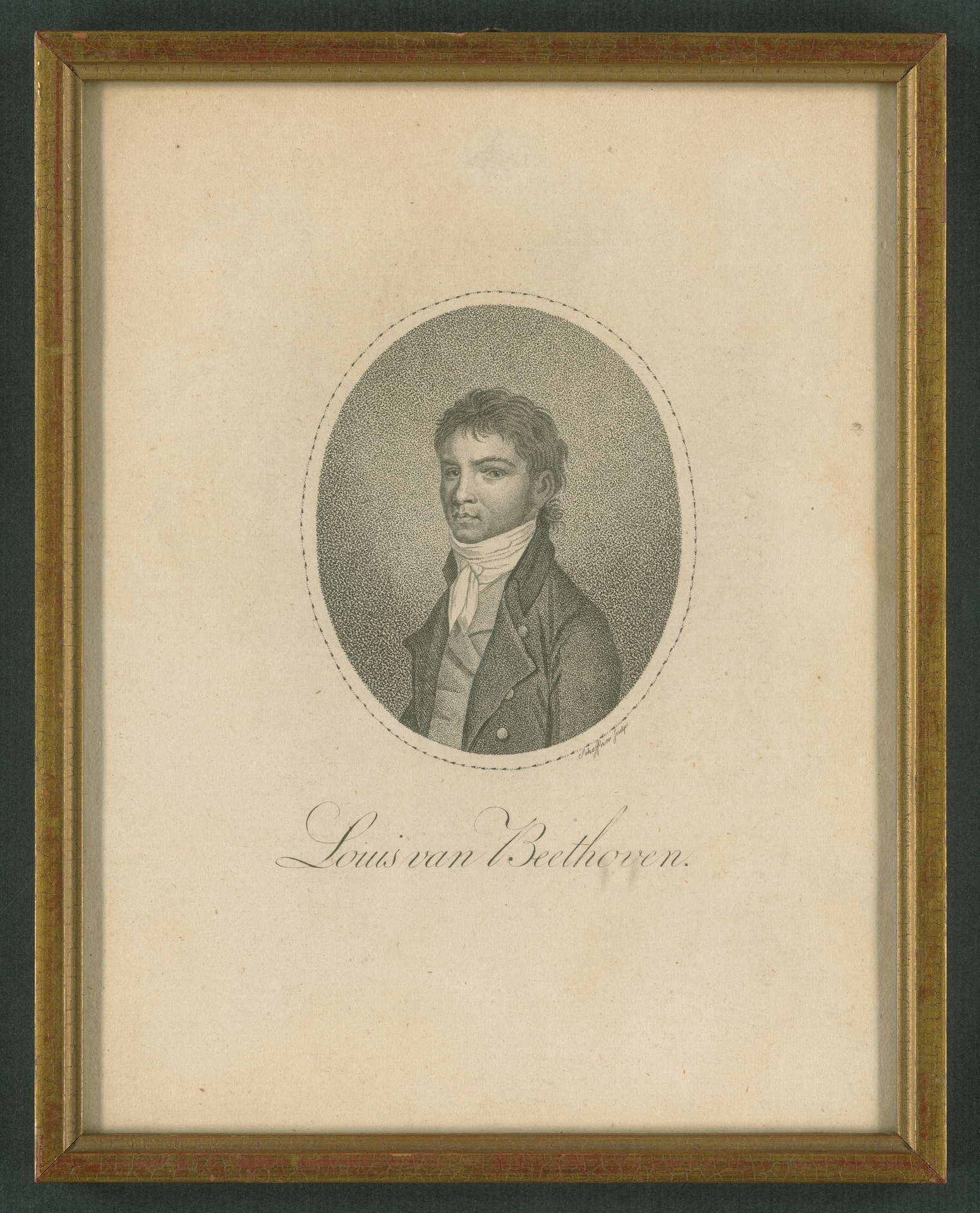 Ludwig van Beethoven - Stich von Johann Gottfried Scheffner nach dem Stich von Johann Joseph Neidl, der die Zeichnung von Gandolph Ernst Stainhauser von Treuberg aus dem Jahr 1801 reproduziert, erschienen bei Breitkopf und Härtel, Leipzig, 1804