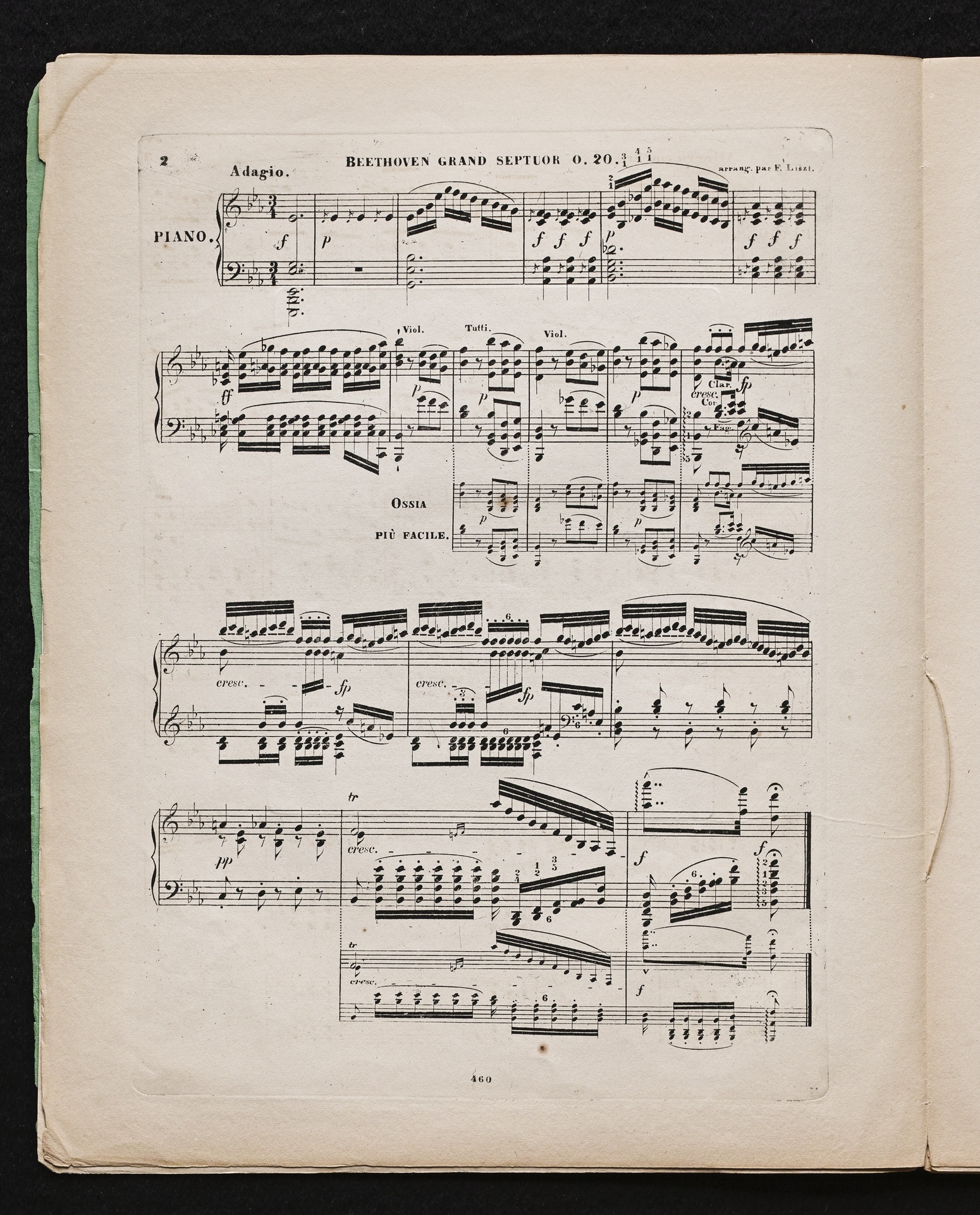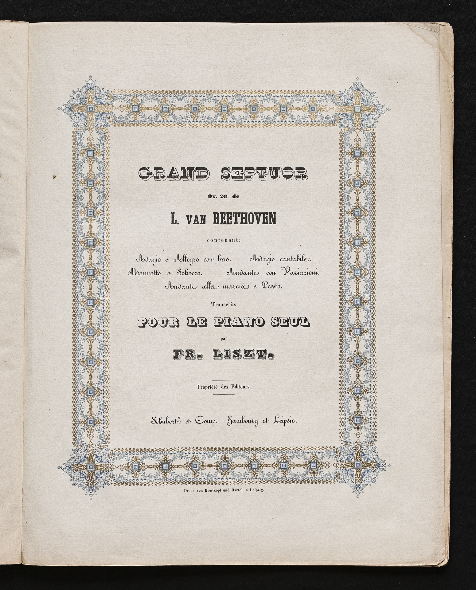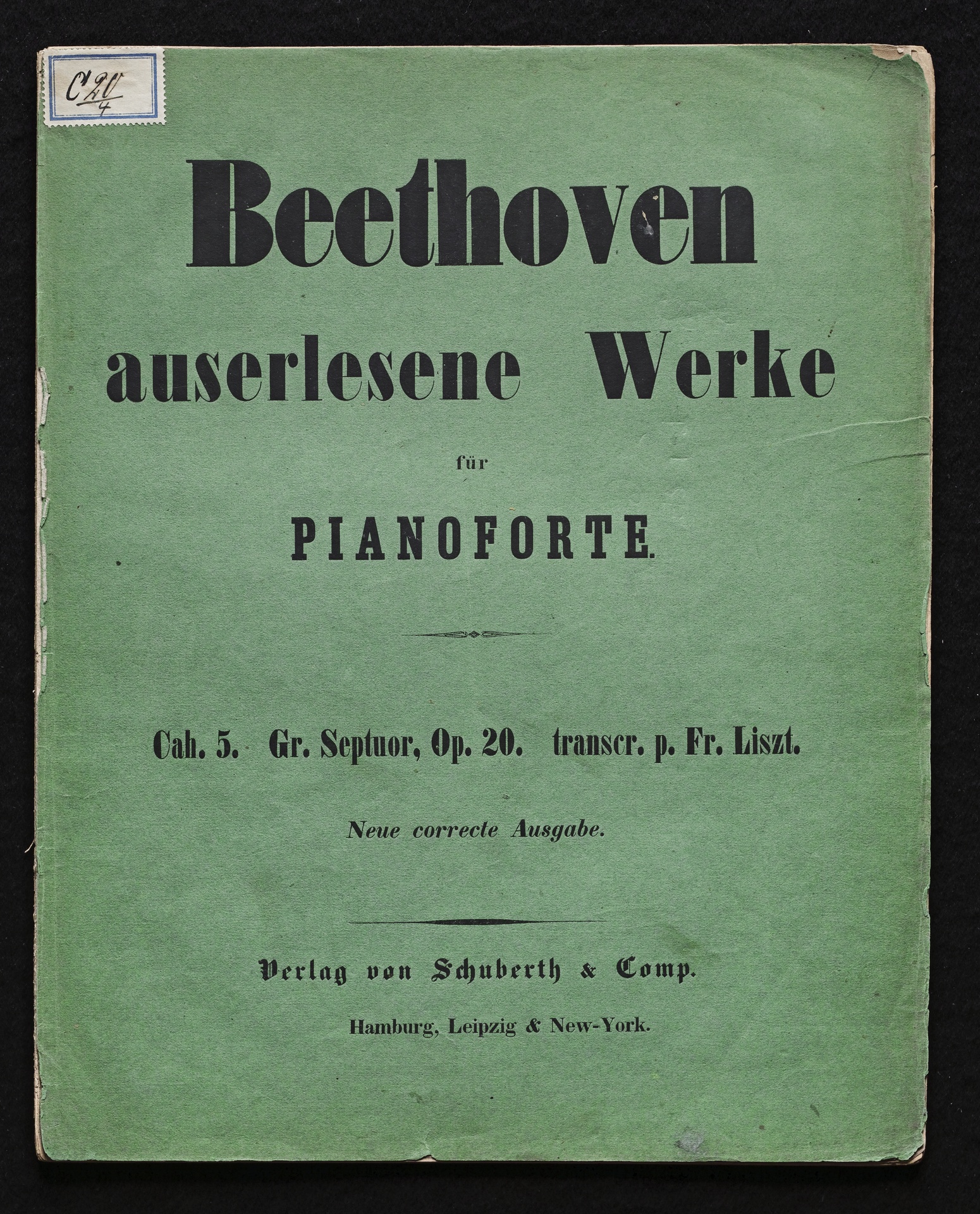 Ludwig van Beethoven, Septett für Violine, Viola, Klarinette, Horn, Fagott, Violoncello, Kontrabass (Es-Dur) op. 20, Bearbeitung für Klavier von Franz Liszt, Schuberth, 460-464