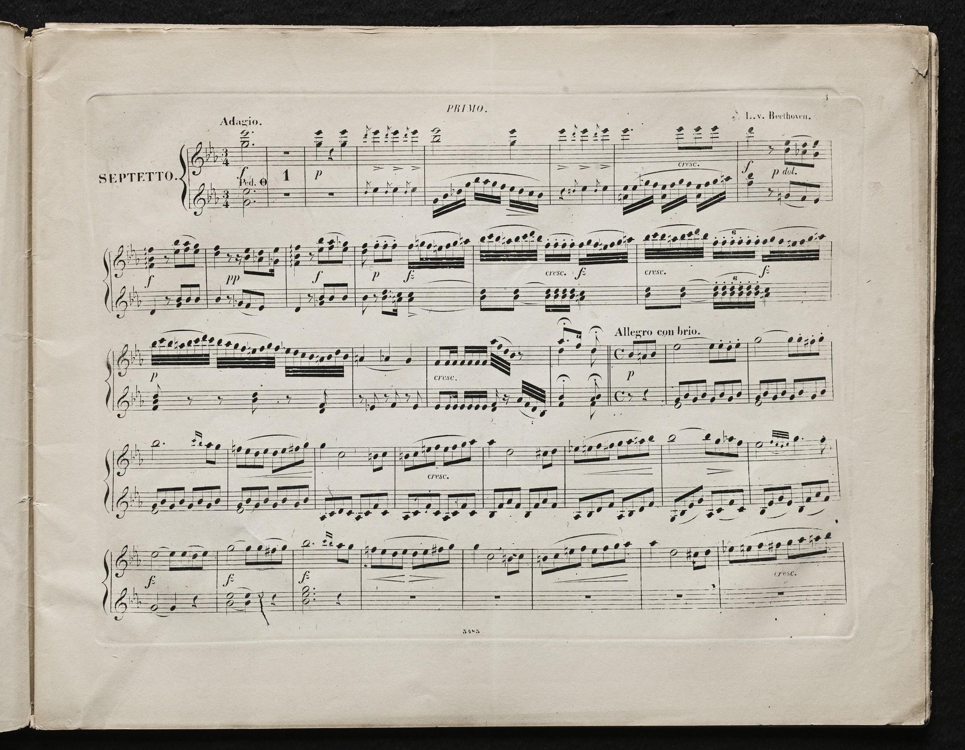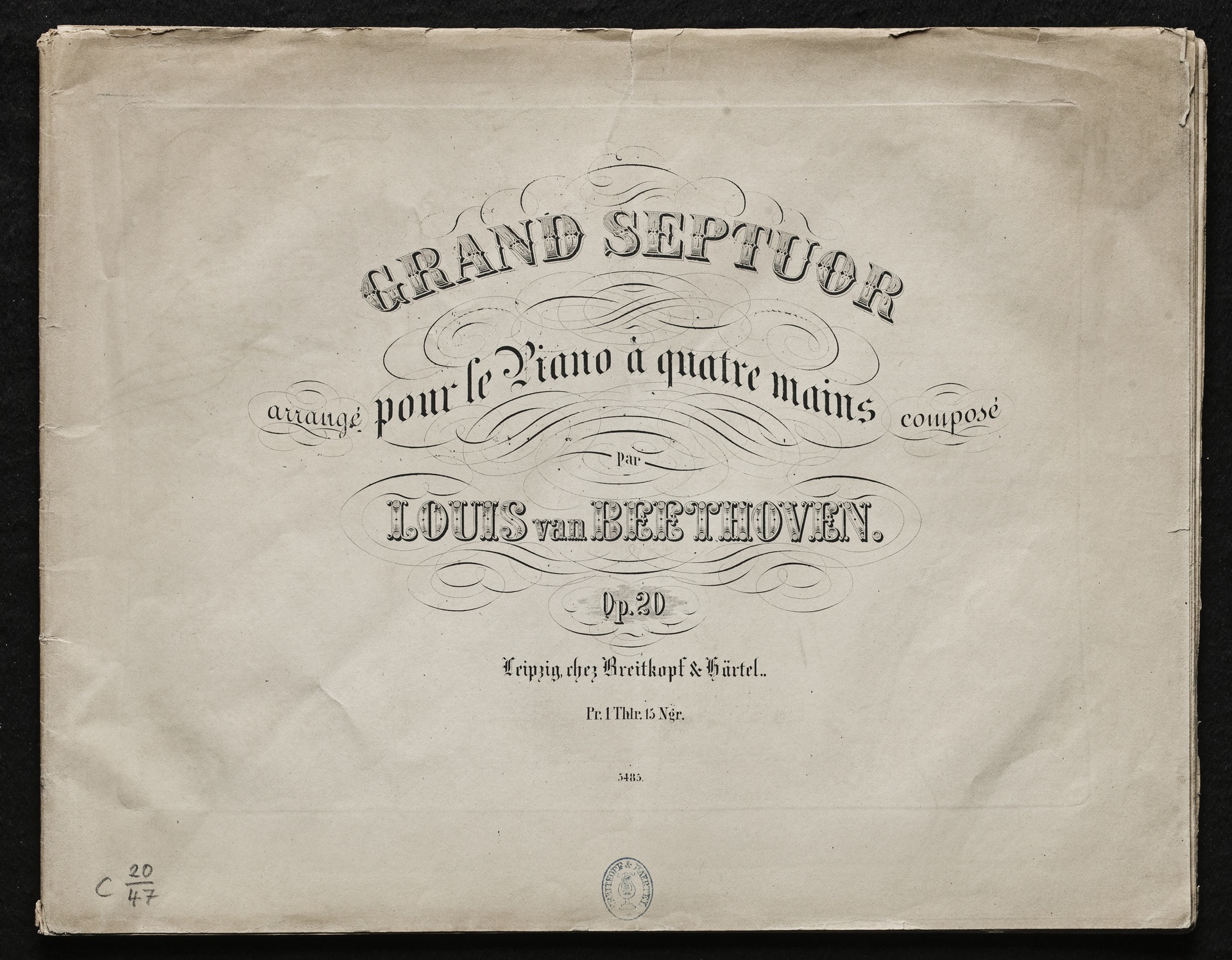 Ludwig van Beethoven, Septett für Violine, Viola, Klarinette, Horn, Fagott, Violoncello, Kontrabass (Es-Dur) op. 20, Bearbeitung für Klavier zu 4 Händen von Friedrich Mockwitz, Breitkopf und Härtel, 5485