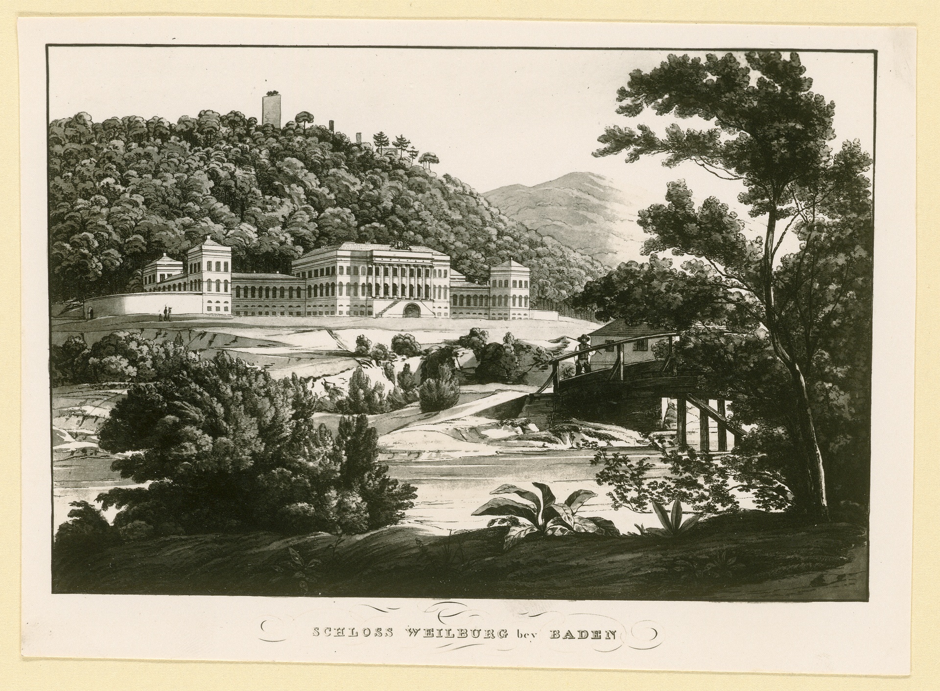 Schloss Weilburg bei Baden, 1. Hälfte 19. Jahrhunderts - Fotografie einer Radierung von Johann Nepomuk Passini, wohl nach einem Aquarell von Thomas Ender