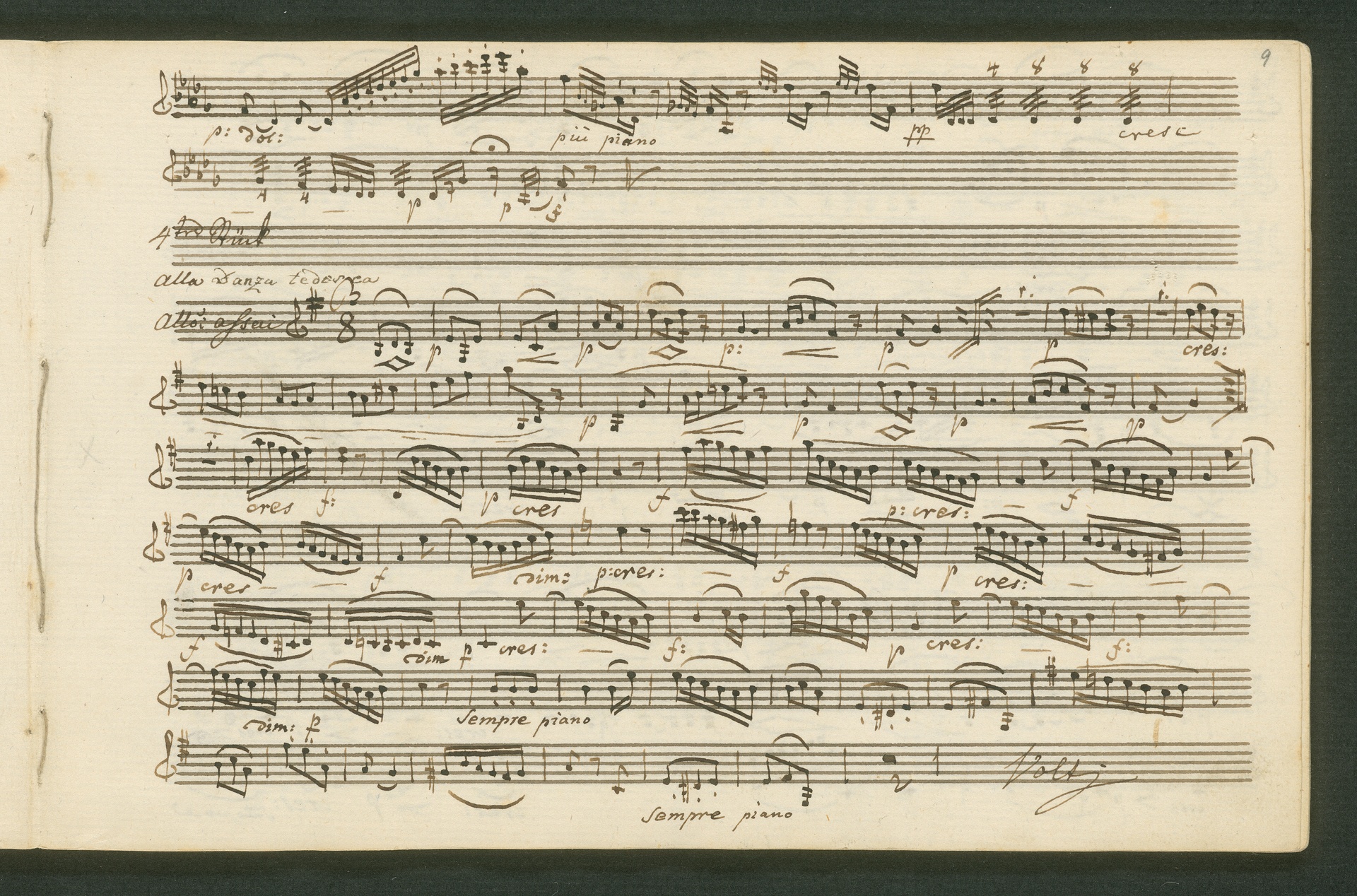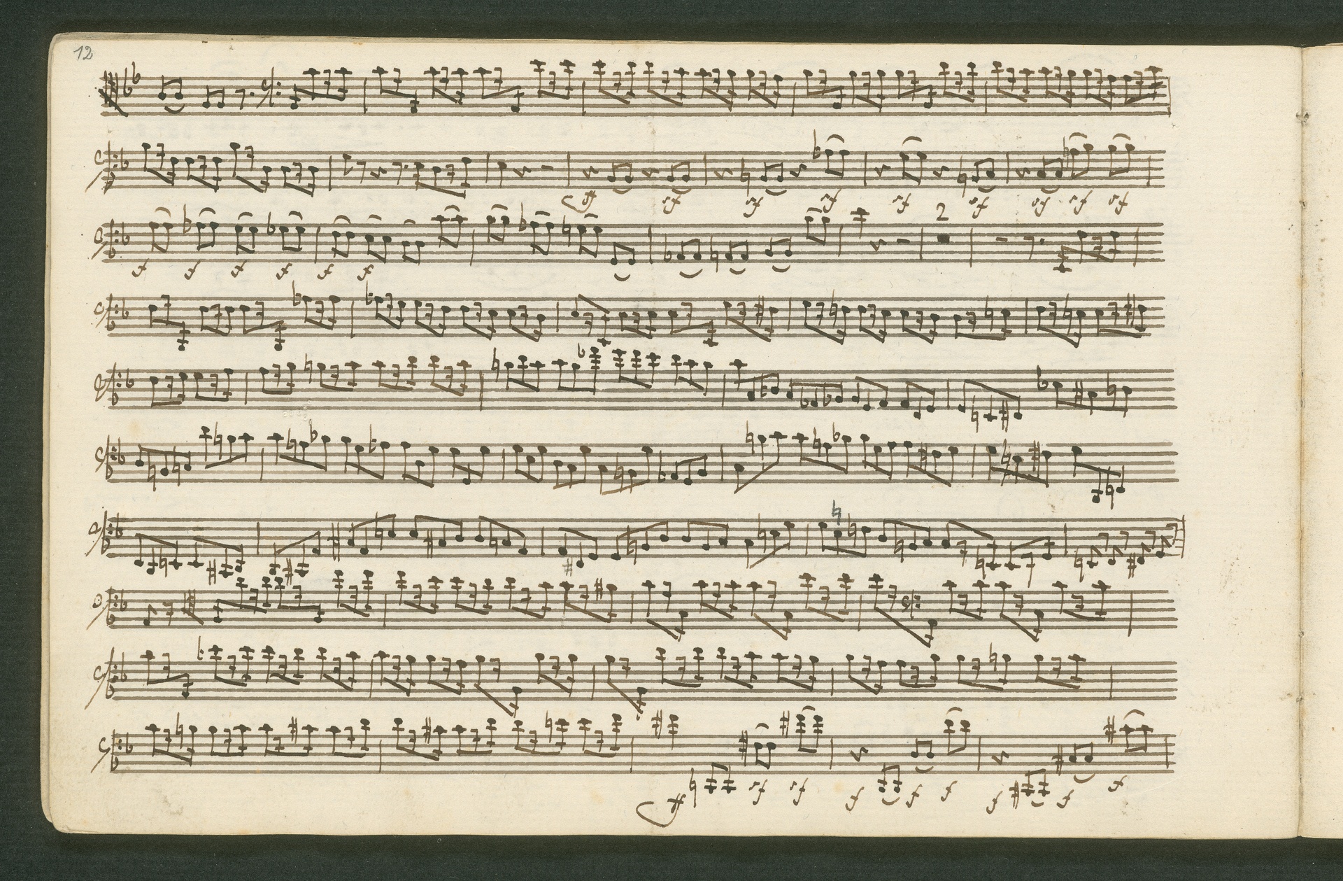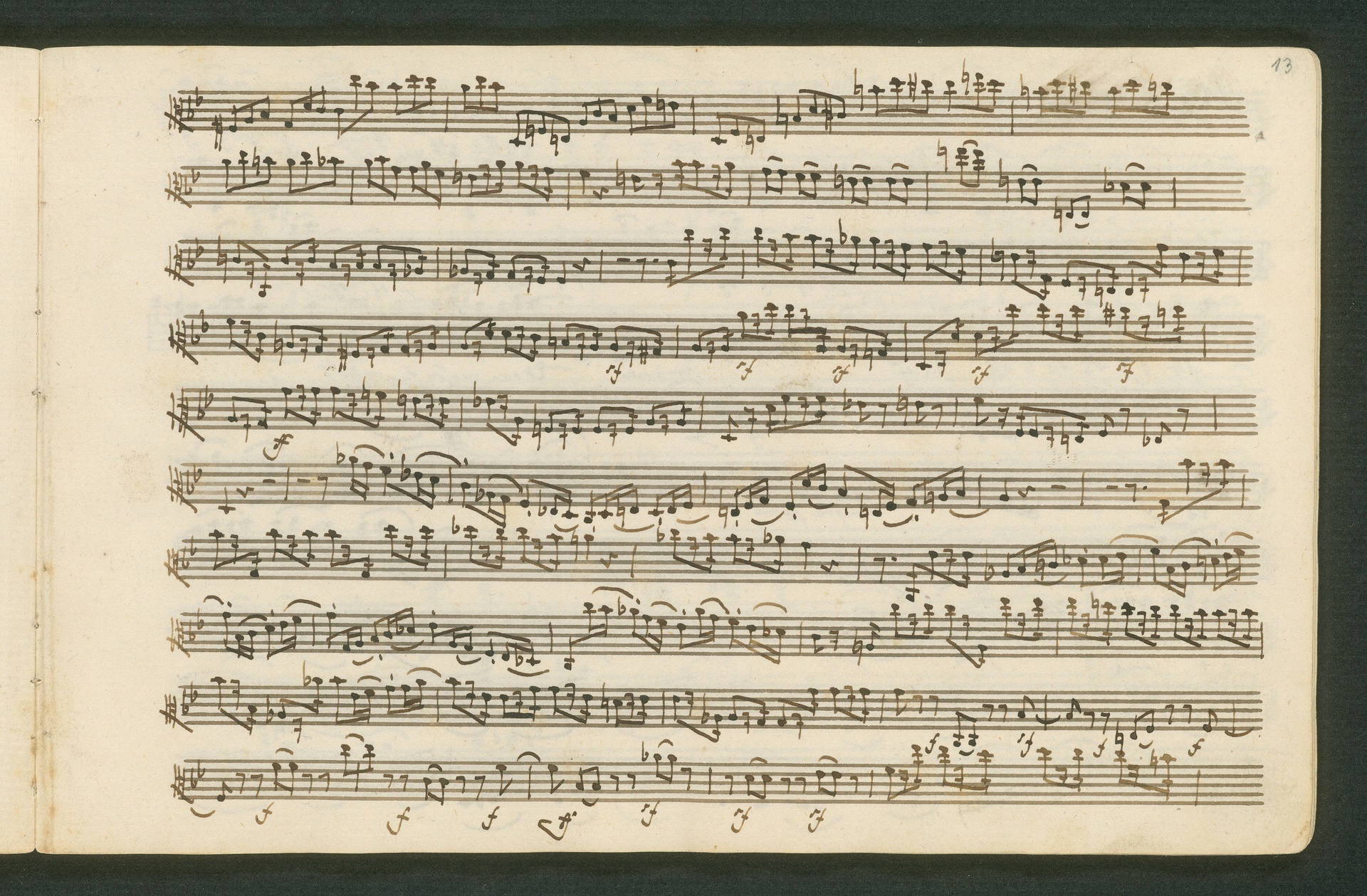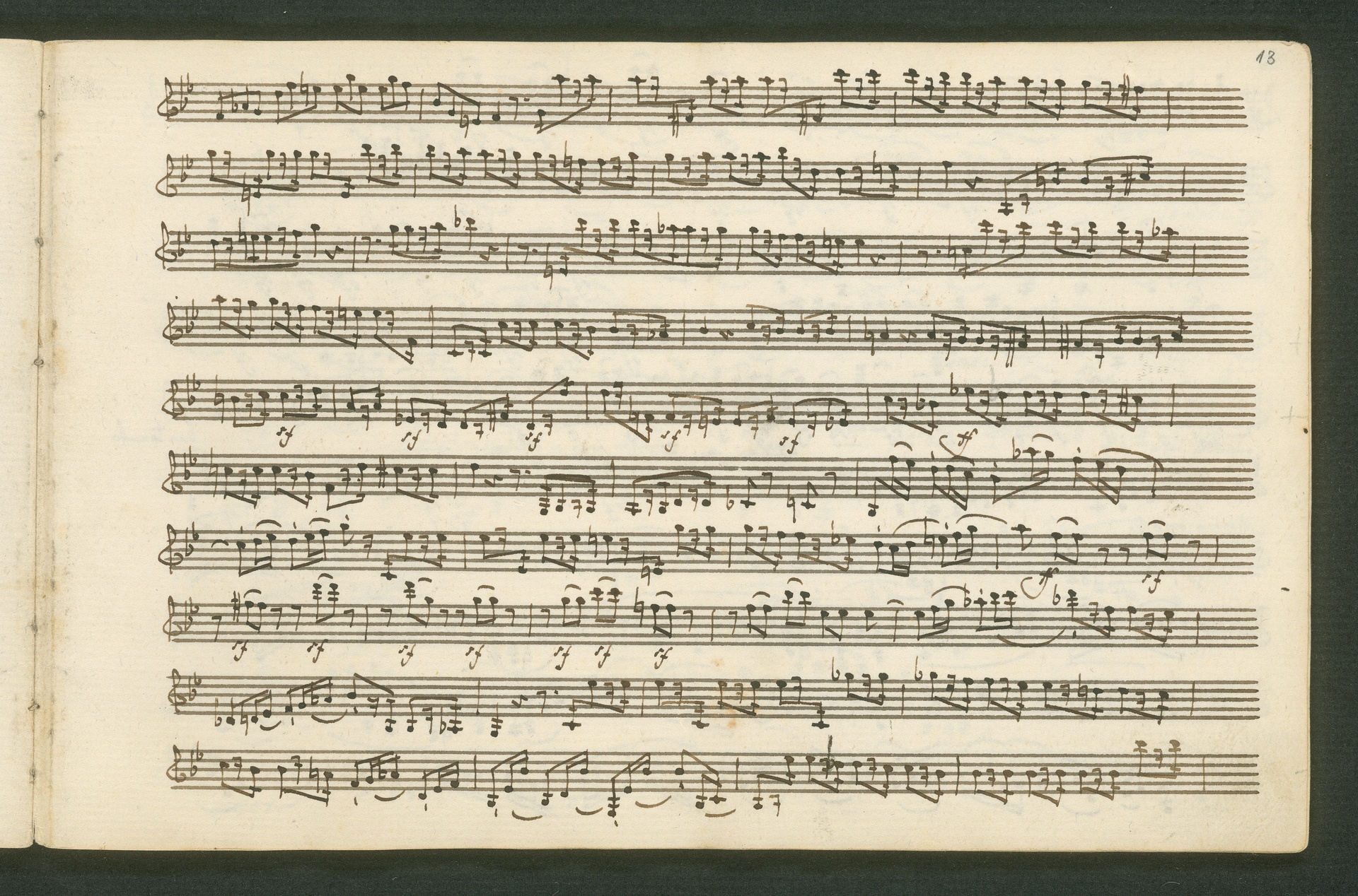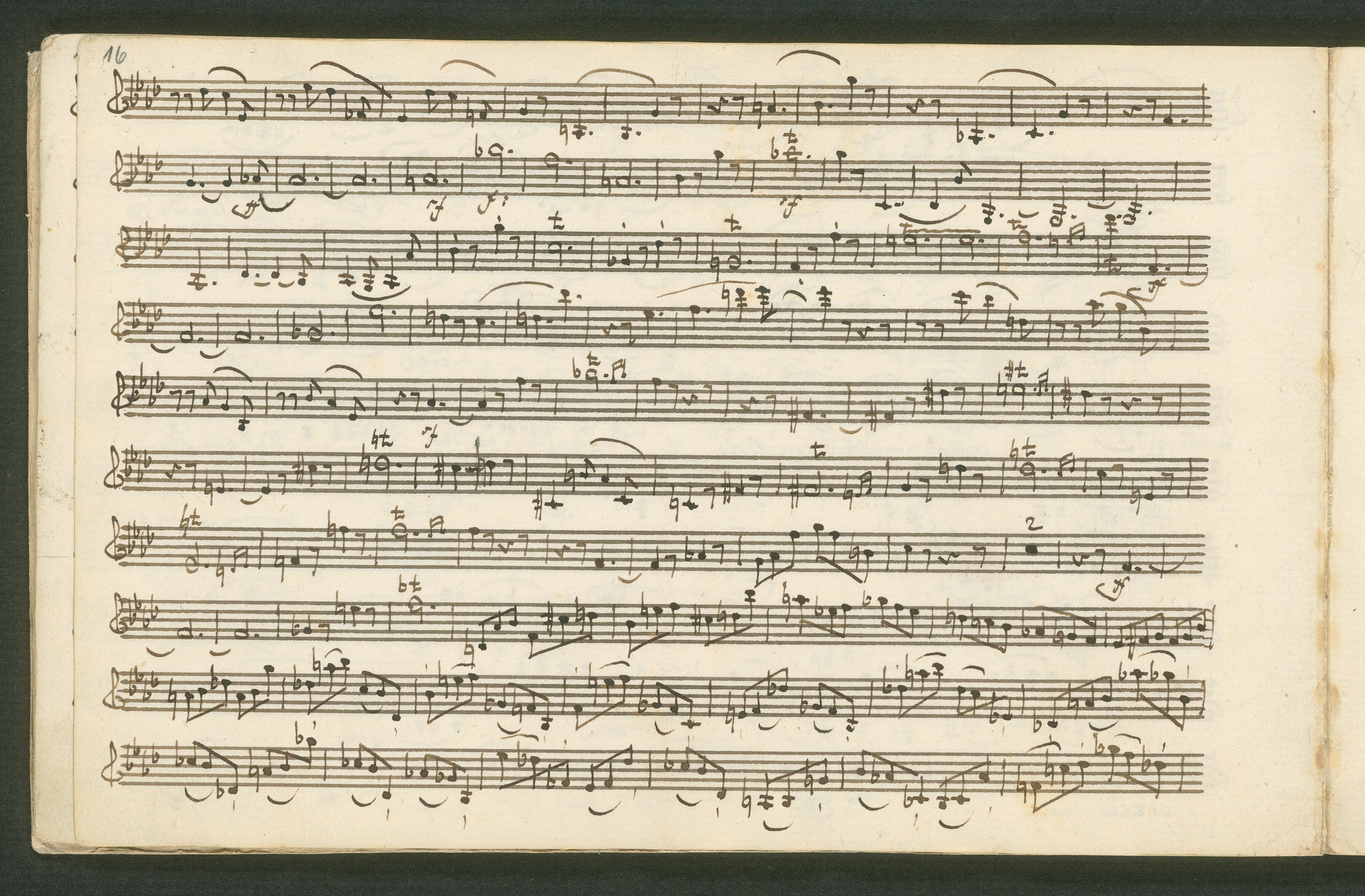 Fürst Nikolaus Borissowitsch Galitzin war einer von Beethovens glühendsten Bewunderern. Der in St. Petersburg lebende Russe war Musikliebhaber und ein begabter Cellist. Schon am 9. November 1822 bestellt er schriftlich bei Beethoven "ein, zwei oder drei Neue Quartette". Den Auftrag nahm Beethoven 1823 an, die Arbeit zog sich aber bis 1825 hin - parallele Projekte, vor allem die 9. Sinfonie, zögerten die Arbeit an den Quartetten hinaus. Der Fürst - seine Ungeduld wurde durch seine übergroße Bewunderung für Beethoven und die Subskription der Missa Solemnis gezügelt - erhielt schließlich von Beethoven die drei Streichquartette op. 127, 130 und 132 gewidmet. Beethoven sandte ihm im Januar 1826 überprüfte Kopistenabschriften in Stimmen nach Rußland, also quasi "gebrauchsfertiges" Material. Die vorliegende Abschrift von op. 130 ist das Widmungsexemplar, mit der Widmung an den Fürsten auf der ersten Seite der ersten Violine. Beethoven schickte dem Fürsten op. 130 noch in seiner ursprünglichen Konzeption, wie er sie im November 1825 fertig stellte, mit der "Großen Fuge" (später ausgegliedert als eigenständiges op. 133) als Schlusssatz.