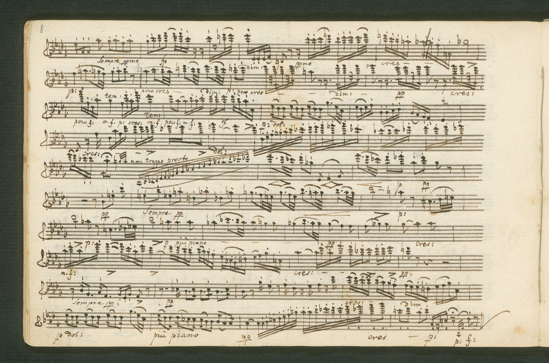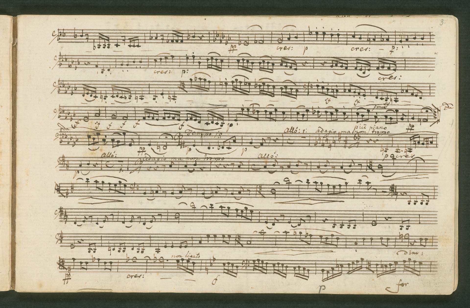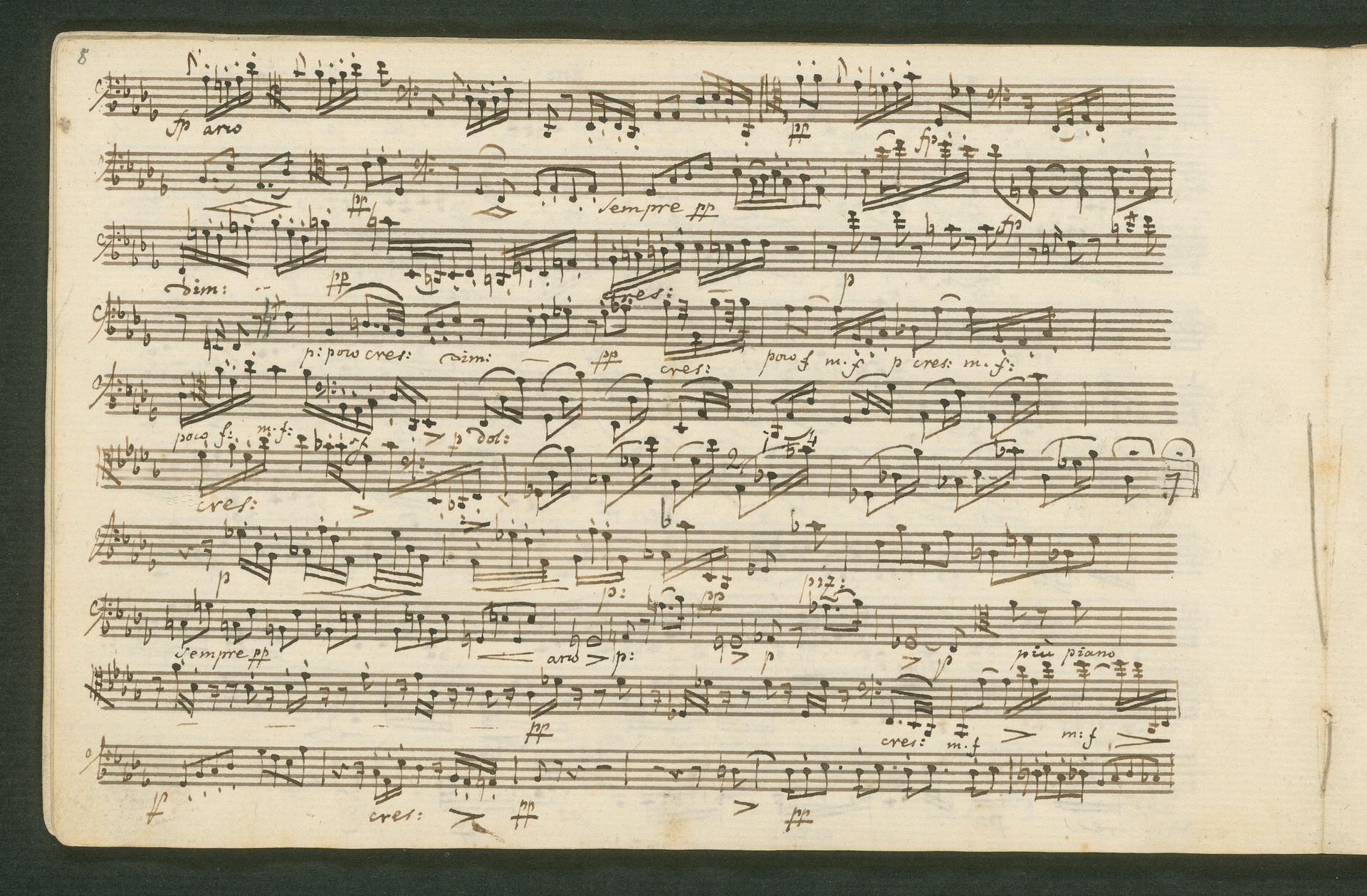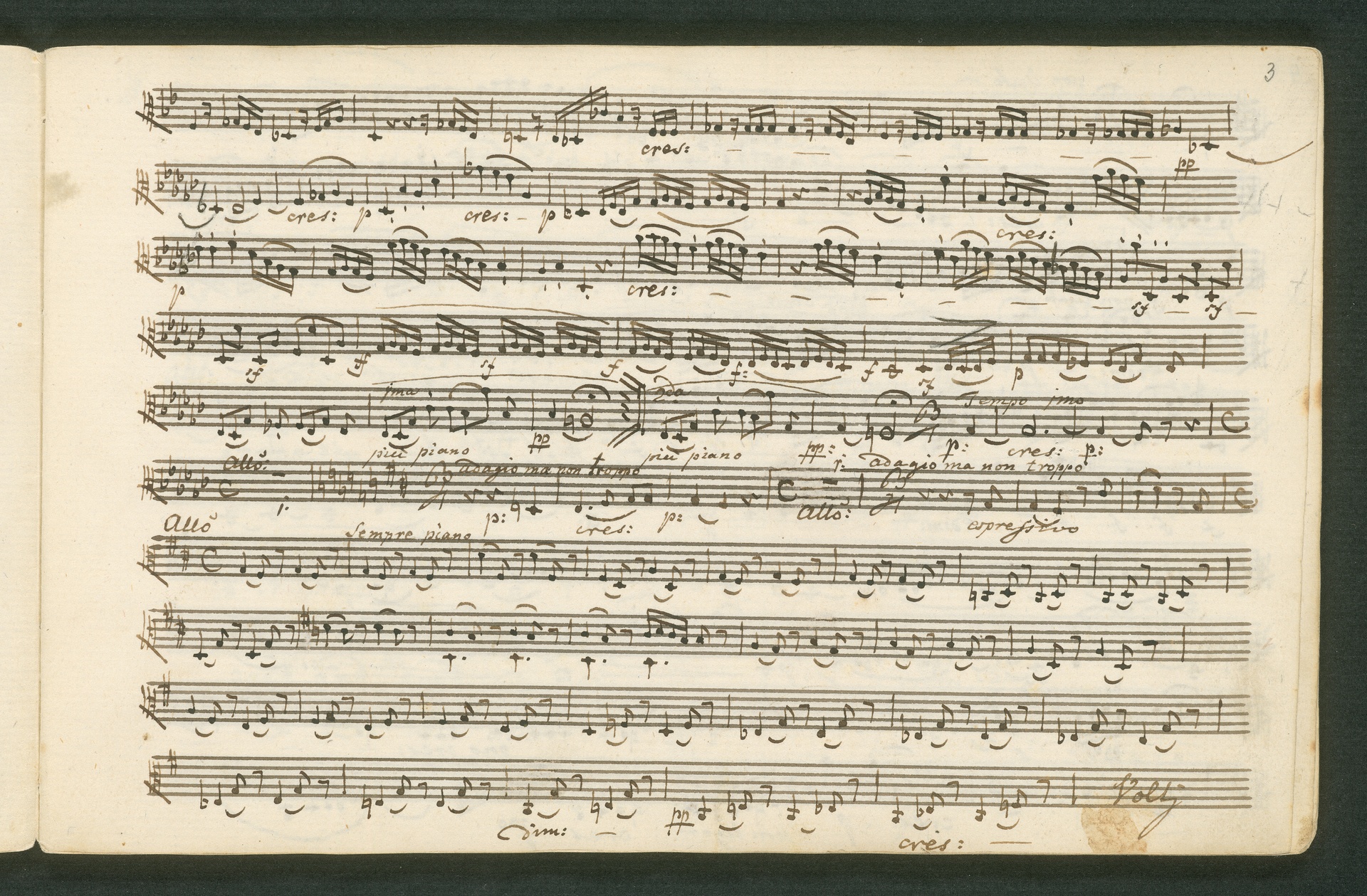 Fürst Nikolaus Borissowitsch Galitzin war einer von Beethovens glühendsten Bewunderern. Der in St. Petersburg lebende Russe war Musikliebhaber und ein begabter Cellist. Schon am 9. November 1822 bestellt er schriftlich bei Beethoven "ein, zwei oder drei Neue Quartette". Den Auftrag nahm Beethoven 1823 an, die Arbeit zog sich aber bis 1825 hin - parallele Projekte, vor allem die 9. Sinfonie, zögerten die Arbeit an den Quartetten hinaus. Der Fürst - seine Ungeduld wurde durch seine übergroße Bewunderung für Beethoven und die Subskription der Missa Solemnis gezügelt - erhielt schließlich von Beethoven die drei Streichquartette op. 127, 130 und 132 gewidmet. Beethoven sandte ihm im Januar 1826 überprüfte Kopistenabschriften in Stimmen nach Rußland, also quasi "gebrauchsfertiges" Material. Die vorliegende Abschrift von op. 130 ist das Widmungsexemplar, mit der Widmung an den Fürsten auf der ersten Seite der ersten Violine. Beethoven schickte dem Fürsten op. 130 noch in seiner ursprünglichen Konzeption, wie er sie im November 1825 fertig stellte, mit der "Großen Fuge" (später ausgegliedert als eigenständiges op. 133) als Schlusssatz.