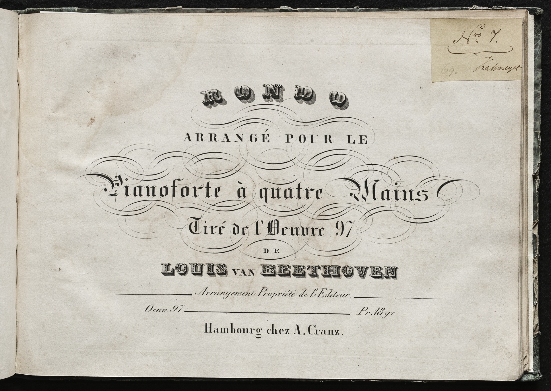 Ludwig van Beethoven, Trio für Klavier, Violine, Violoncello (B-Dur) op. 97, 4. Satz, Bearbeitung für Klavier zu 4 Händen, Cranz