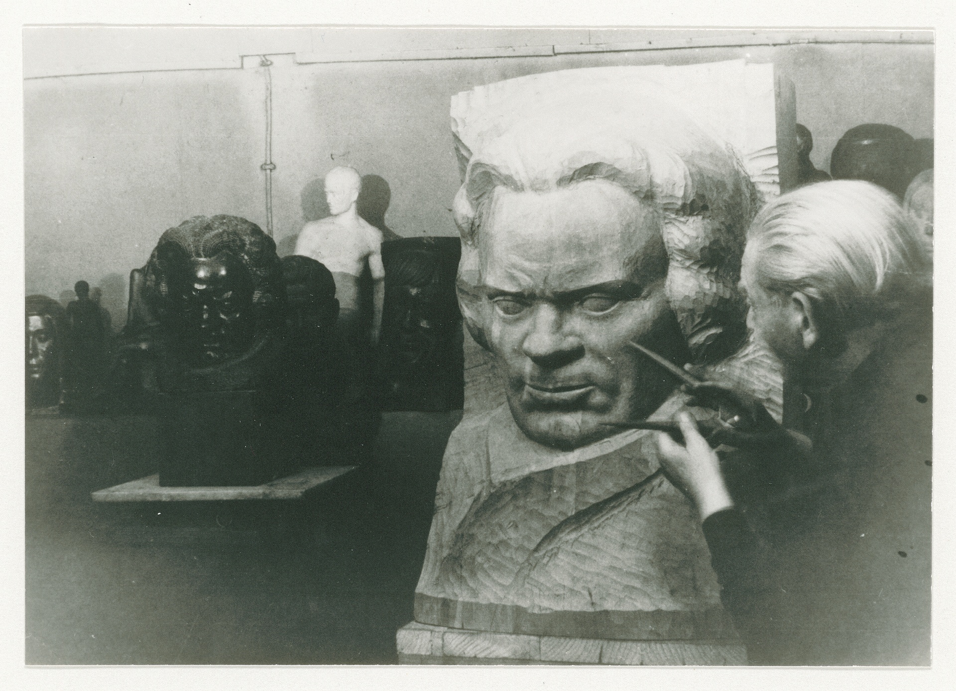 Eduard Merz bei der Arbeit an seiner Beethoven-Büste, um 1975 - Fotografie, München, 1975