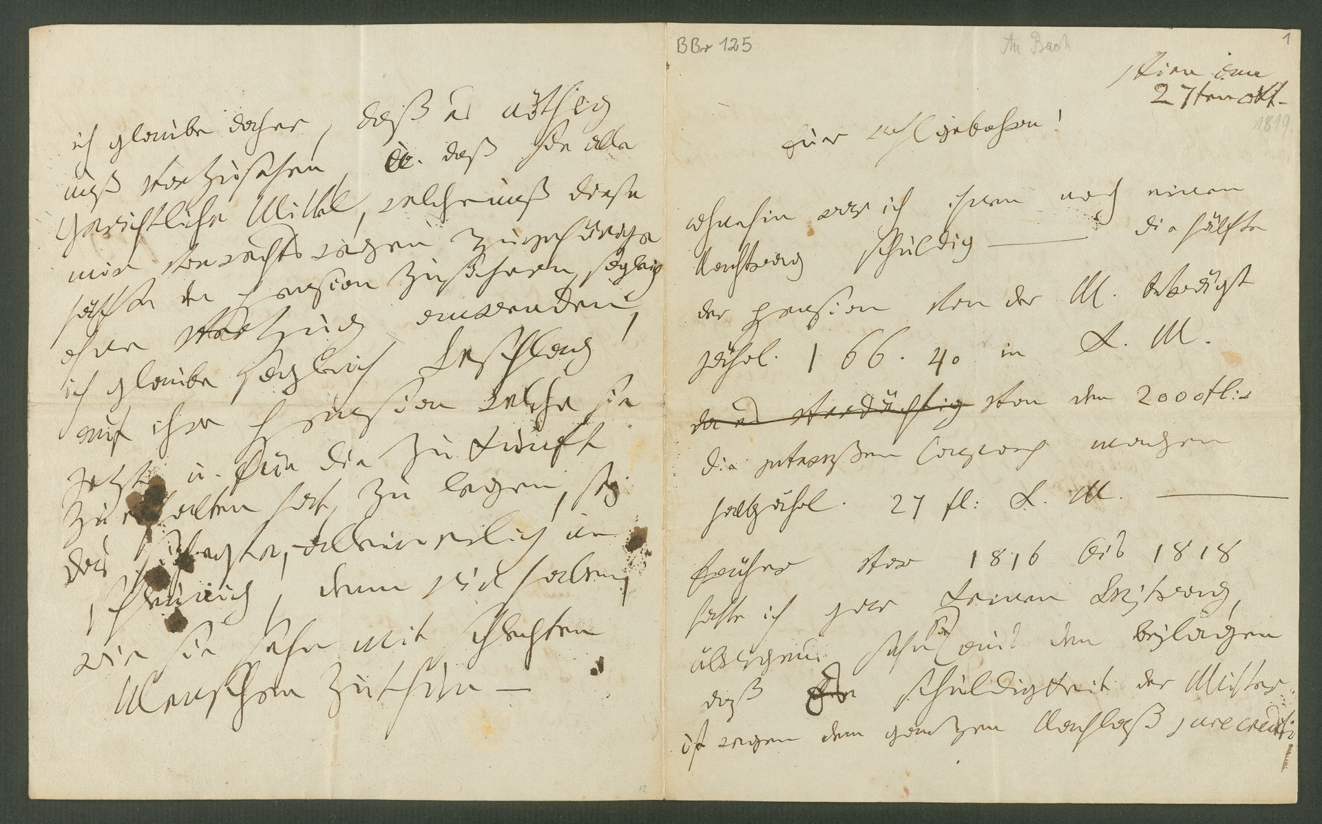 Ludwig van Beethoven, Brief an Johann Baptist Bach, Wien, 27. Oktober 1819, Autograph, Fragment