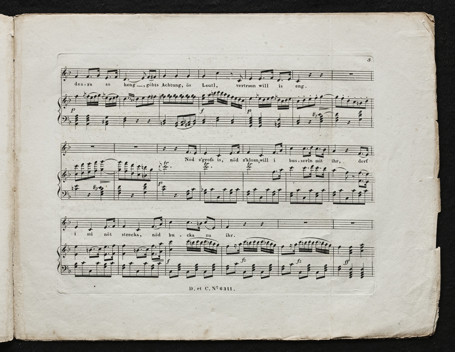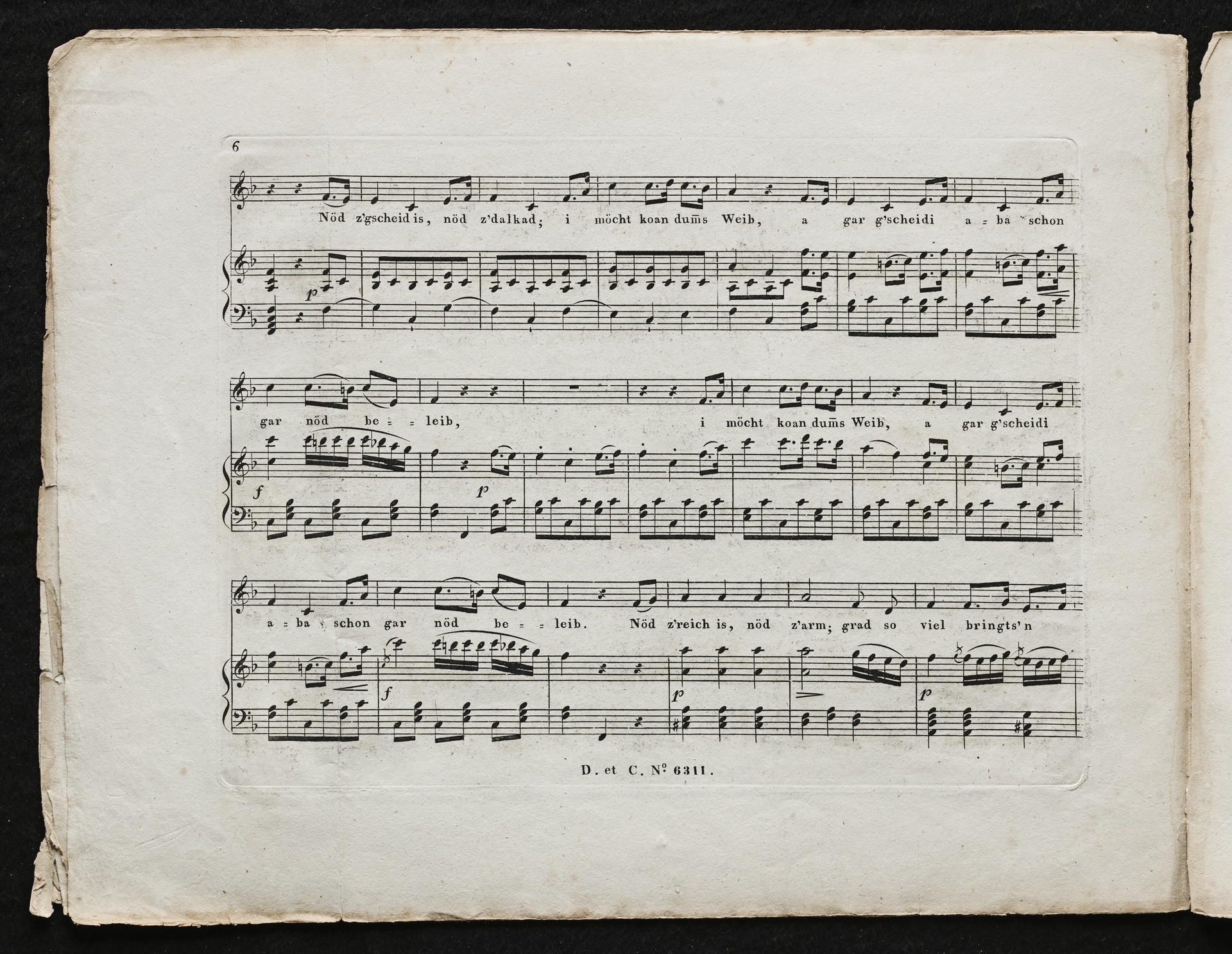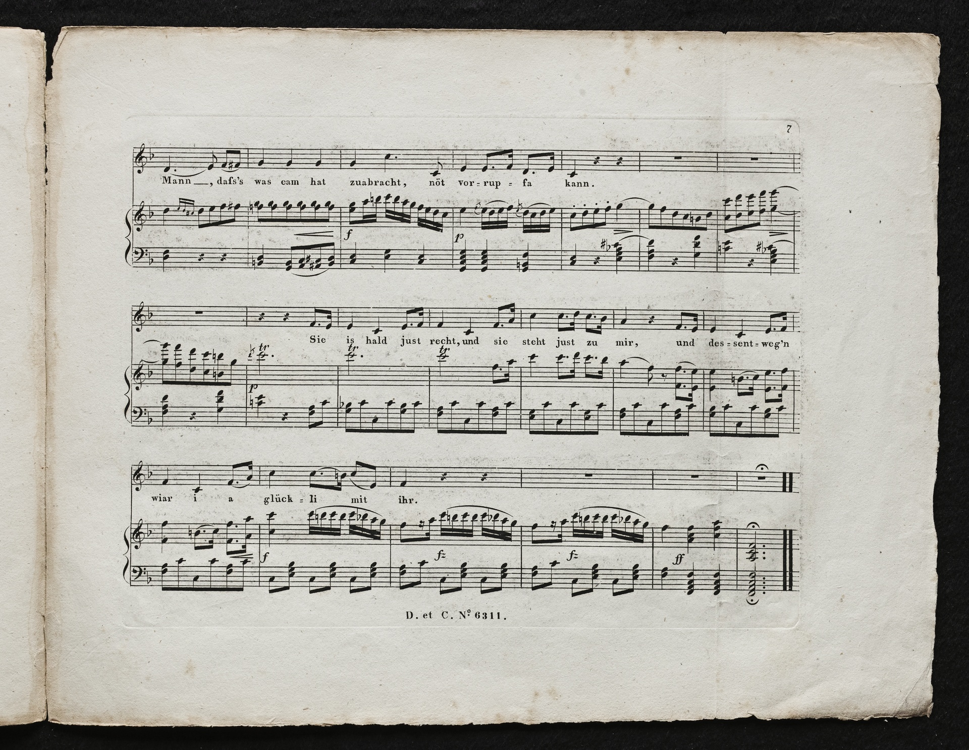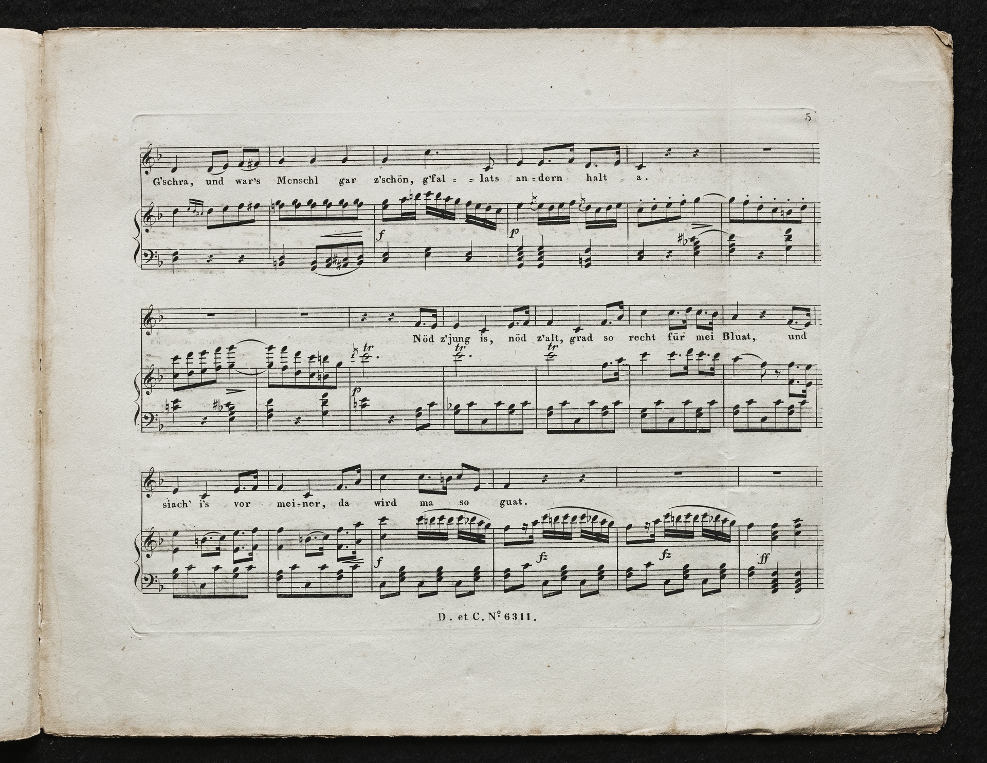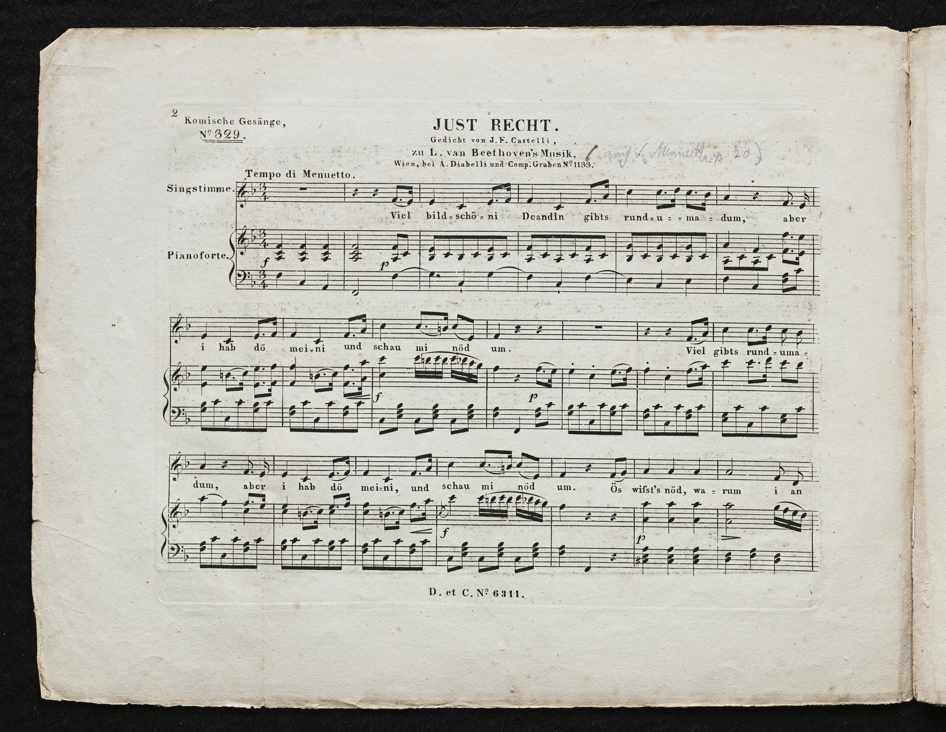 Ludwig van Beethoven, Septett für Violine, Viola, Klarinette, Horn, Fagott, Violoncello, Kontrabass (Es-Dur) op. 20, 2. Satz, Bearbeitung für Singstimme und Klavier, Diabelli, 6311