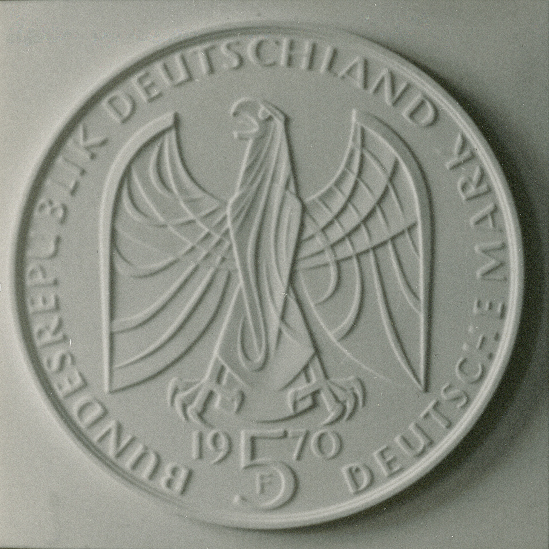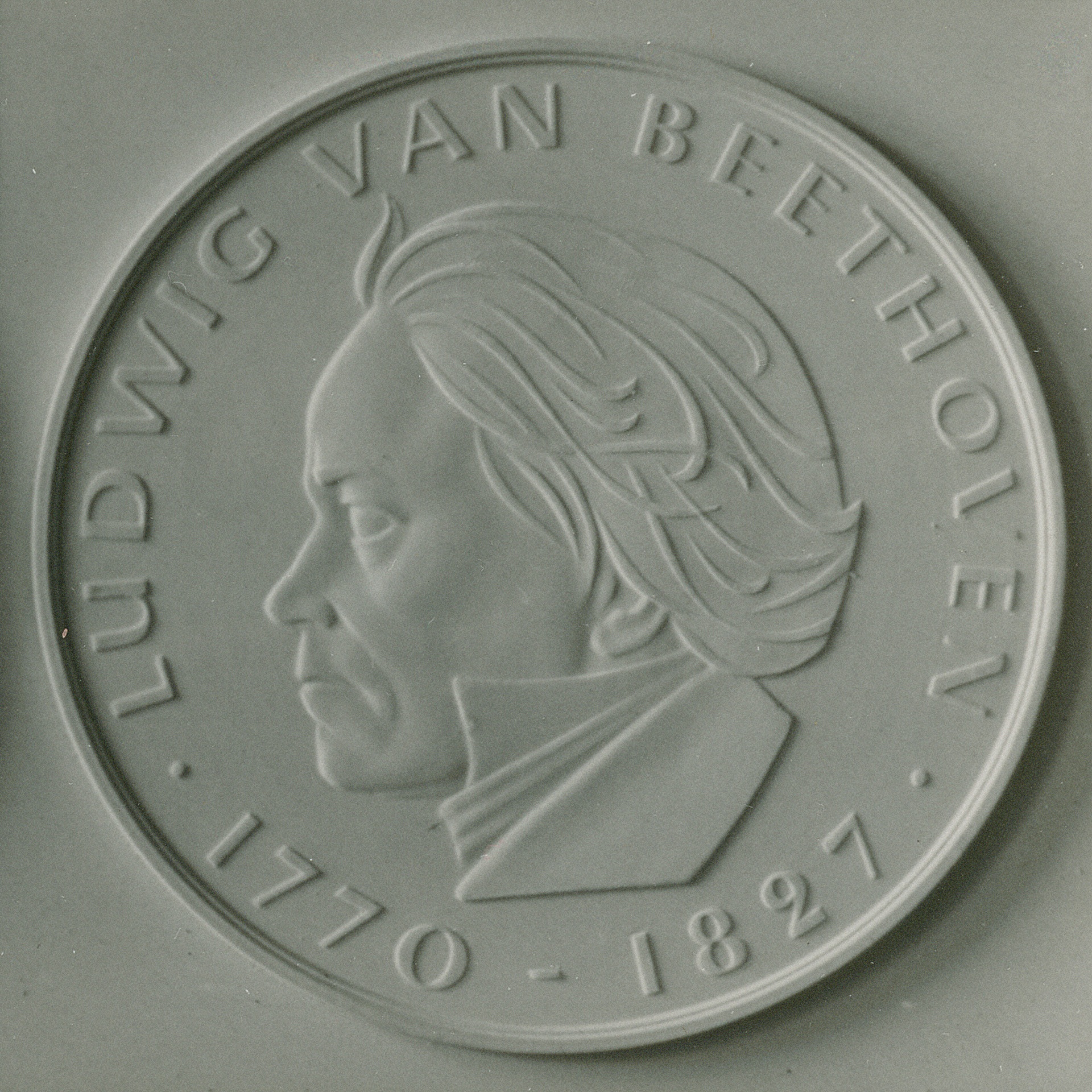 Entwurf für eine Beethoven-Gedenkmünze über 5 Deutsche Mark, 1969 - Fotografie eines Modells von Siegmund Schütz