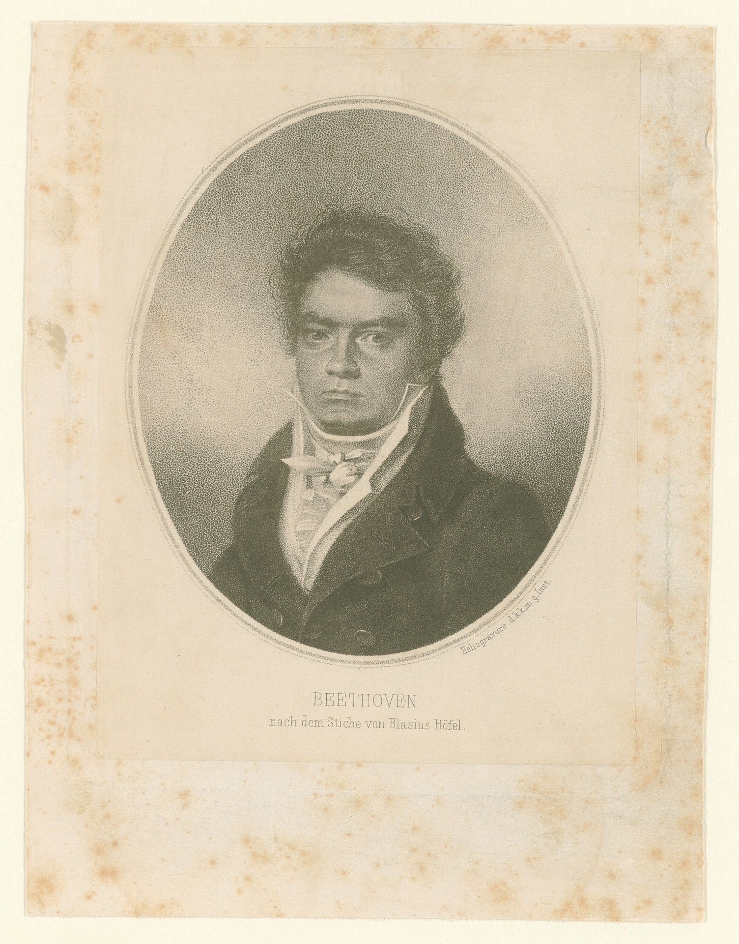 Ludwig van Beethoven - Stich von Blasius Höfel von 1814 nach einer Zeichnung von Louis Letronne, Heliogravüre des Kaiserlich-Königlichen Militär-Geographischen Instituts, Wien, vor 1889