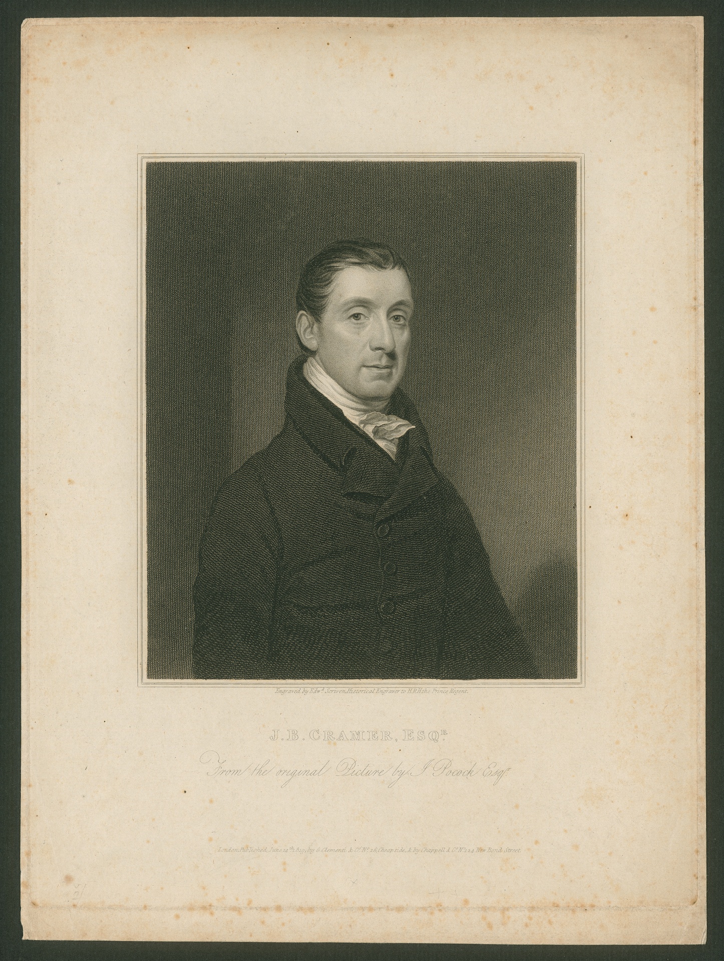 Johann Baptist Cramer (1771-1858) - Stich von Edward Scriven nach einem Gemälde von Isaac Pocock, London, 1819