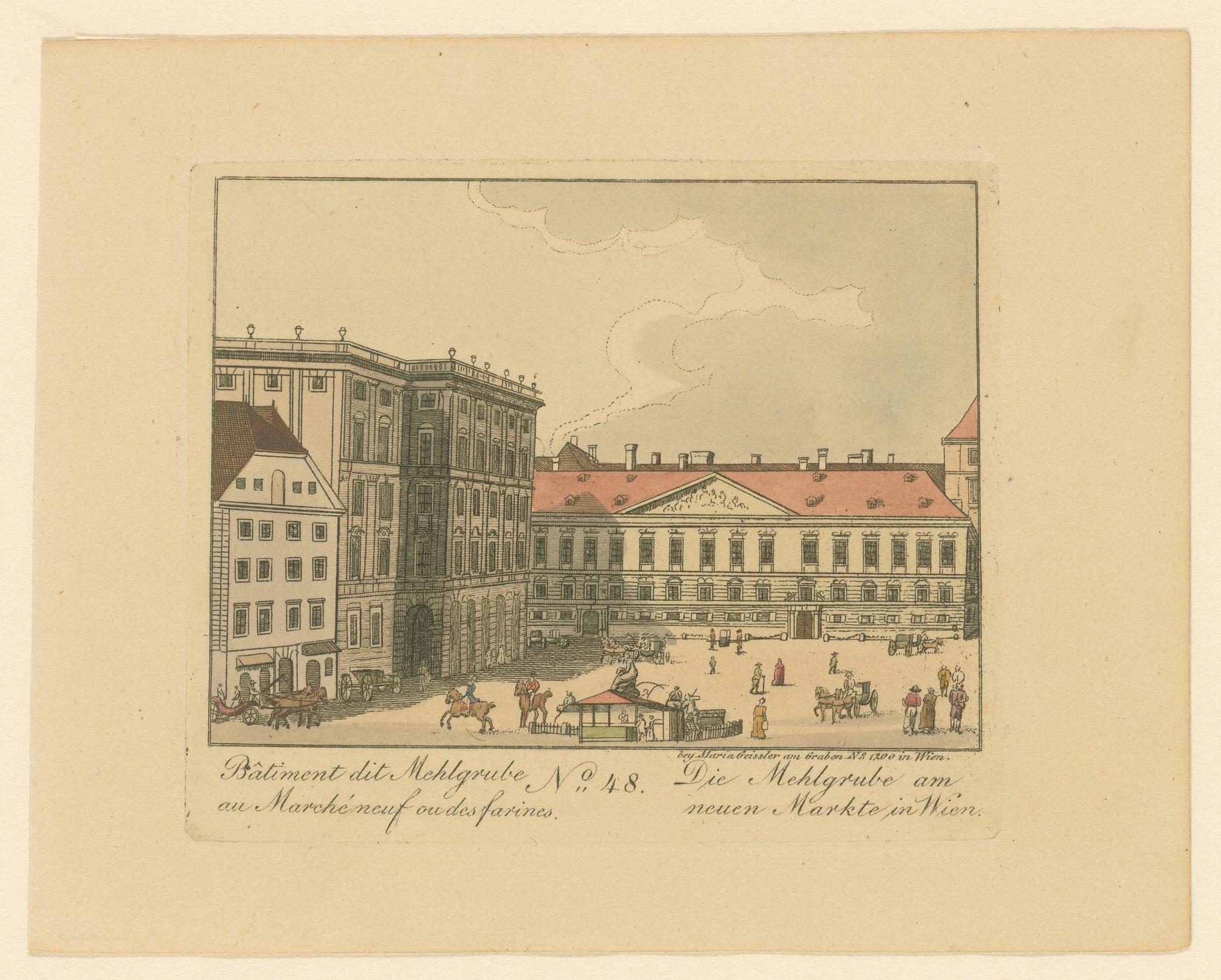 Der Neue Markt mit der Mehlgrube in Wien, 1812 - Anonymer Kupferstich, veröffentlicht von Maria Geissler