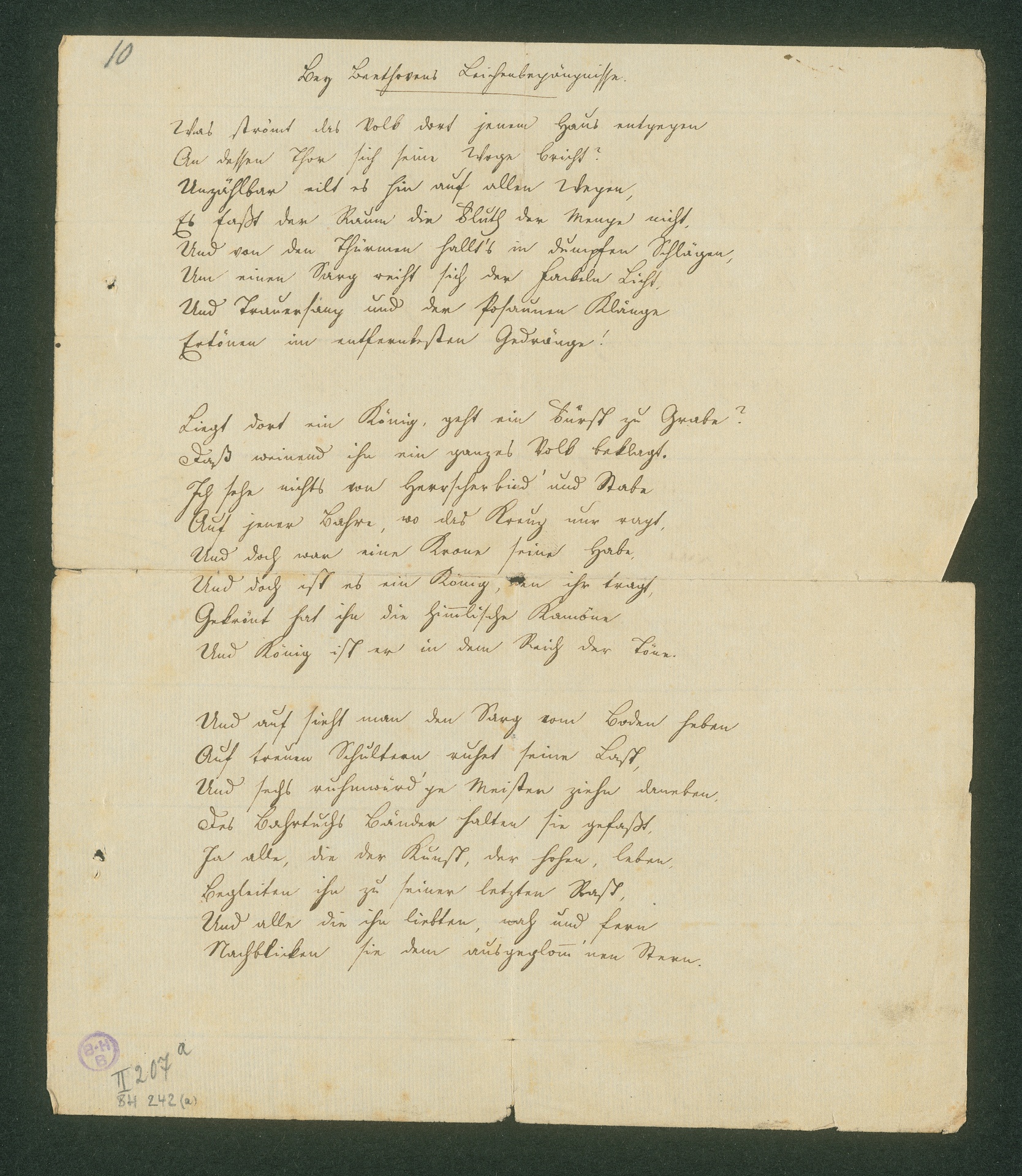 Joseph Christian von Zedlitz, "Nach Beethovens Leichenbegängnisse", Gedicht, Abschrift