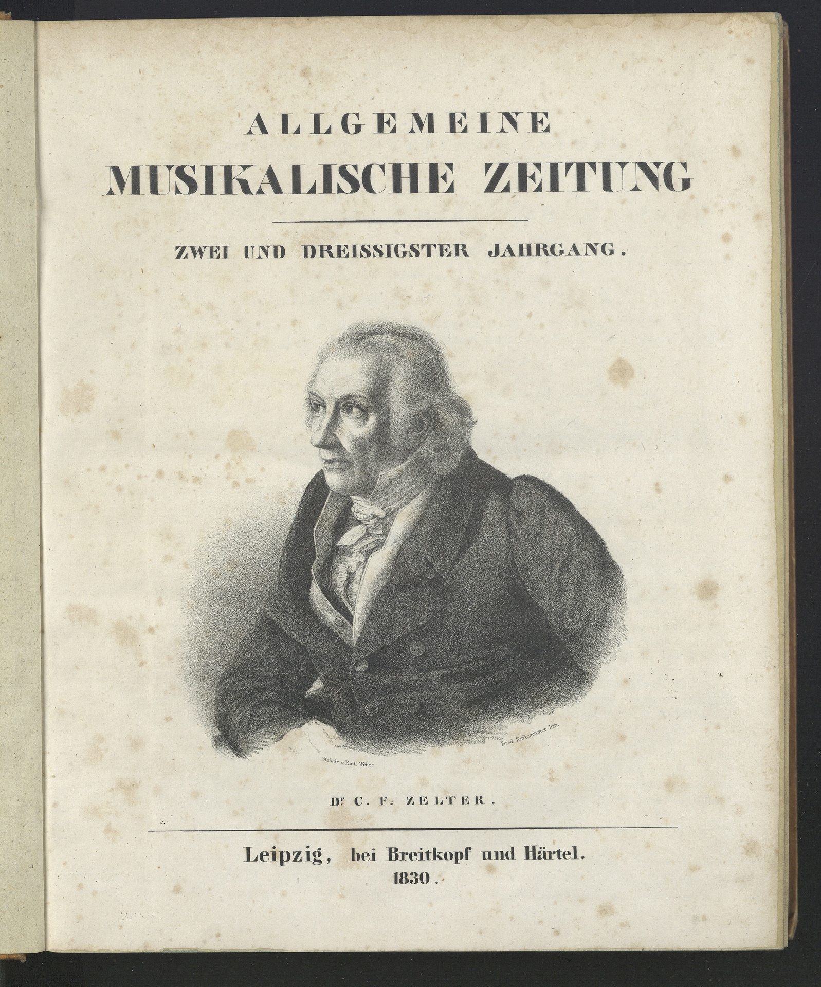 Carl Friedrich Zelter (1758-1832) - Lithographie von Friedrich Krätzschmer, gedruckt von Rudolf Weber, erschienen im Verlag Breitkopf & Härtel, Leipzig, 1830