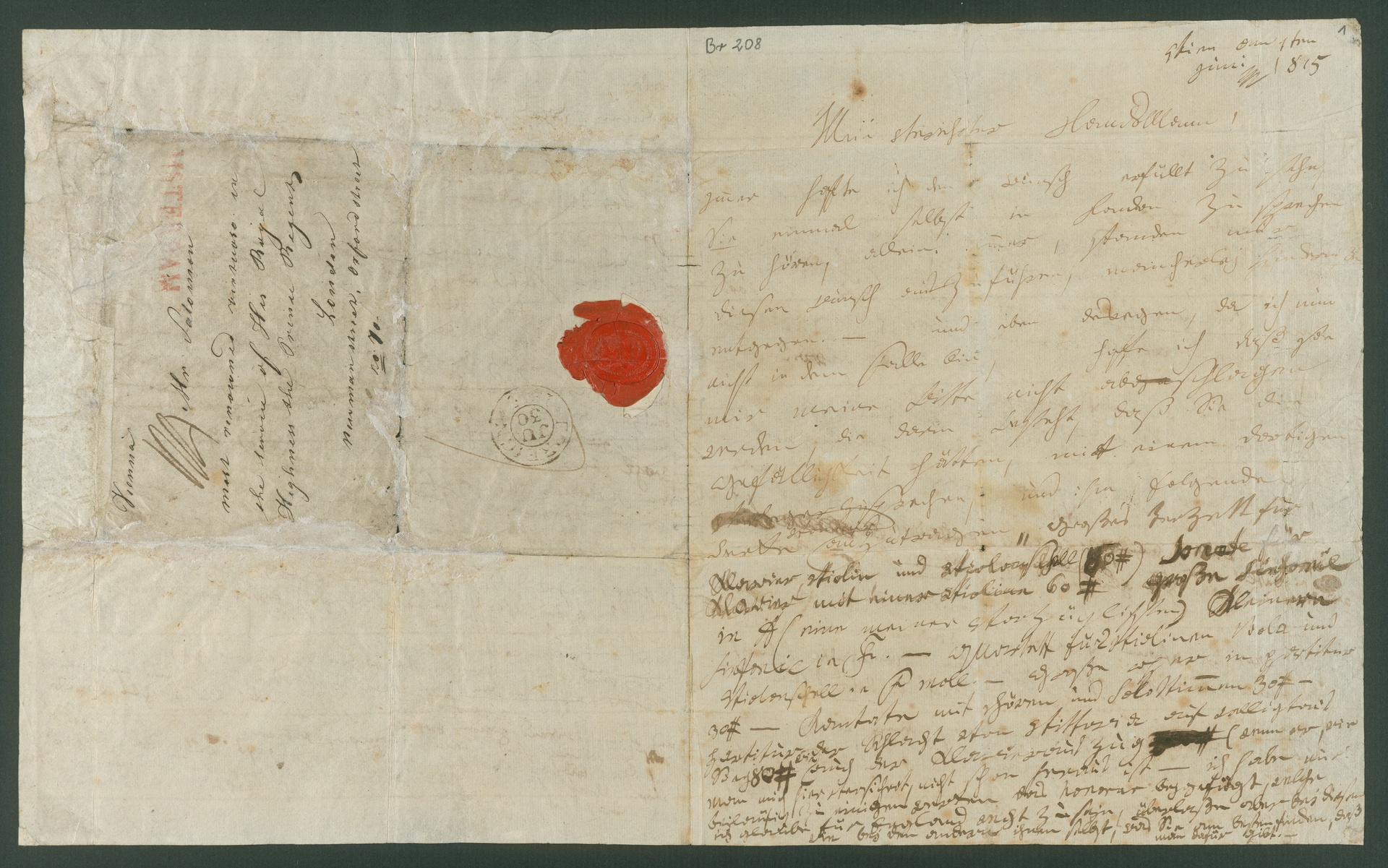 Ludwig van Beethoven, Brief an Johann Peter Salomon in London, Wien, 1. Juni 1815, Autograph