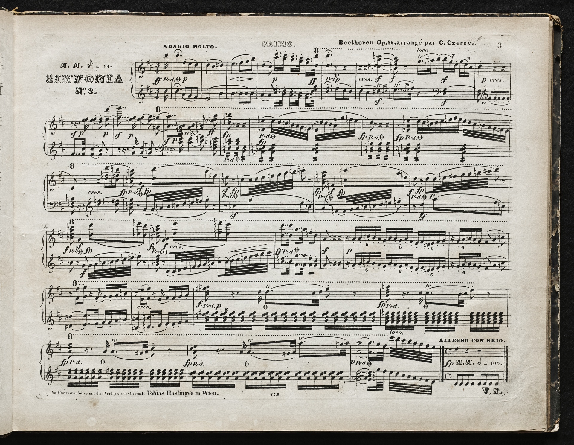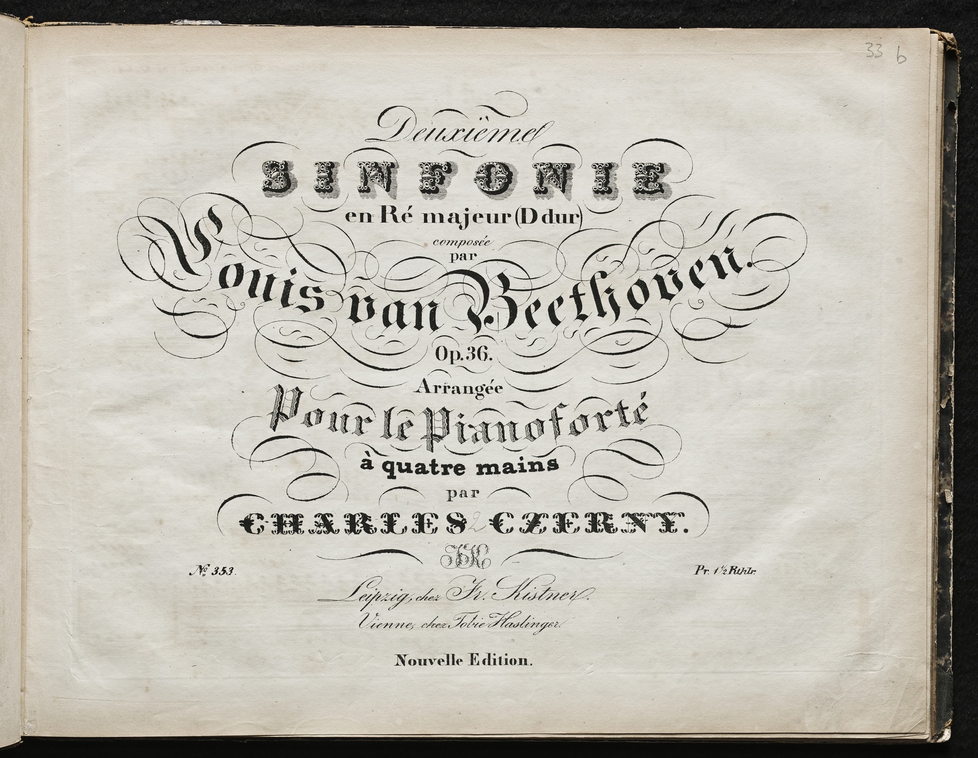 Ludwig van Beethoven, Sinfonie Nr. 2 (D-Dur) op. 36, Bearbeitung für Klavier zu 4 Händen von Carl Czerny, Kistner, 353