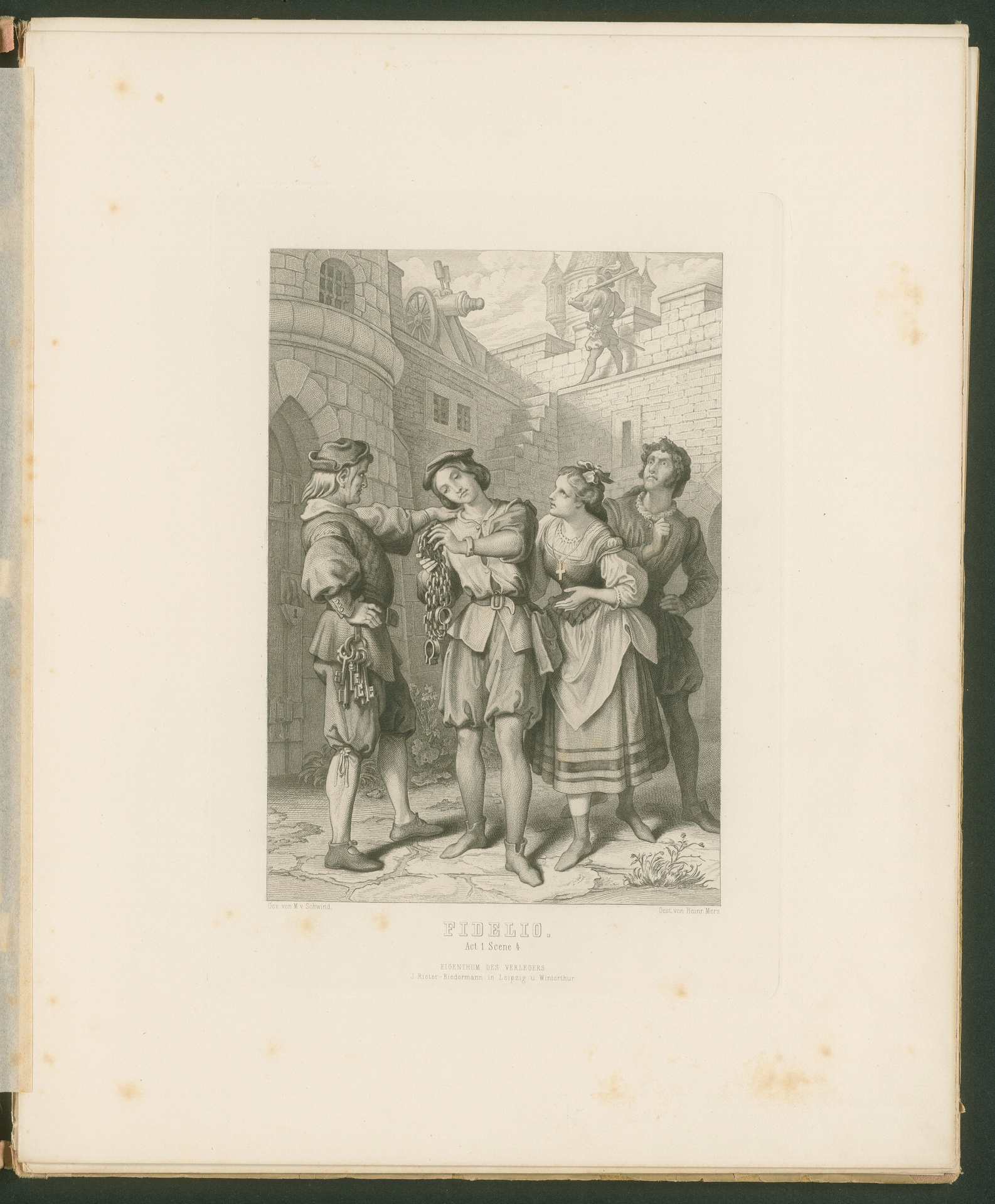 Illustrationen zu Fidelio - Stahlstiche von Heinrich Merz und Carl Arnold Gonzenbach nach Zeichnungen von Moritz von Schwind, erschienen bei Rieter-Biedermann, Leipzig und Winterthur, 1870