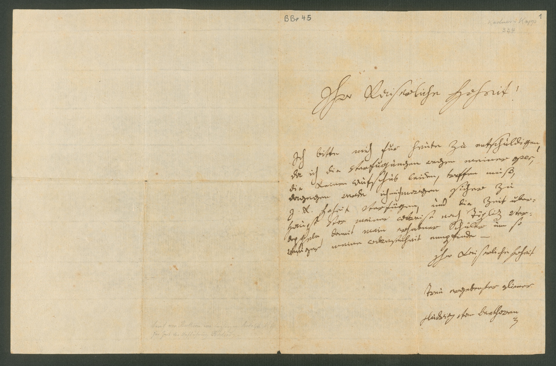Ludwig van Beethoven, Brief an Erzherzog Rudolph, Wien, erste Hälfte Juni 1811, Autograph