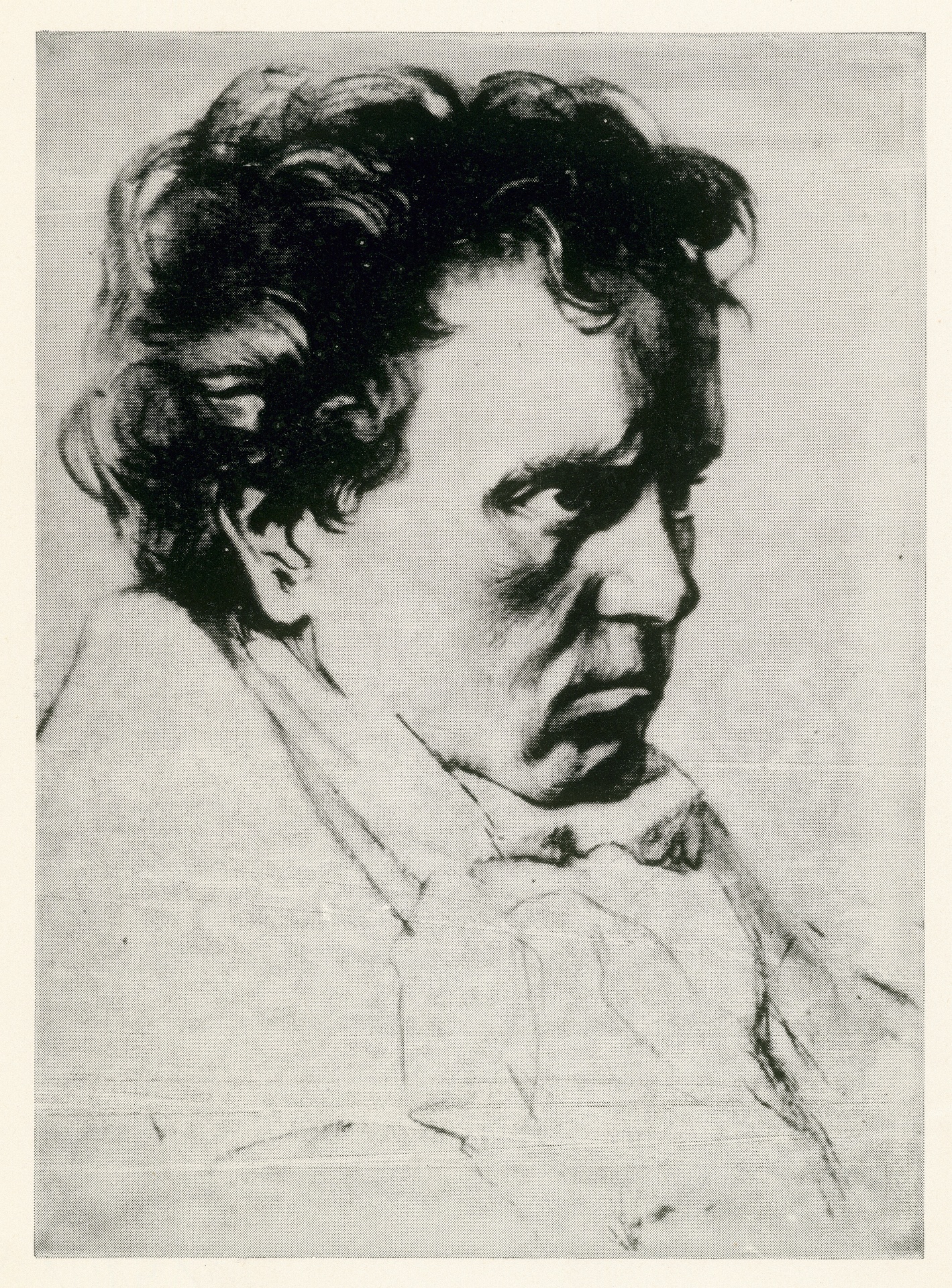 Ludwig van Beethoven - Zeichnung von Fritz Rumpf, wohl aus dem ersten Viertel des 20. Jahrhunderts, Reproduktionsdruck, Basel, um 1970?