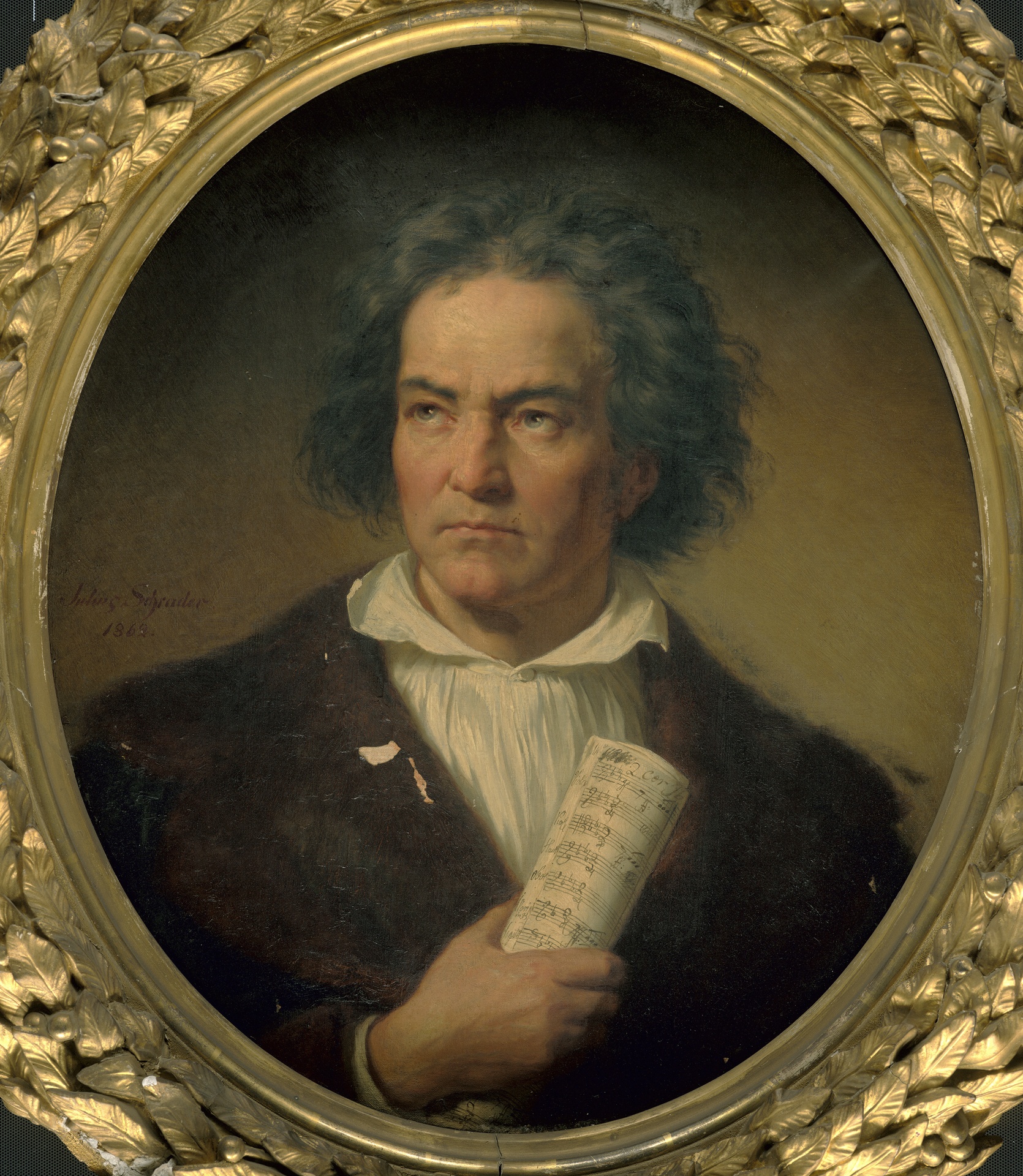 Ludwig van Beethoven, Fassung mit Notenrolle op. 67 - Ölgemälde von Julius Schrader, 1862