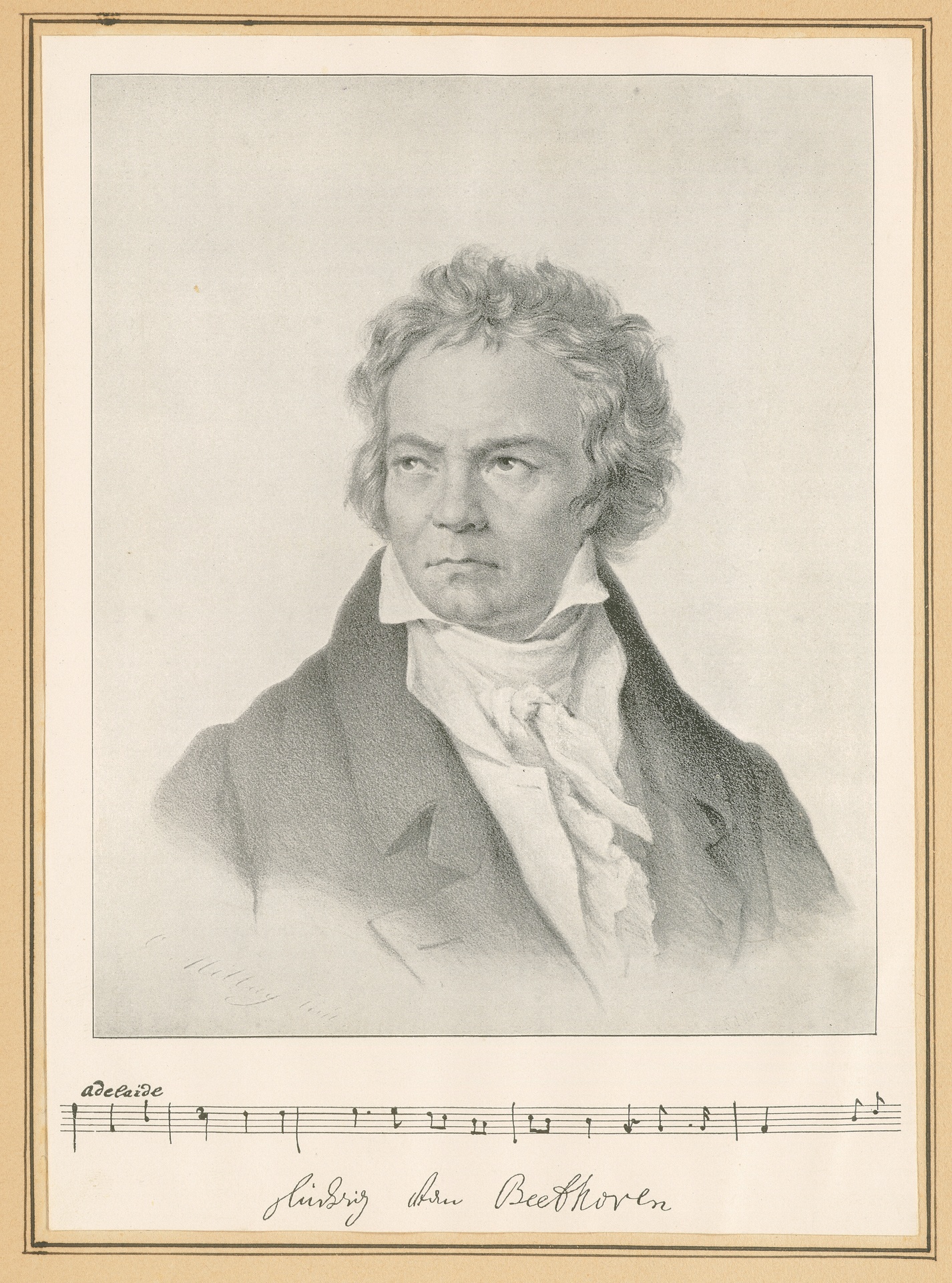 Ludwig van Beethoven - Lithographie von Carl Mittag von 1844/1850 in Anlehnung an das Gemälde von Ferdinand Schimon aus dem Jahr 1819, Reproduktion, um 1925