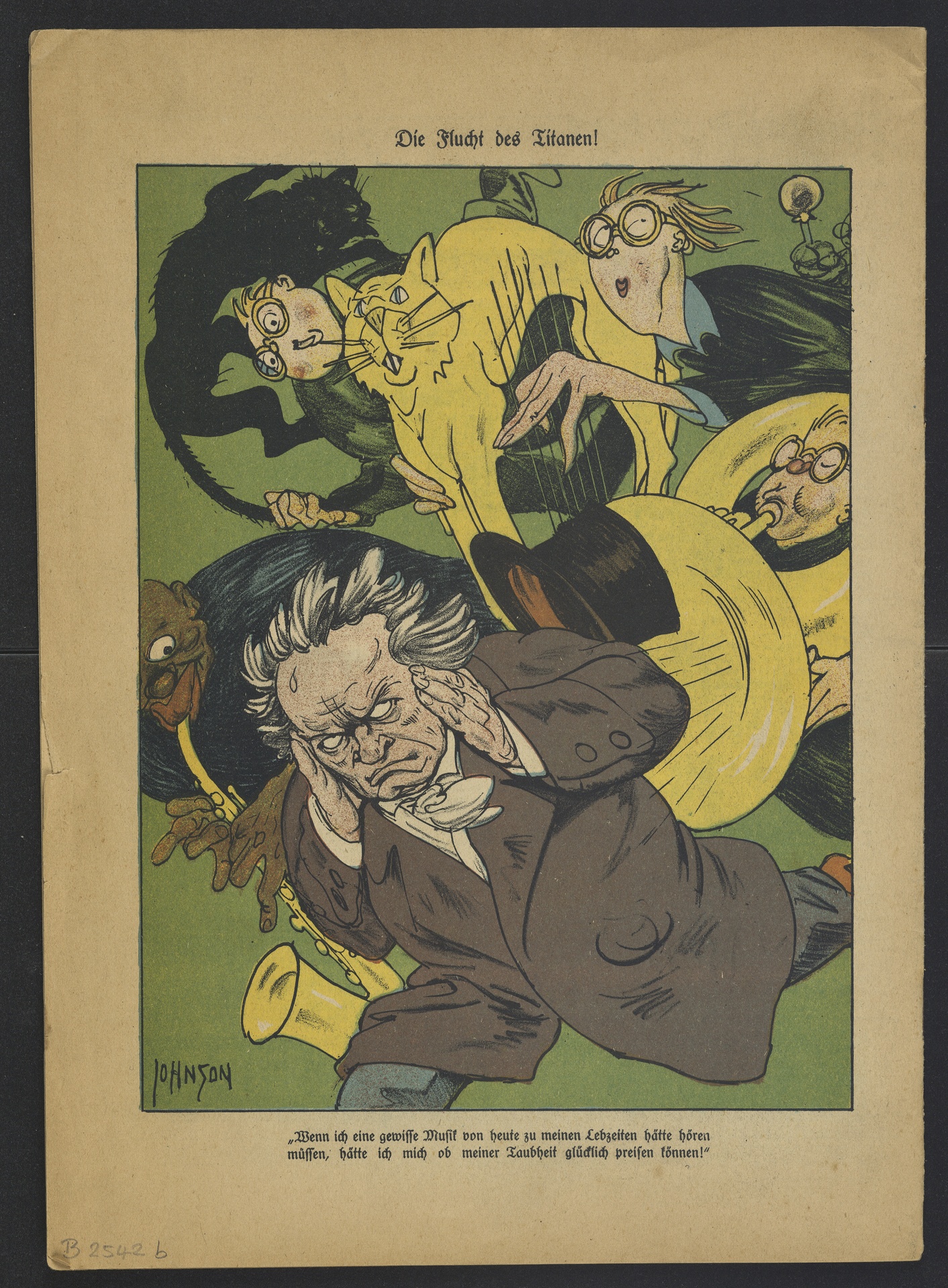 Ludwig van Beethoven, Karikatur: "Die Flucht des Titanen" - Zeichnung von Arthur Johnson, Reproduktion, Berlin, 1927