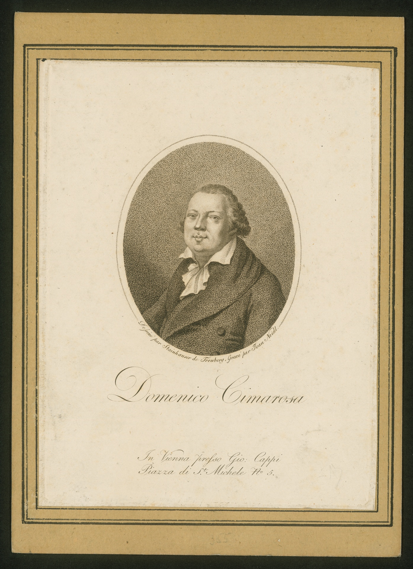 Domenico Cimarosa (1749-1801) - Stich von Johann Joseph Neidl nach einer Zeichnung von Gandolph Ernst Stainhauser von Treuberg, erschienen bei Mollo, Wien, zw. 1802-1806