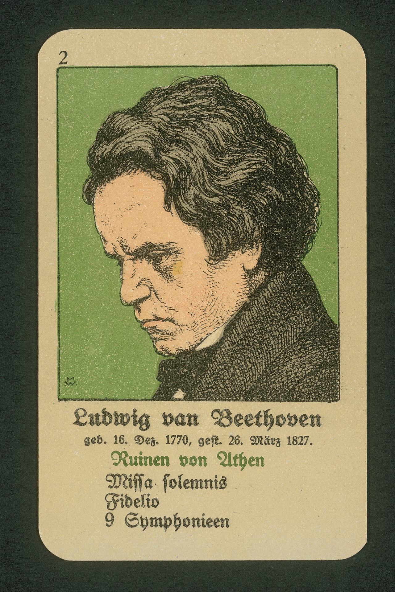 Spielkarte mit Beethoven-Portrait - Mit Reproduktion einer mit "M.W." bezeichneten Vorlage, vermutlich einer Radierung