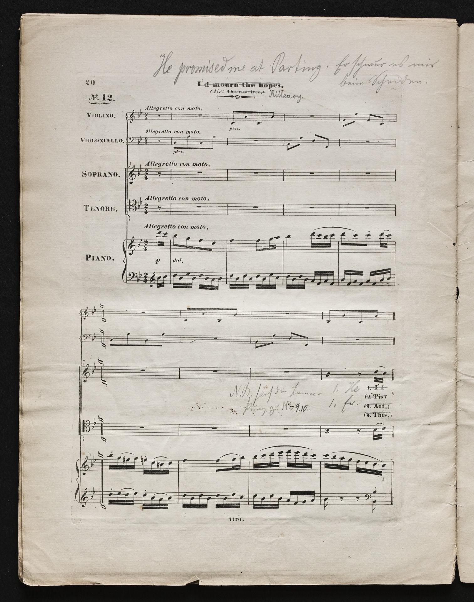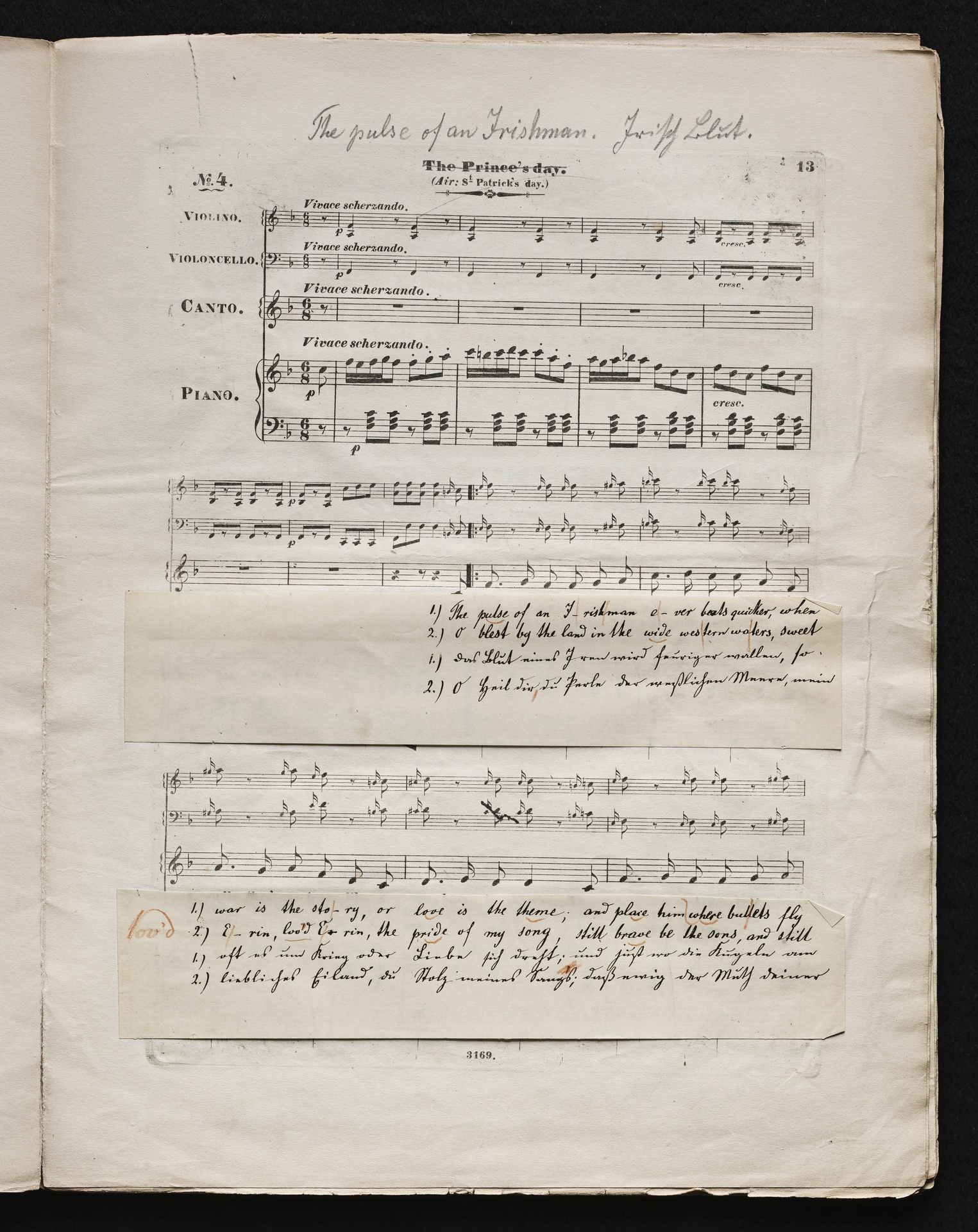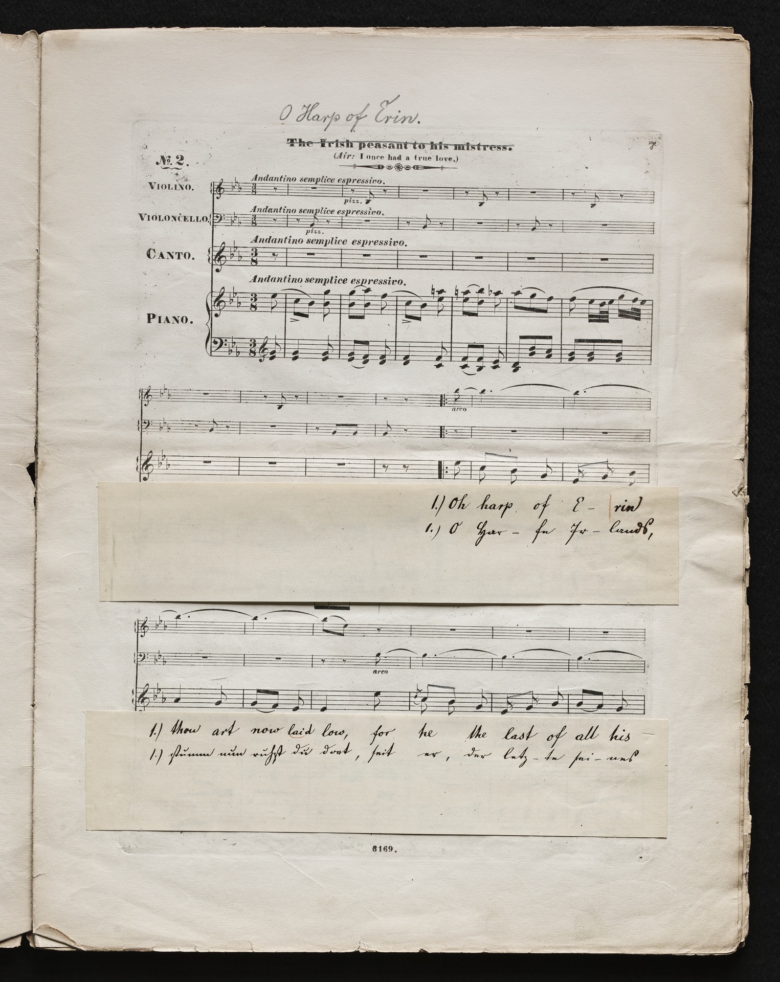 Ludwig van BeethovenThomas Moore, "Irische Lieder" für eine oder mehrere Singstimmen, Violine, Violoncello und Klavier aus WoO 152 und WoO 153, Klavierpartitur, Artaria, 3169-3170