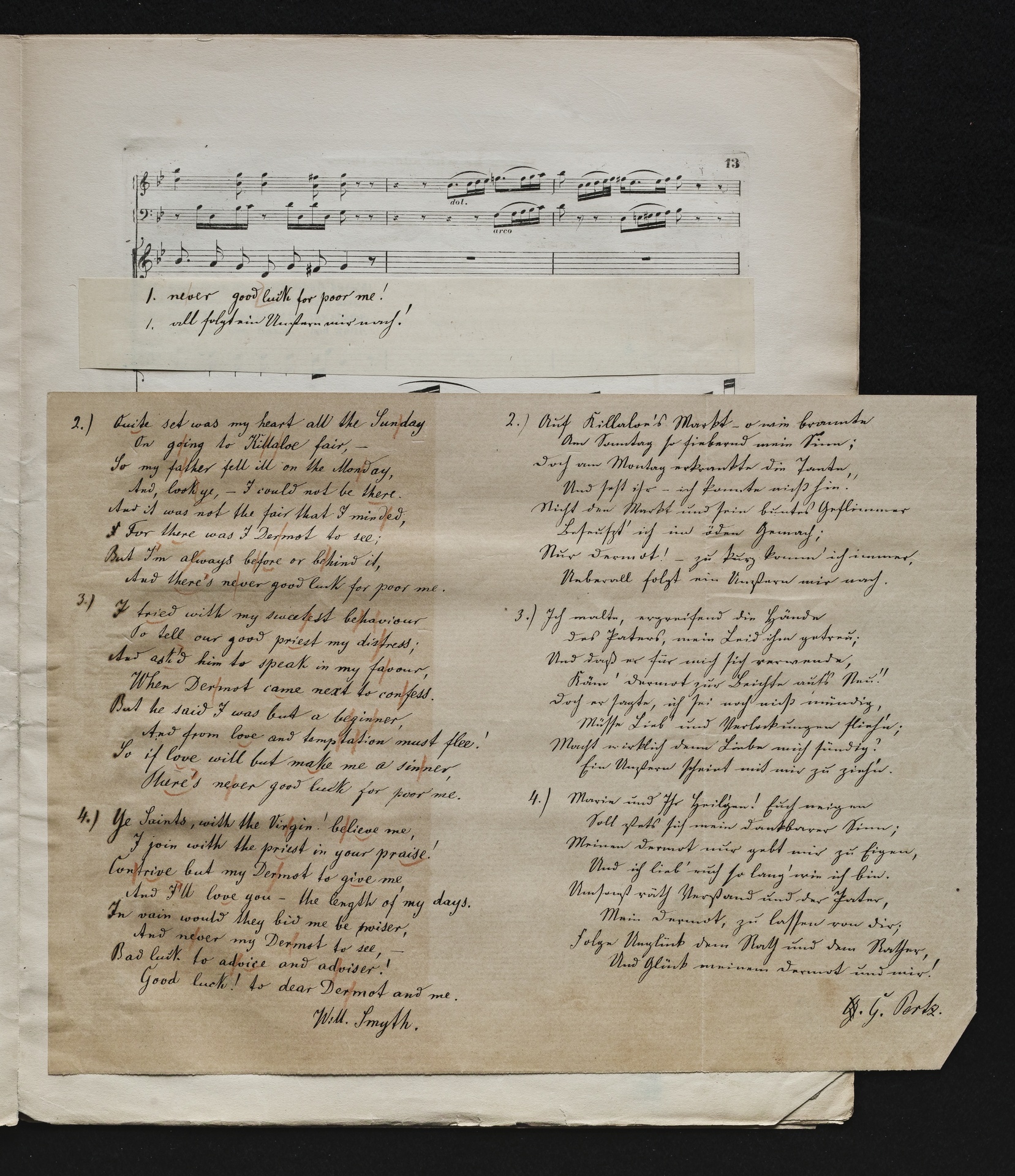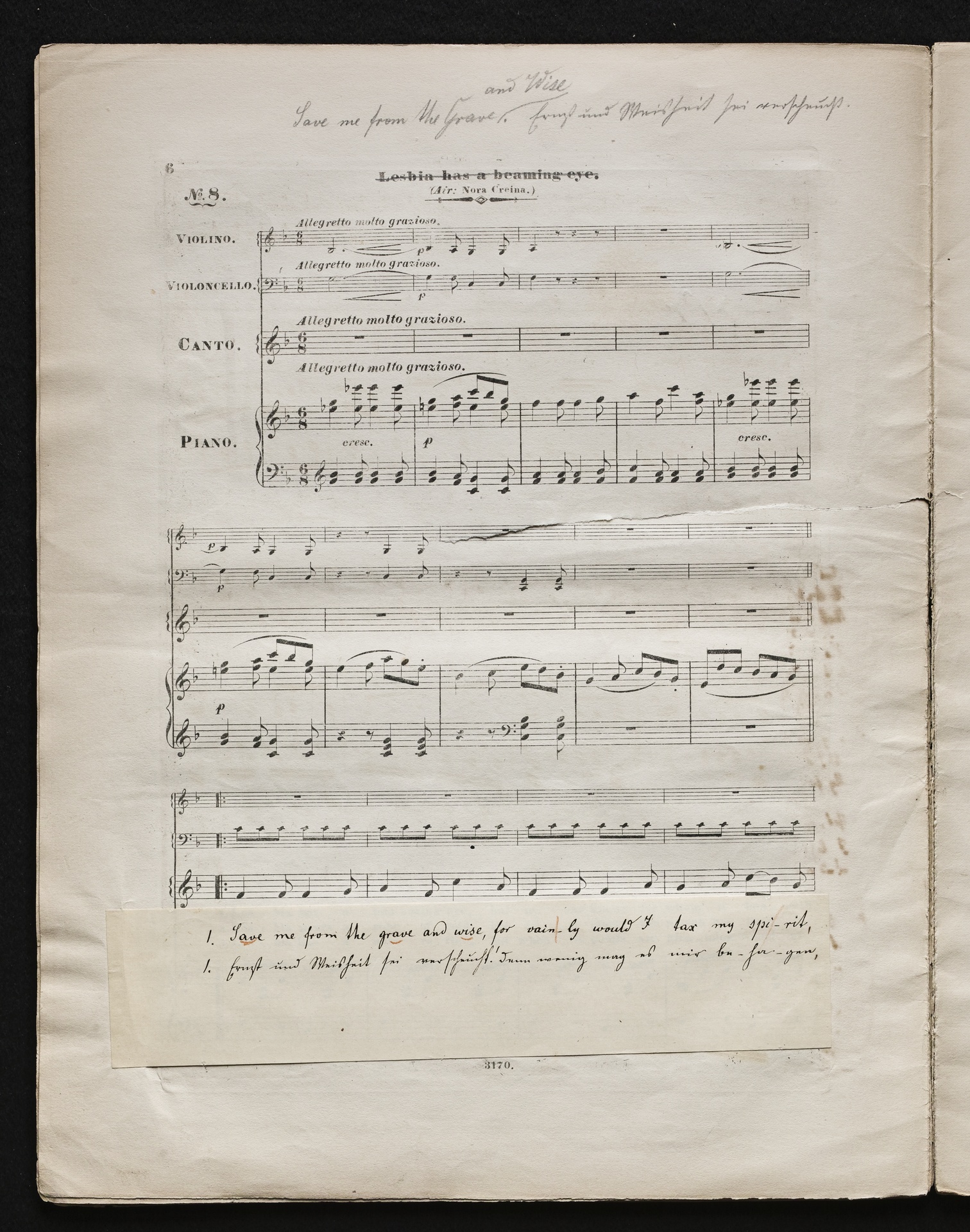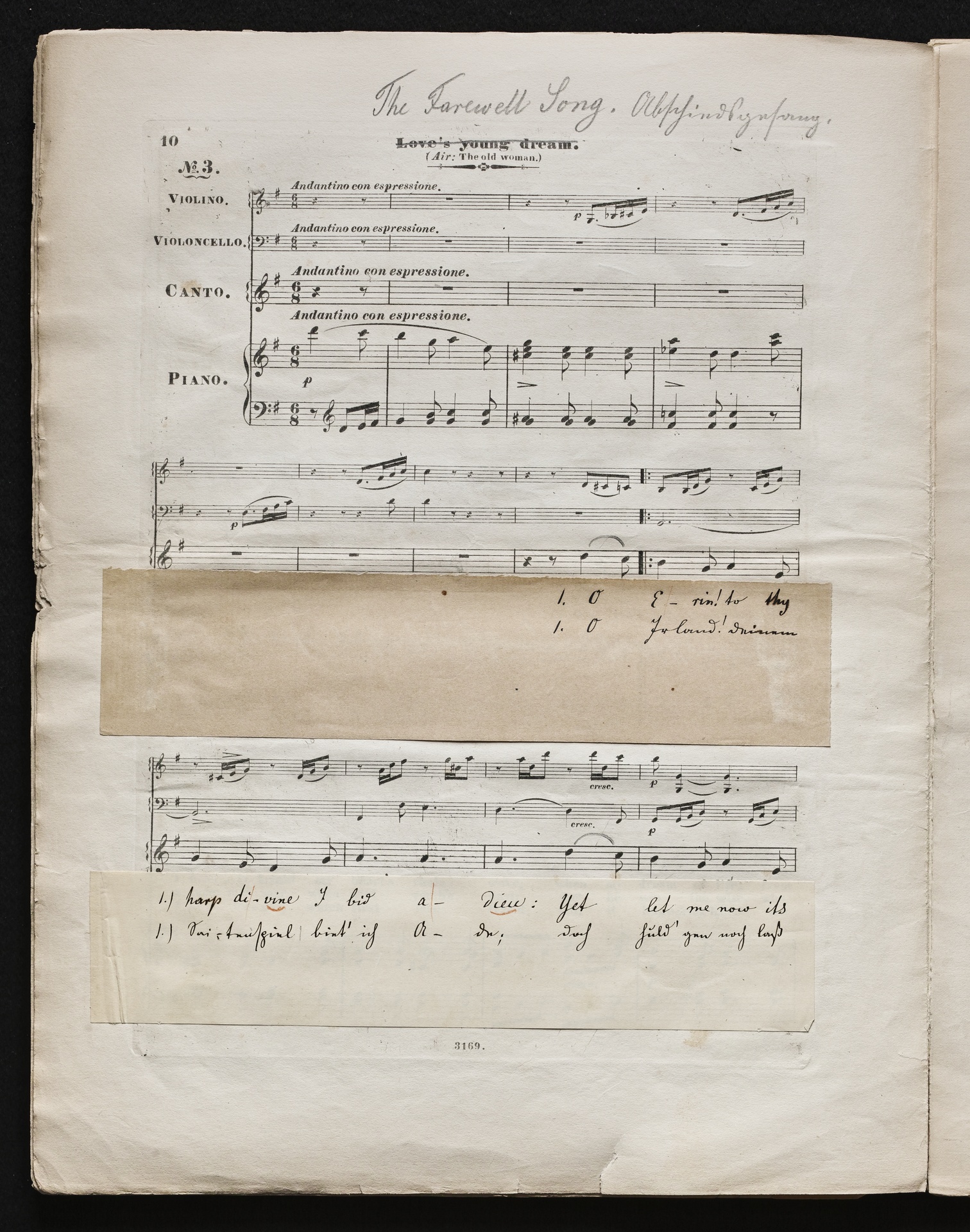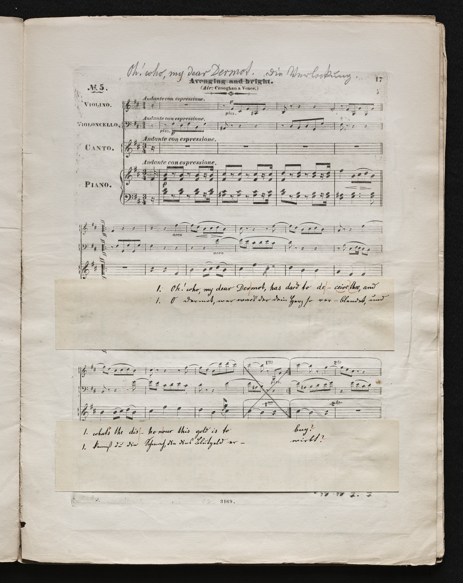 Ludwig van BeethovenThomas Moore, "Irische Lieder" für eine oder mehrere Singstimmen, Violine, Violoncello und Klavier aus WoO 152 und WoO 153, Klavierpartitur, Artaria, 3169-3170