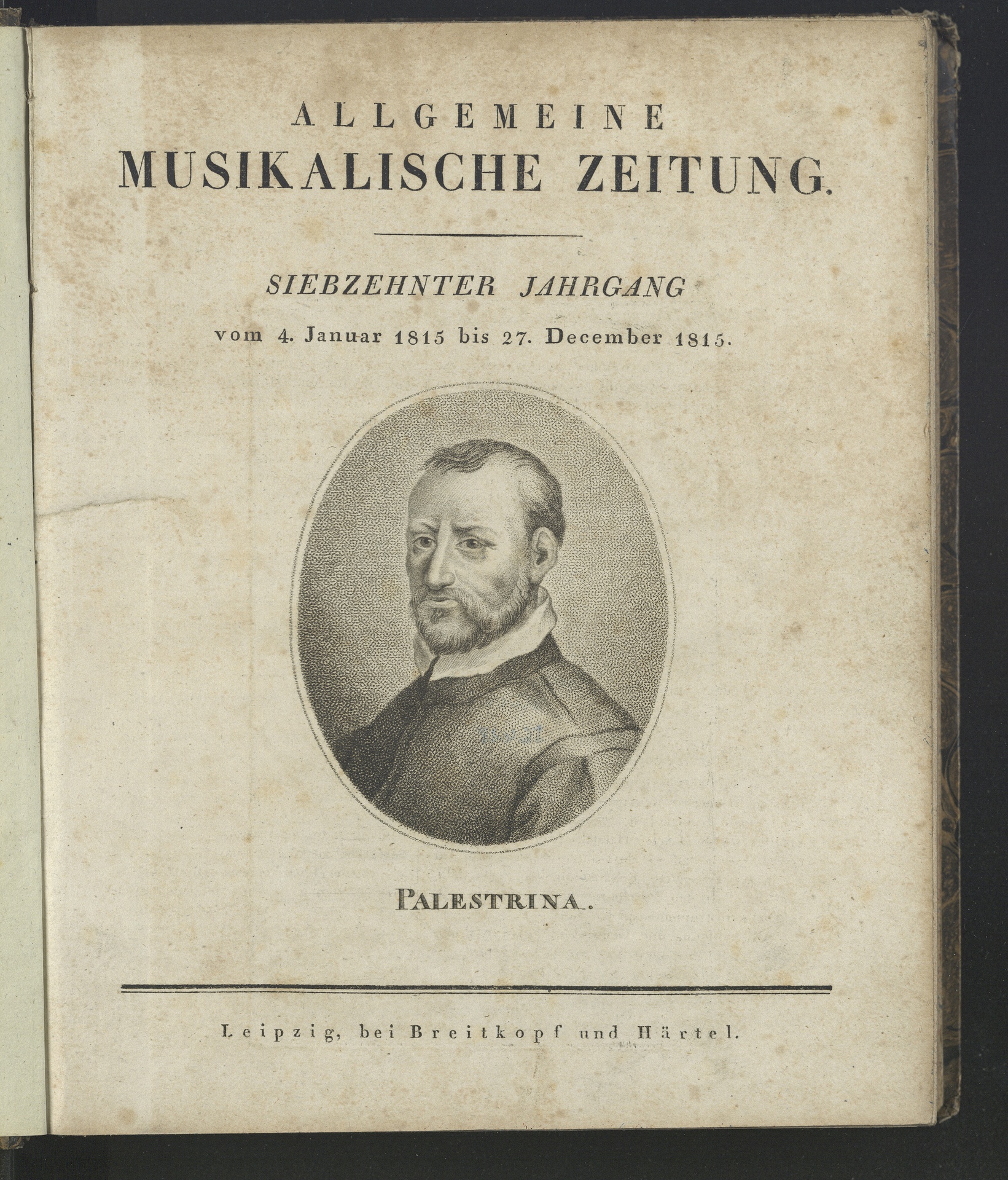 Giovanni Pierluigi da Palestrina (um 1525-1594) - Stich, erschienen im Verlag Breitkopf & Härtel, Leipzig, 1815