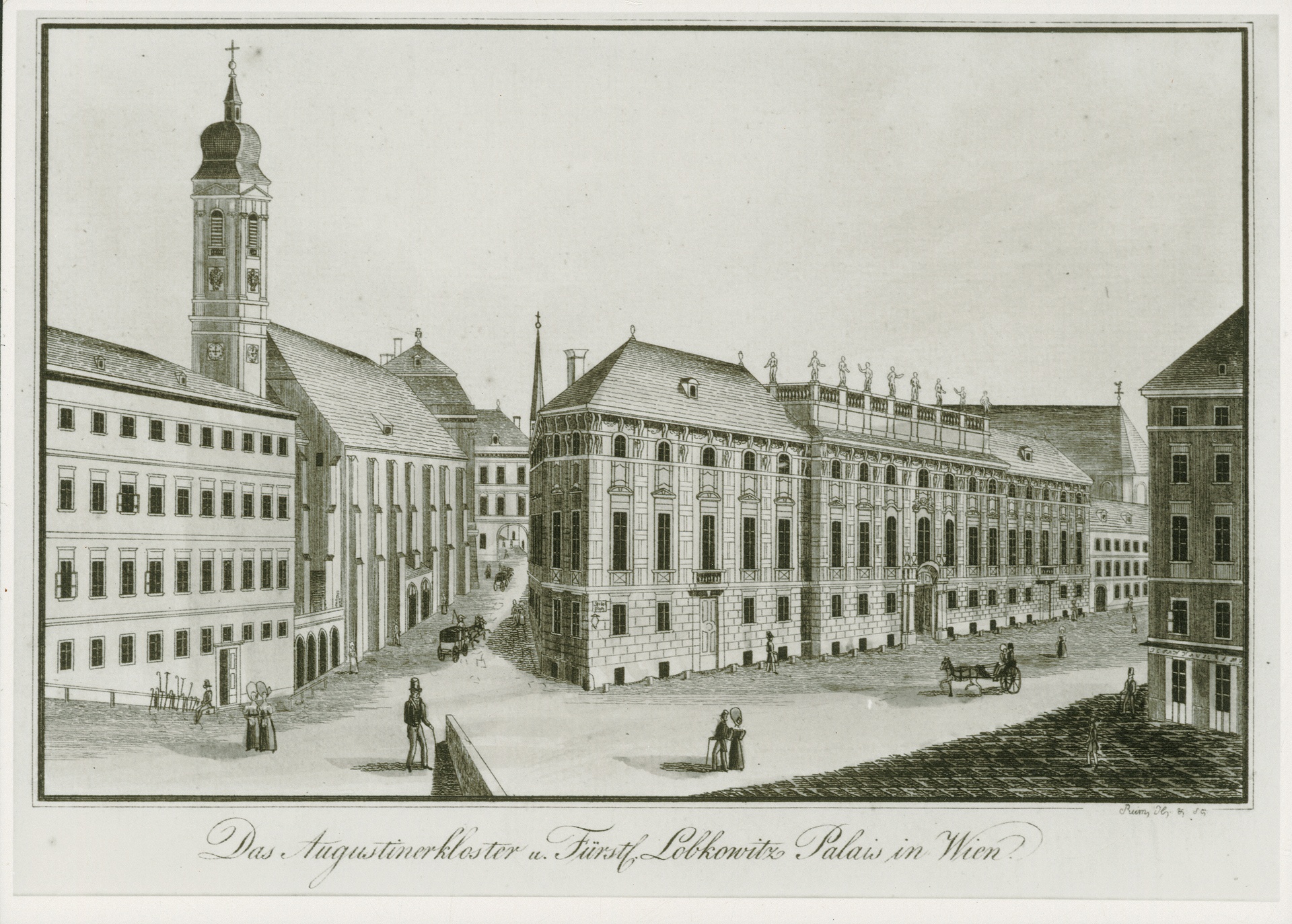 Das Palais des Fürsten Lobkowitz und das Augustinerkloster in Wien, um 1825 - Fotografie des Ateliers Sachsse nach einer Radierung, wohl von Vincens Reim