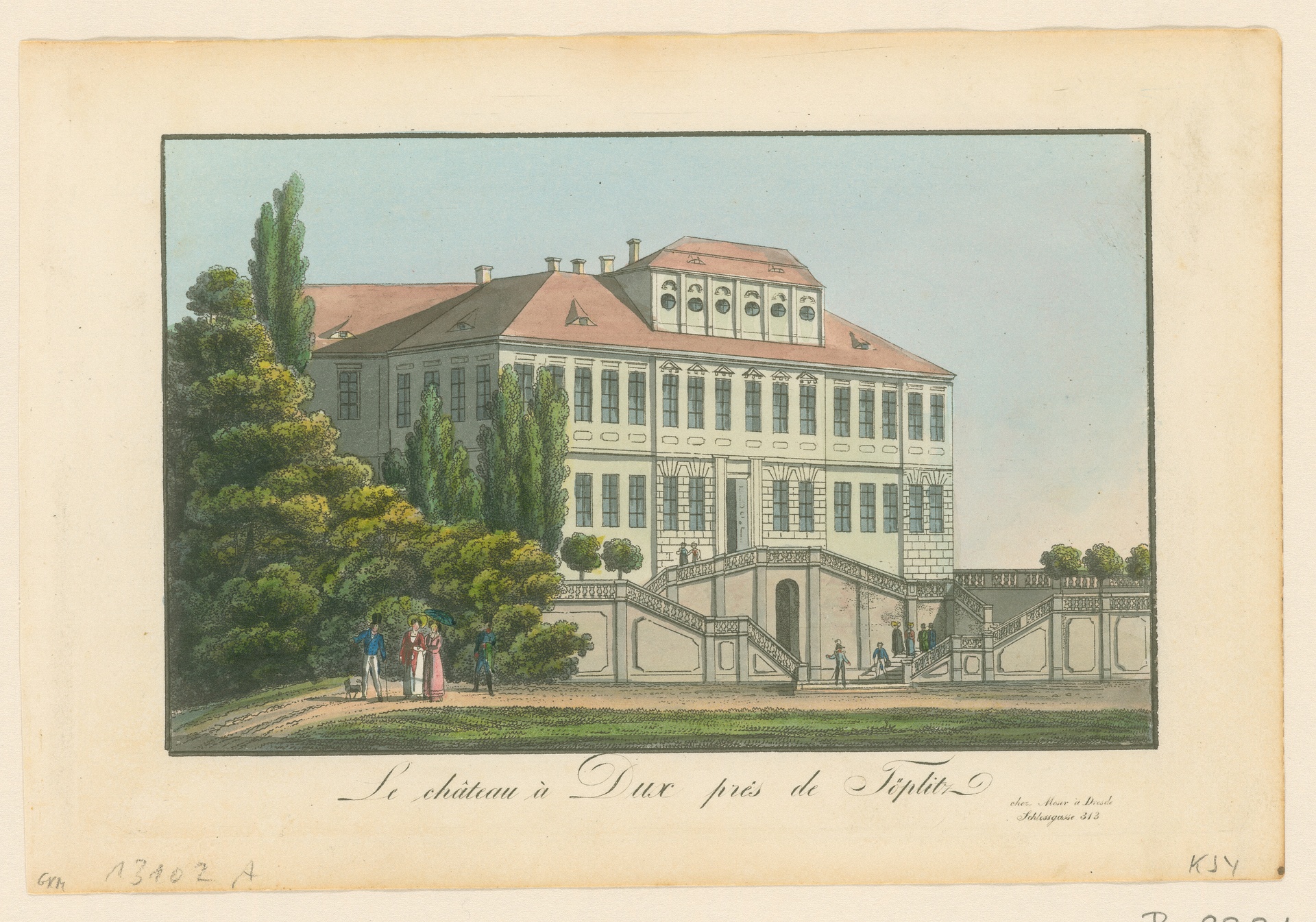 Schloss Dux bei Teplitz, um 1810 - Anonyme Umrißradierung des 19. Jahrhunderts
