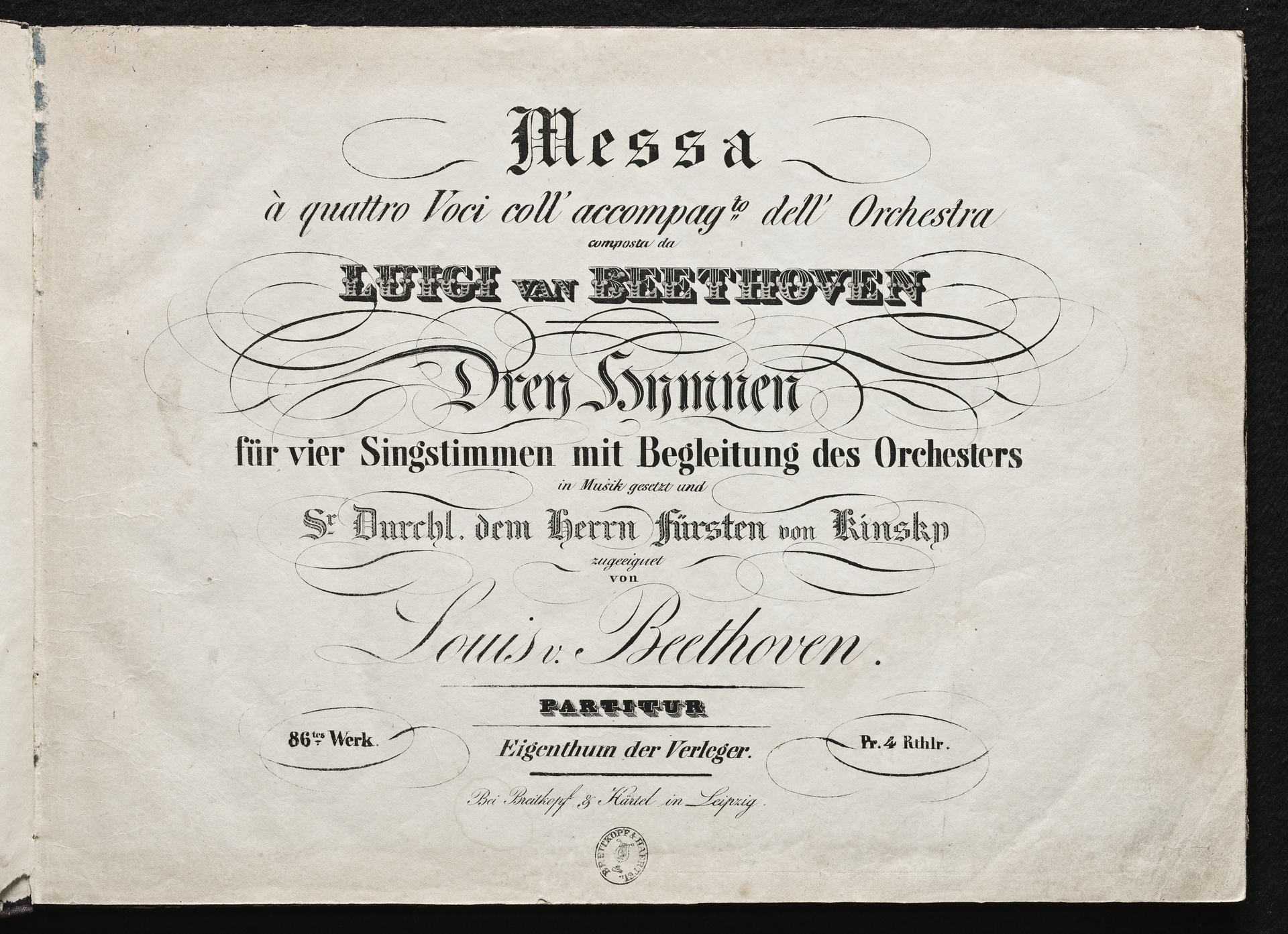 Ludwig van Beethoven, Messe für vier Solostimmen, Chor und Orchester (C-Dur) op. 86, Partitur, Breitkopf und Härtel, 1667