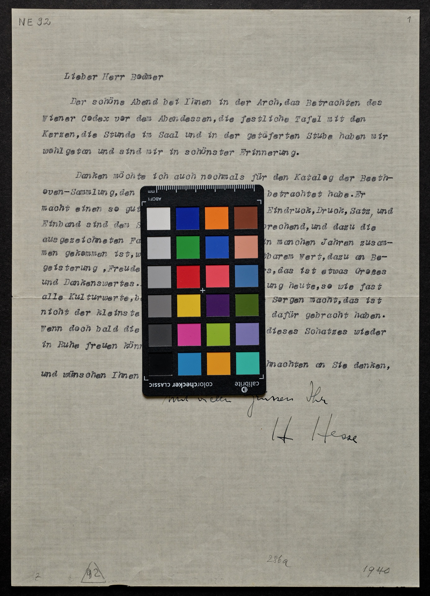 Hermann Hesse, Brief an Hans Conrad Bodmer, 1940