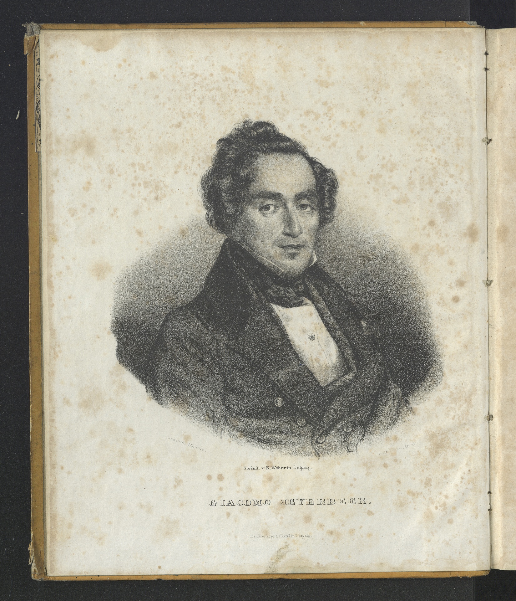 Giacomo Meyerbeer (1791-1864) - Lithographie G. Artzt nach einer Zeichnung von Antoine Maurin, gedruckt von R. Weber, erschienen bei Breitkopf & Härtel, Leipzig, 1836