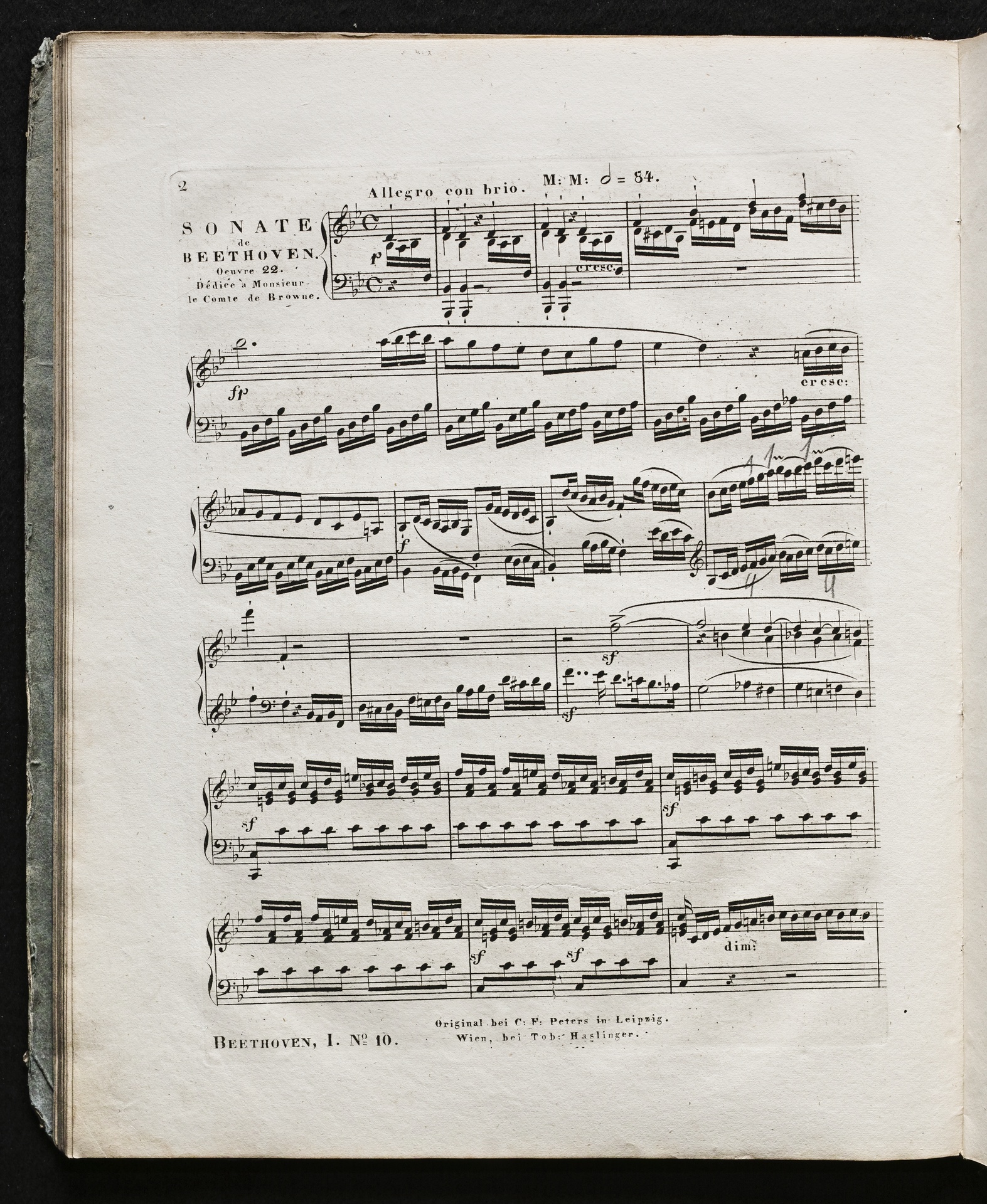 Ludwig van Beethoven, Sonate für Klavier (B-Dur) op. 22, Haslinger, 1,10